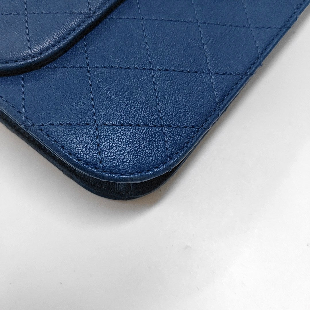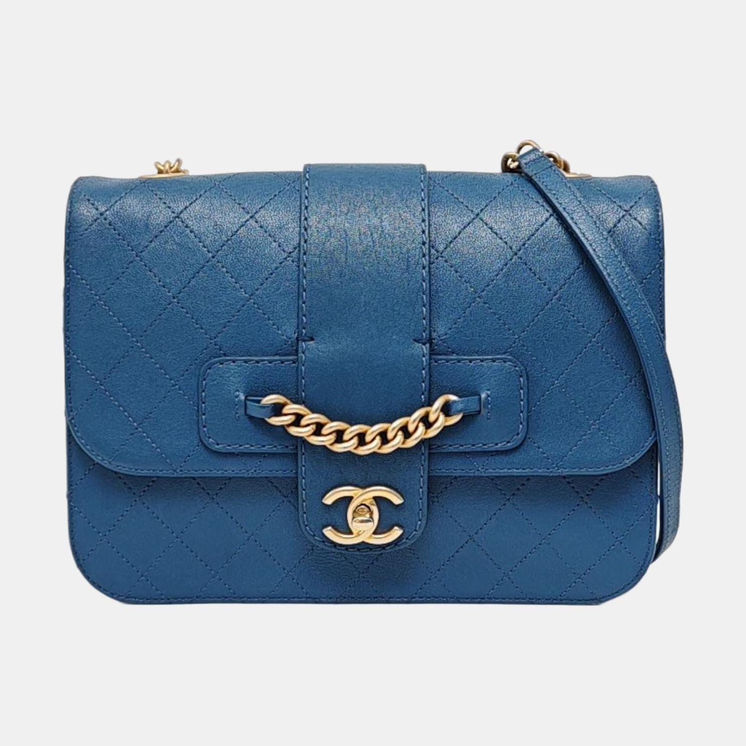 CHANEL FRONT CHAIN FLAP BAG Blue Lamb Skin Quilted Shoulder Bag with Chain Strap, Gold Hardware, 24 Flap-(SKU)-966738258