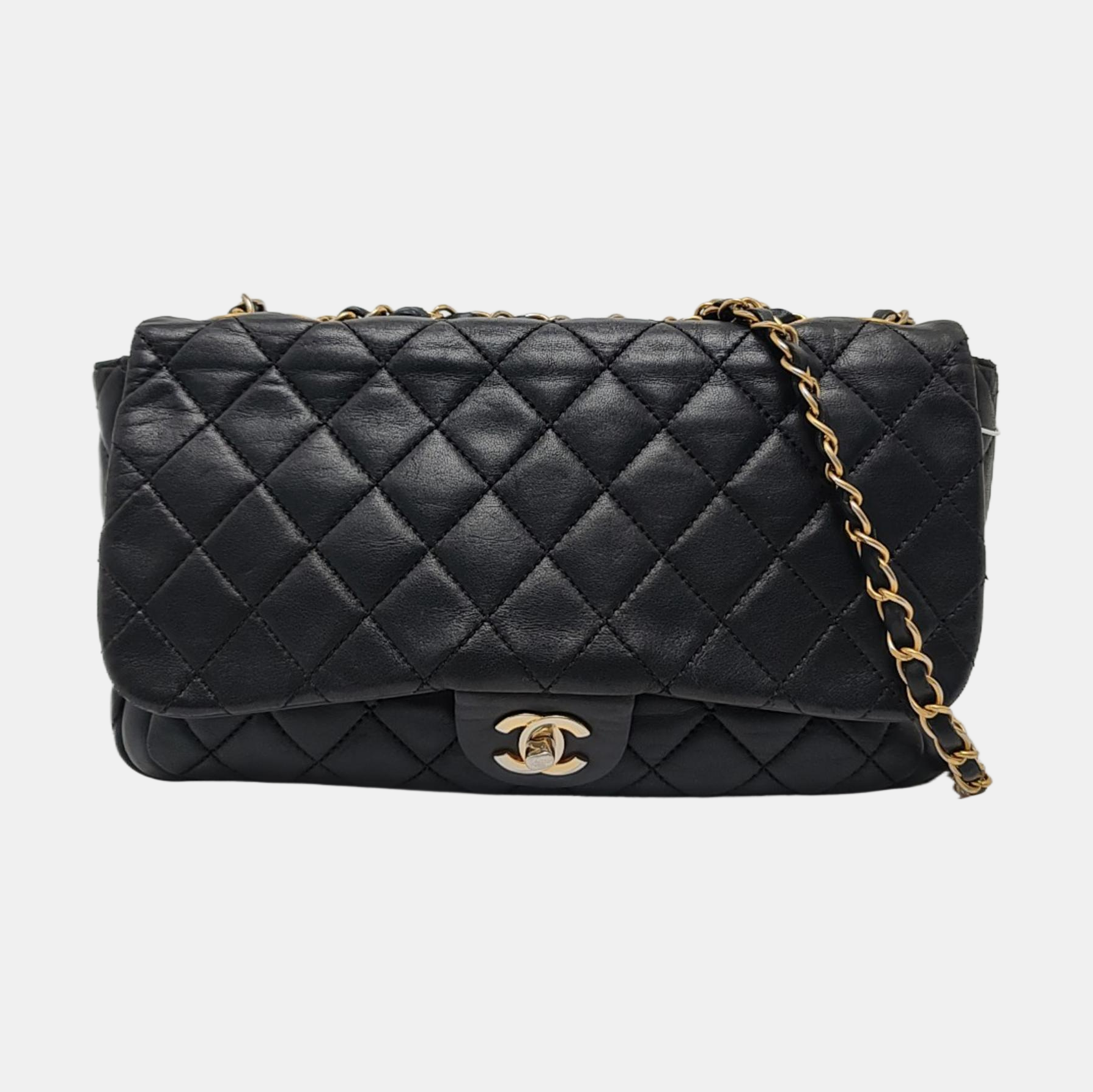 CHANEL NOW AND FOREVER Large Black Lamb Skin Quilted Shoulder Bag with Gold Hardware 18 Clasp-(SKU)-968898781