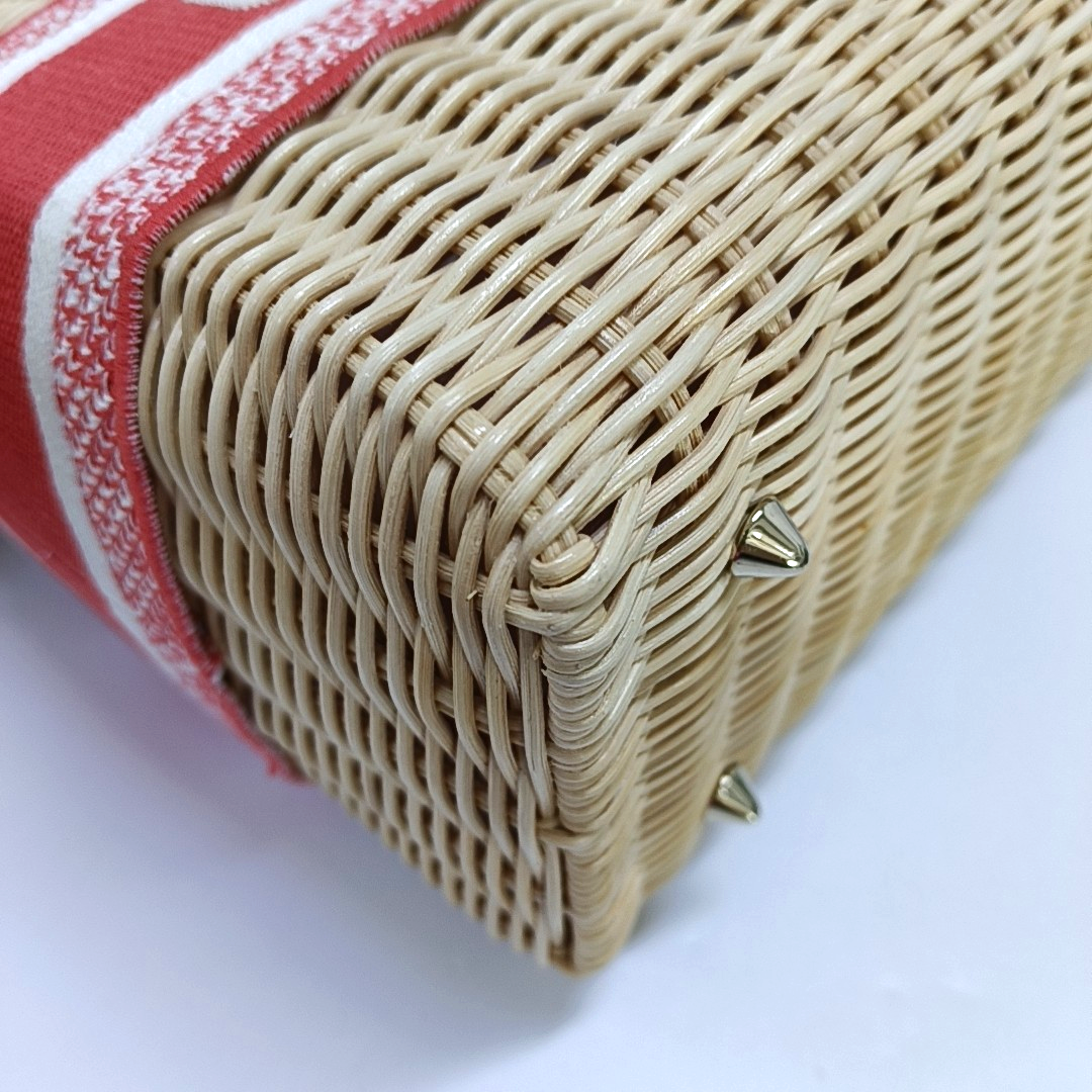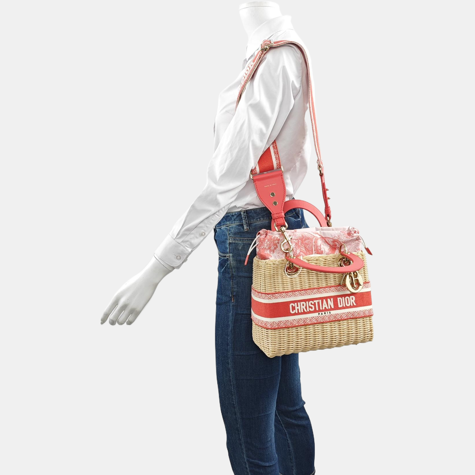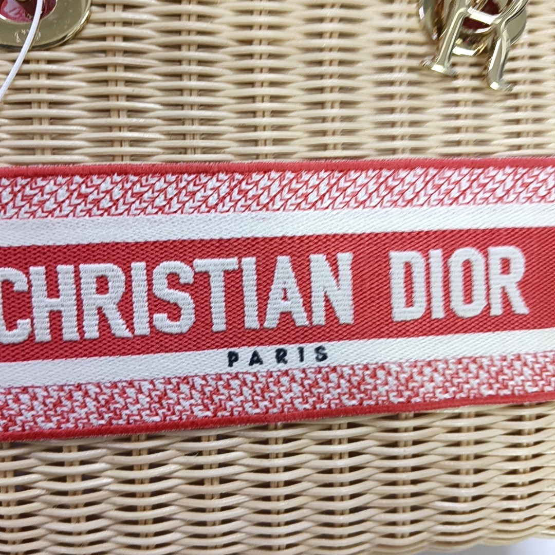 DIOR Lady Dior Medium Beige Straw Embroidered Weave Bag Shoulder Bag Crossbody Bag Gold Hardware Removable Strap-(SKU)-959028607