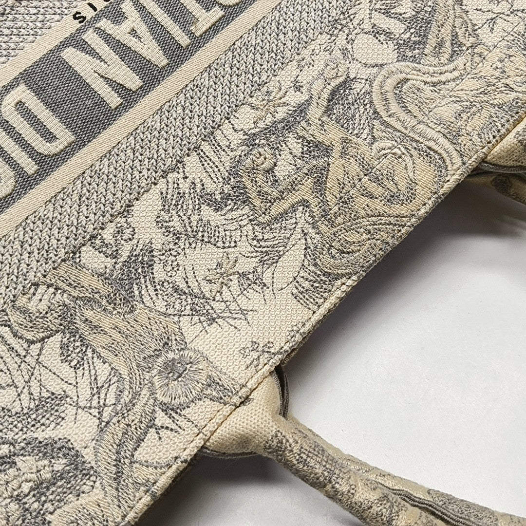 DIOR Book Tote Medium Grey Canvas Embroidered Handbag-(SKU)-971117426
