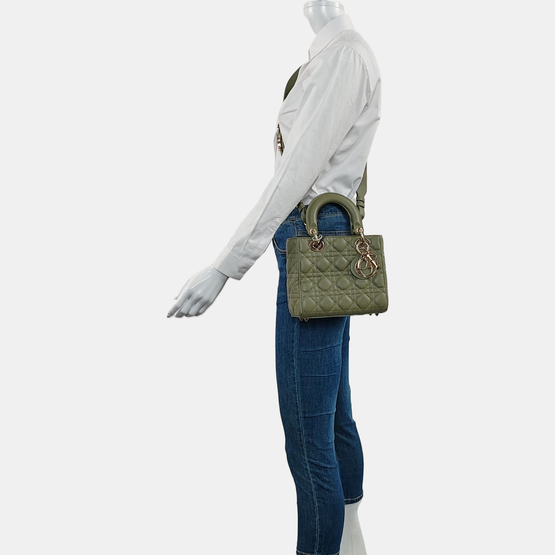 DIOR Lady Dior Small Green Lamb Skin Quilted Cannage Four-Gusset Shoulder Bag with Golden Hardware and Detachable Strap-(SKU)-968039587
