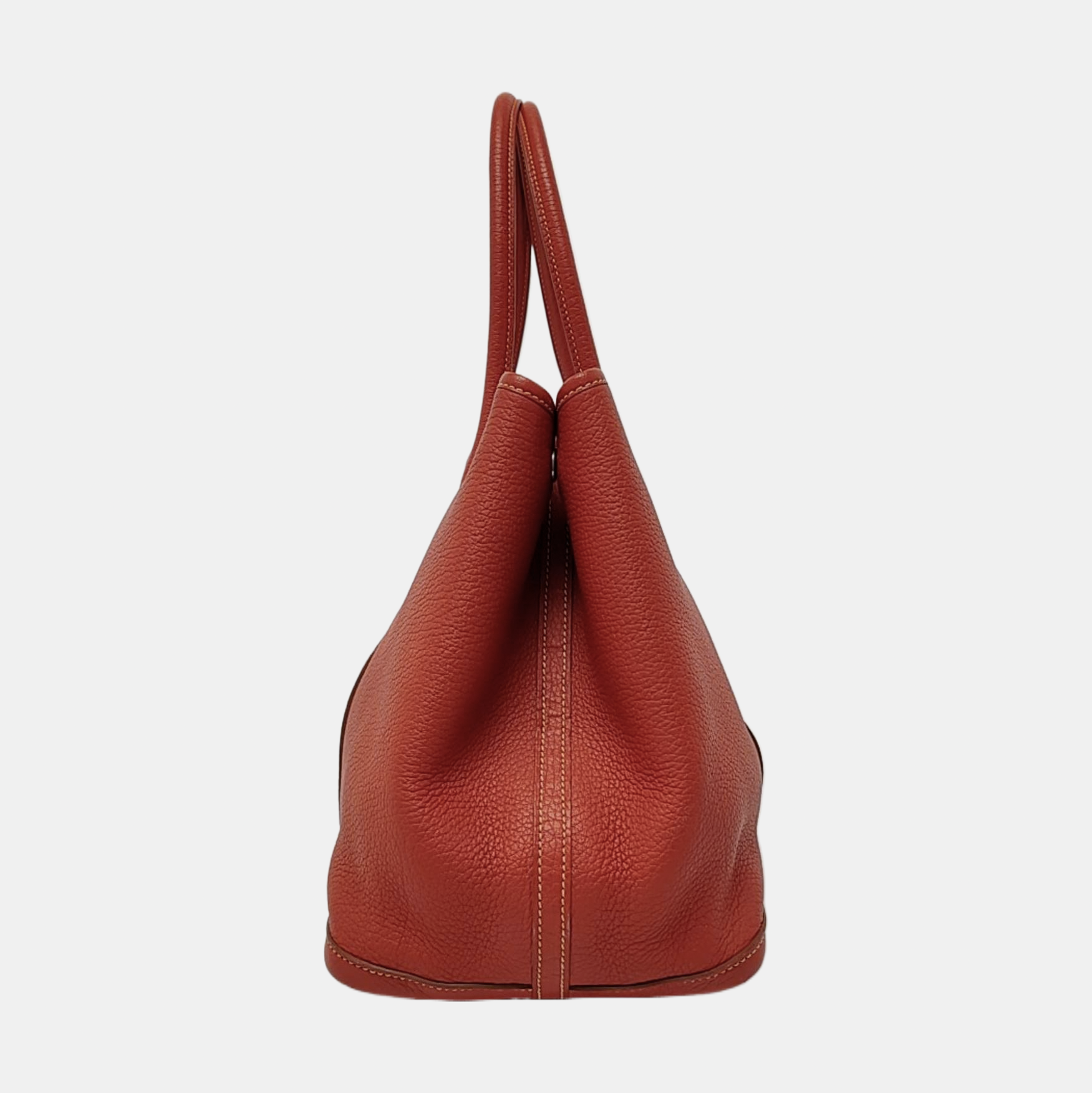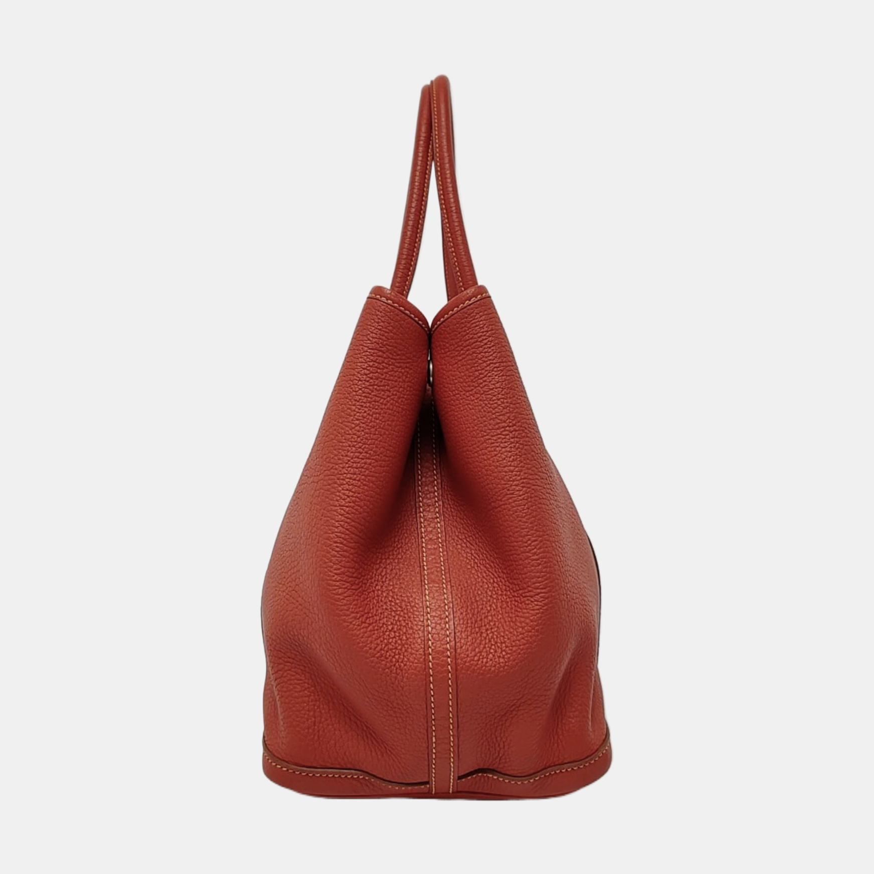 HERMÈS Garden Party 36 Red Negonda Leather Handbag, Silver Hardware, 🅀 Monogrammed-(SKU)-958206619