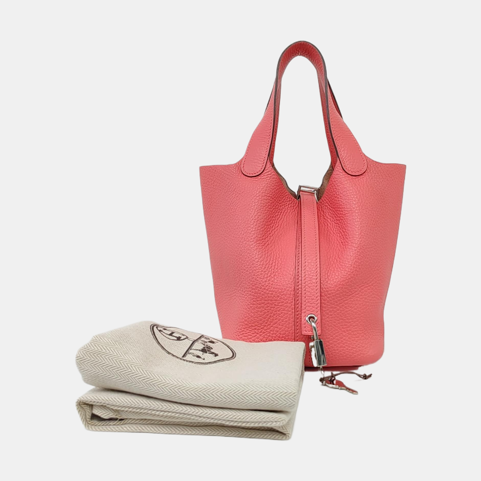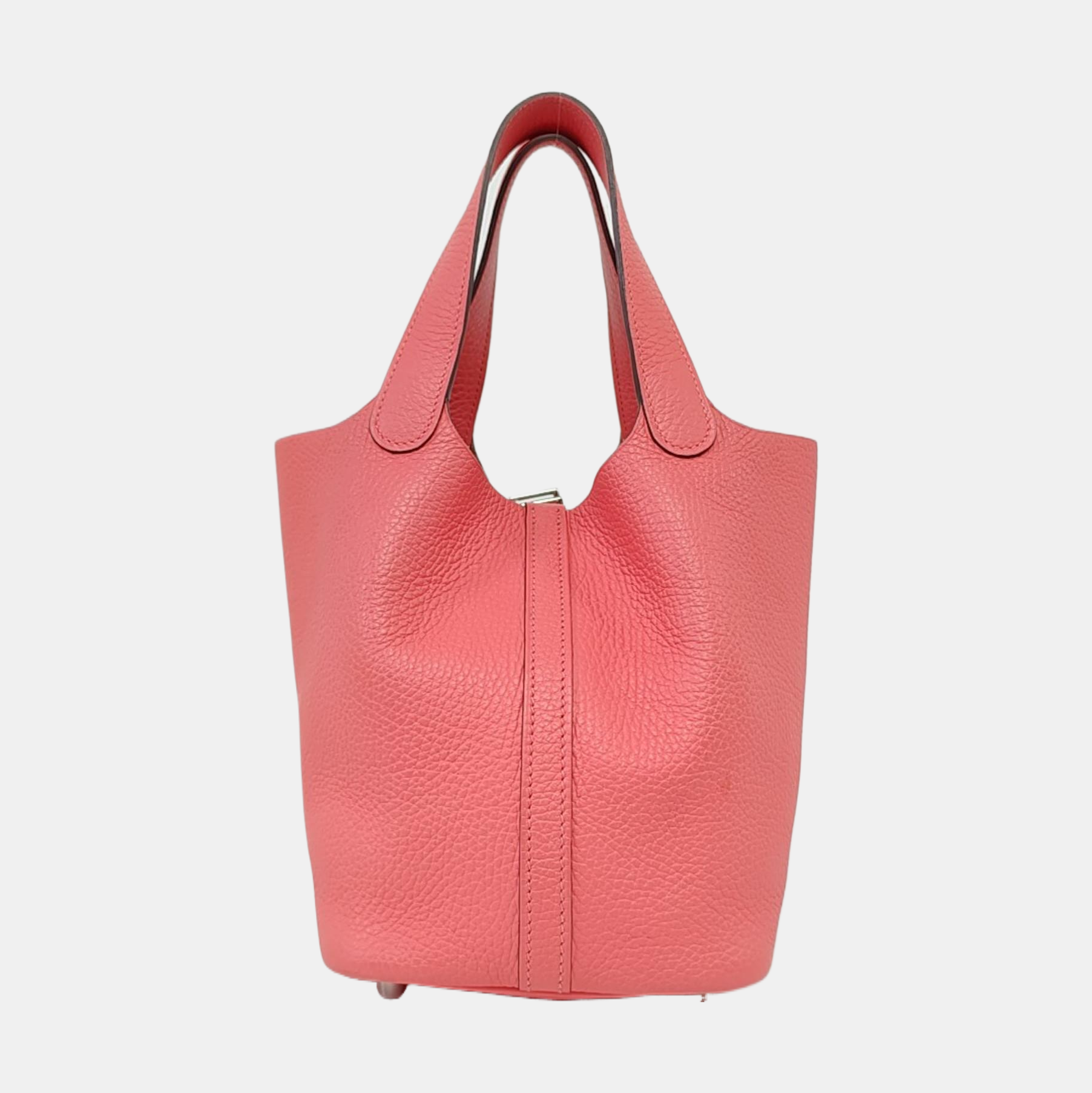 HERMÈS Picotin Lock 18 Lipstick Pink Clemence Leather Market Basket Tote Bag with Silver Hardware A-(SKU)-959918692