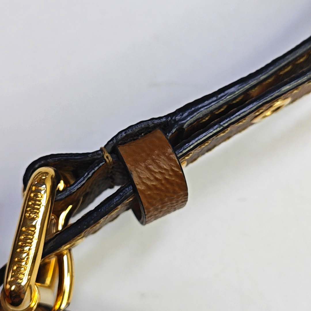 Detailed description: Interior、Inside of the flip cover、Back side、Edge wrapping、Edge wrapping、Bottom side、Slight stains on the four corners,Strap、Edge wrapping around the opening、Hardware buckle with moderate scratches、Front、Zipper、Handheld、Bottom side、Four corners、Slight stains on the hardware,Slight cracking of the flip cover,Slight fraying on the back,Moderate cracking at the opening