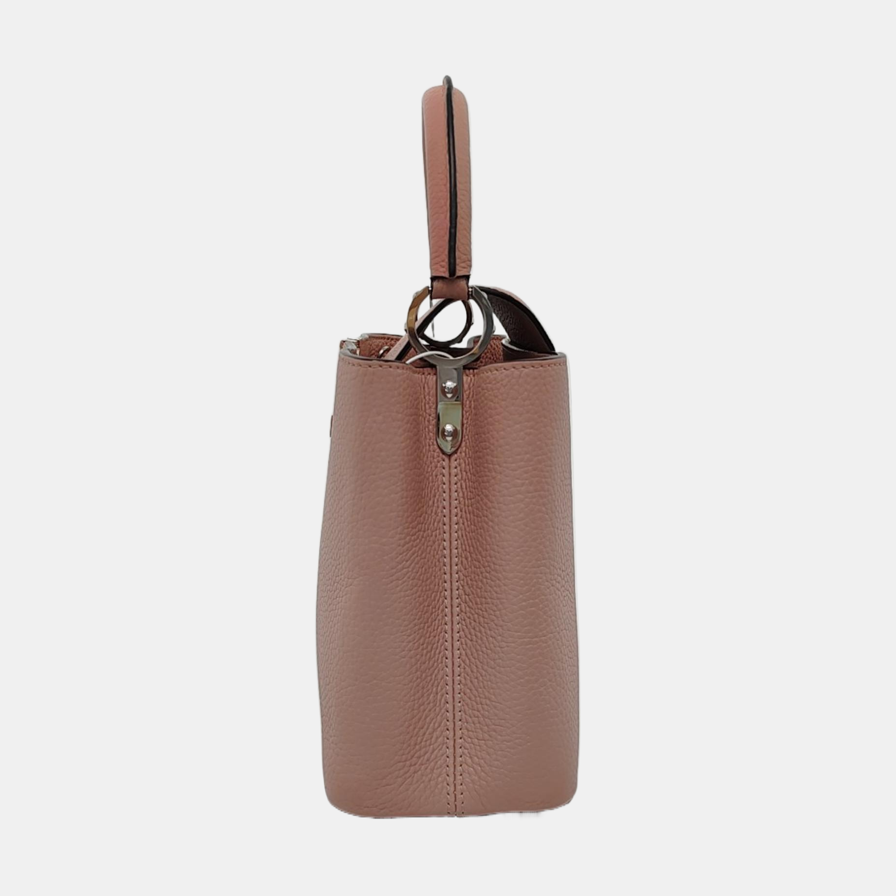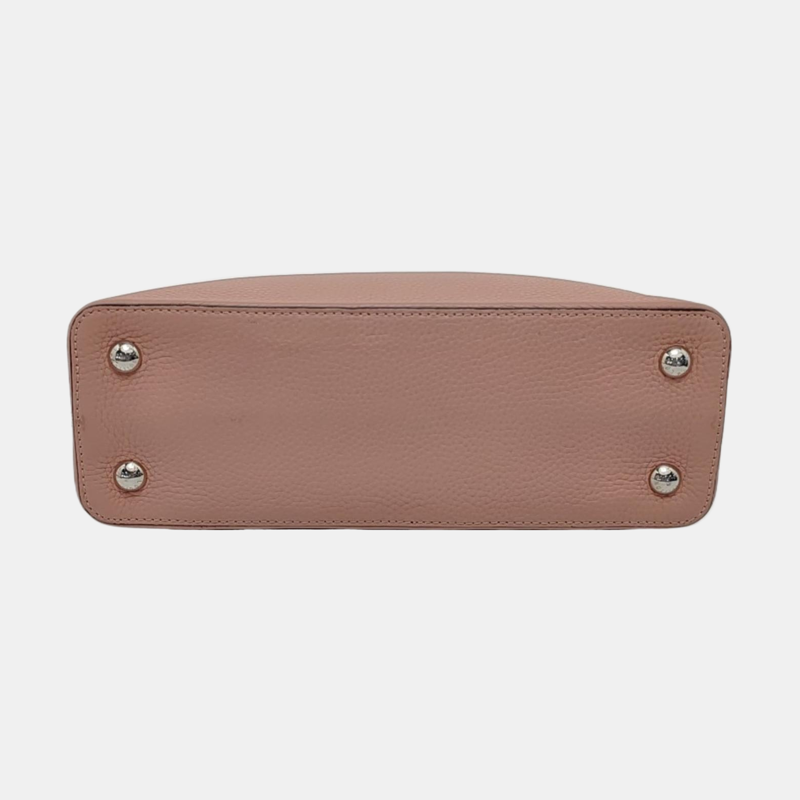 LOUIS VUITTON CAPUCINES Medium Size Nude Pink Calfskin Crossbody Bag Shoulder Bag Tote Bag Silver Hardware Removable Strap-(SKU)-954522912