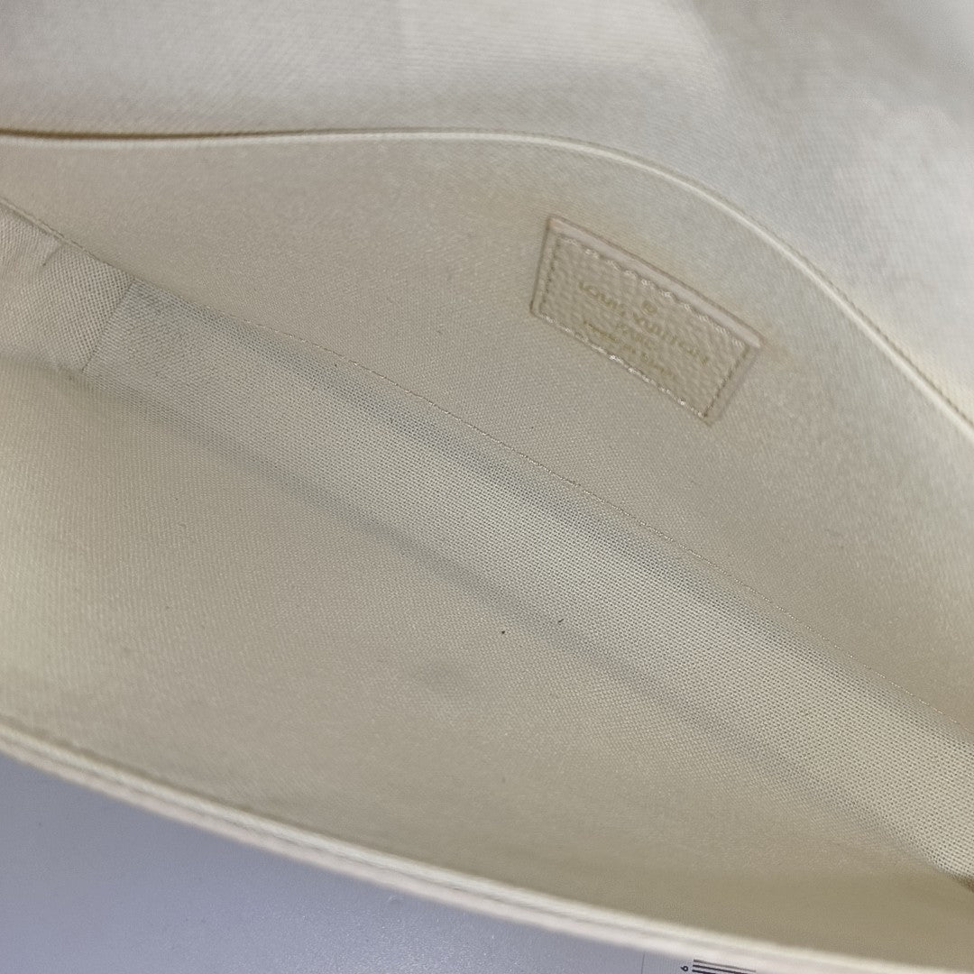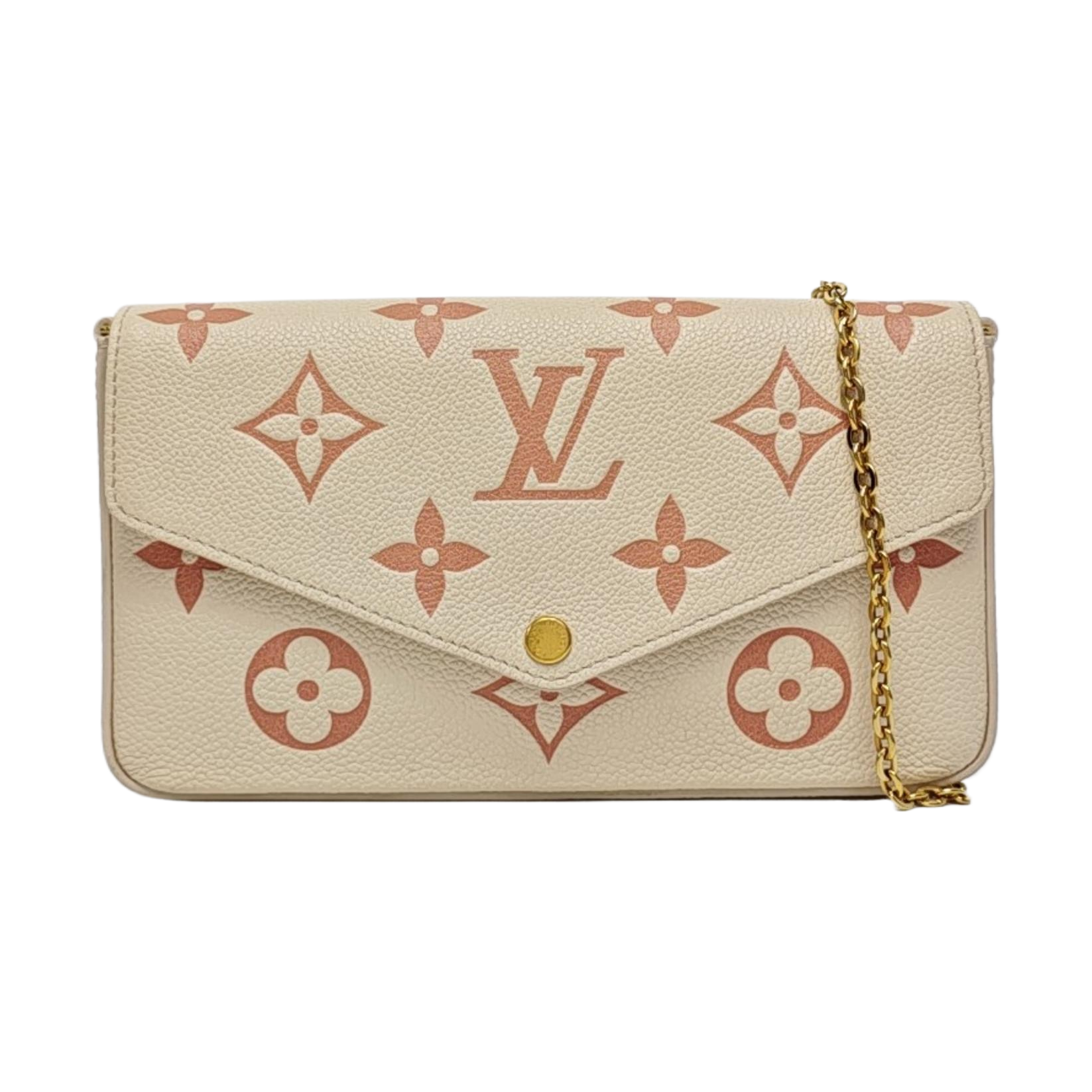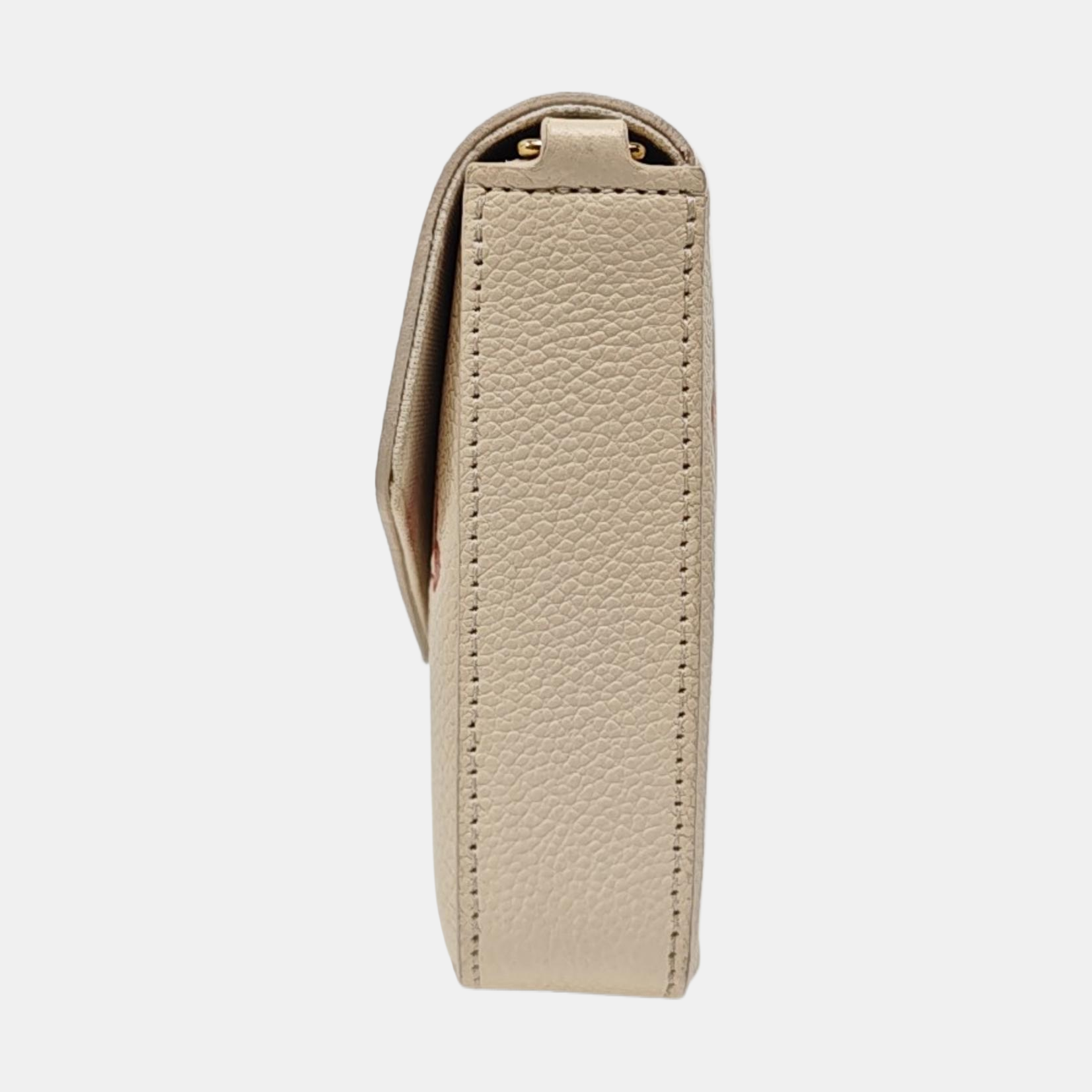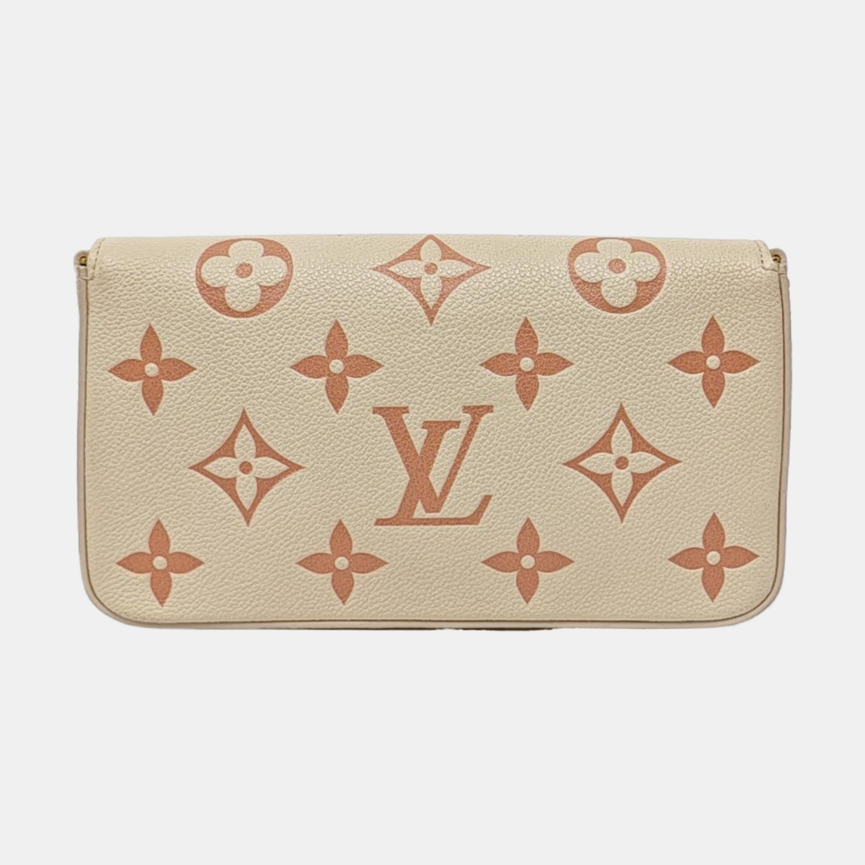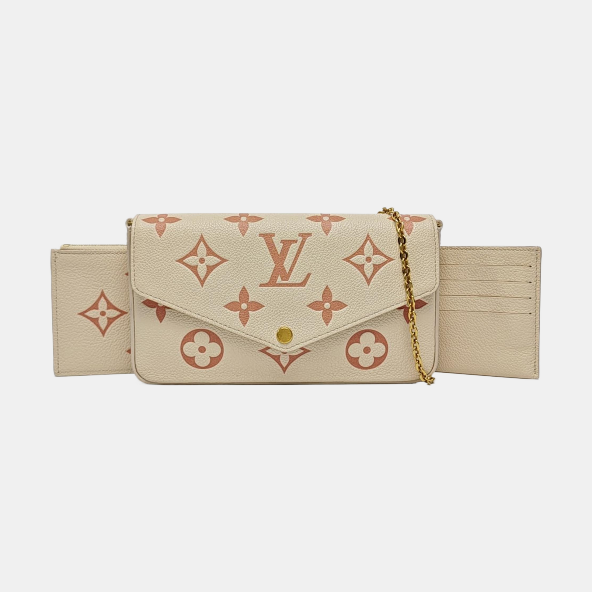 LOUIS VUITTON FÉLICIE Small White Leather Monogram Damier Ebene Crossbody Tote Shoulder Bag Golden Hardware Removable Shoulder Strap with Detachable Pocket-(SKU)-967515976