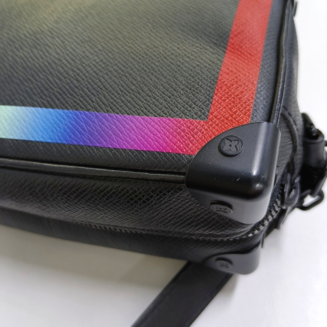 Detailed description: Zipper、Edge wrapping around the opening、Zipper、Hardware buckle with moderate scratches、Slight stains on the hardware,Slight oxidation discoloration of the zipper,Slight creases on the strap,Moderate wear on the four corners
