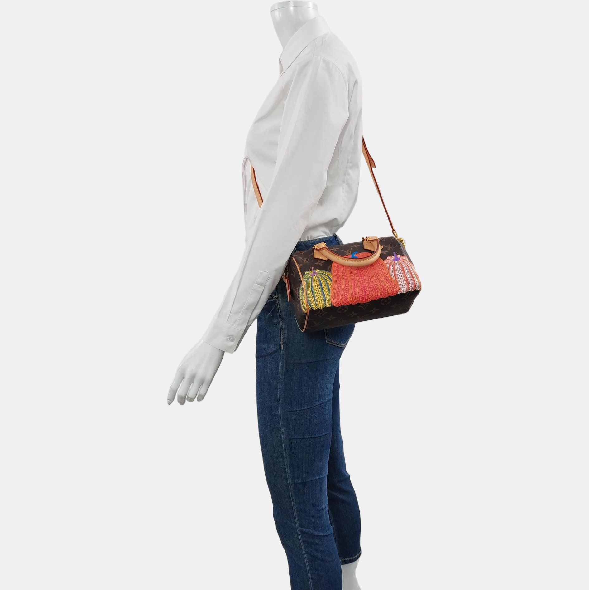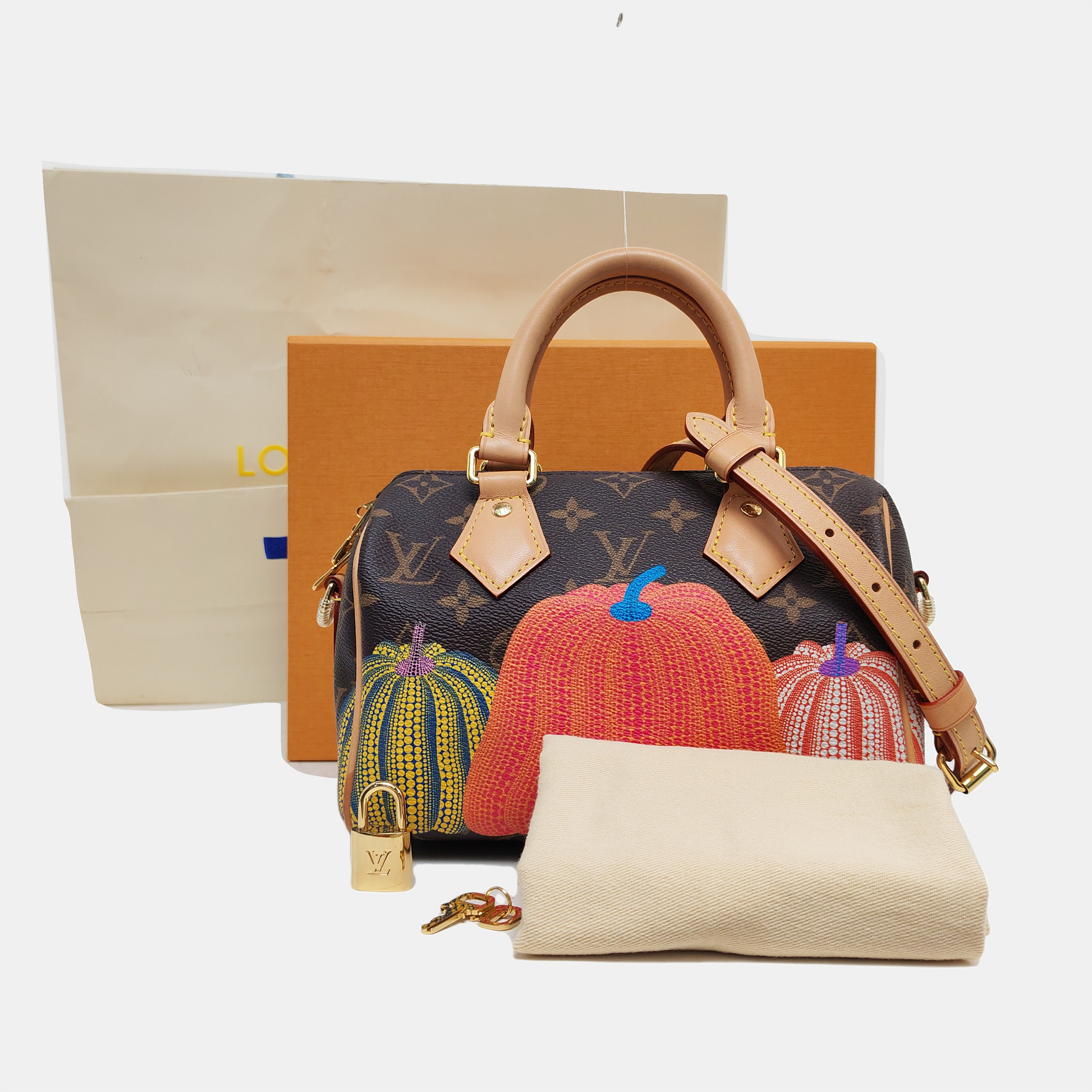 LOUIS VUITTON SPEEDY 20 Brown Coated Canvas Monogram Print Single Shoulder Bag Handbag Crossbody Bag Detachable Strap-(SKU)-969020849