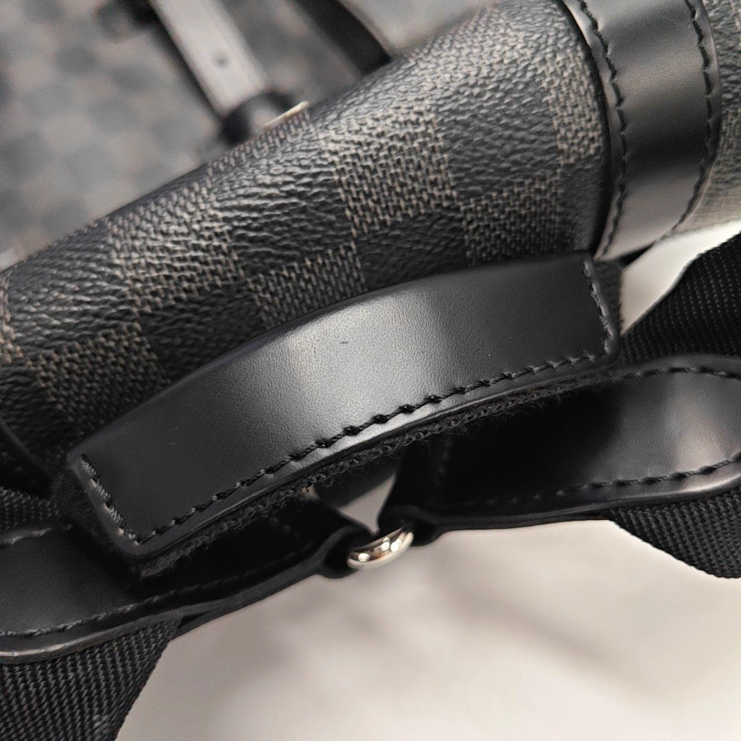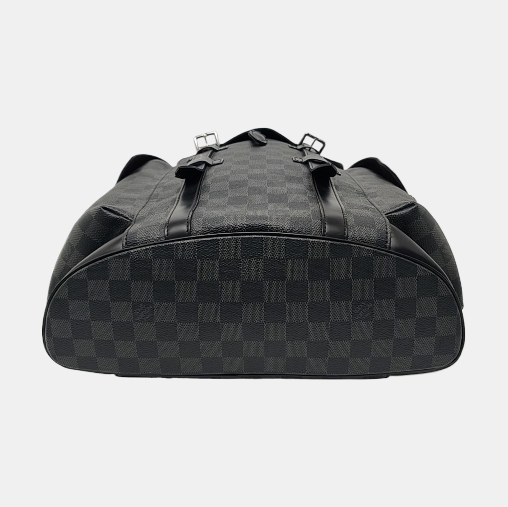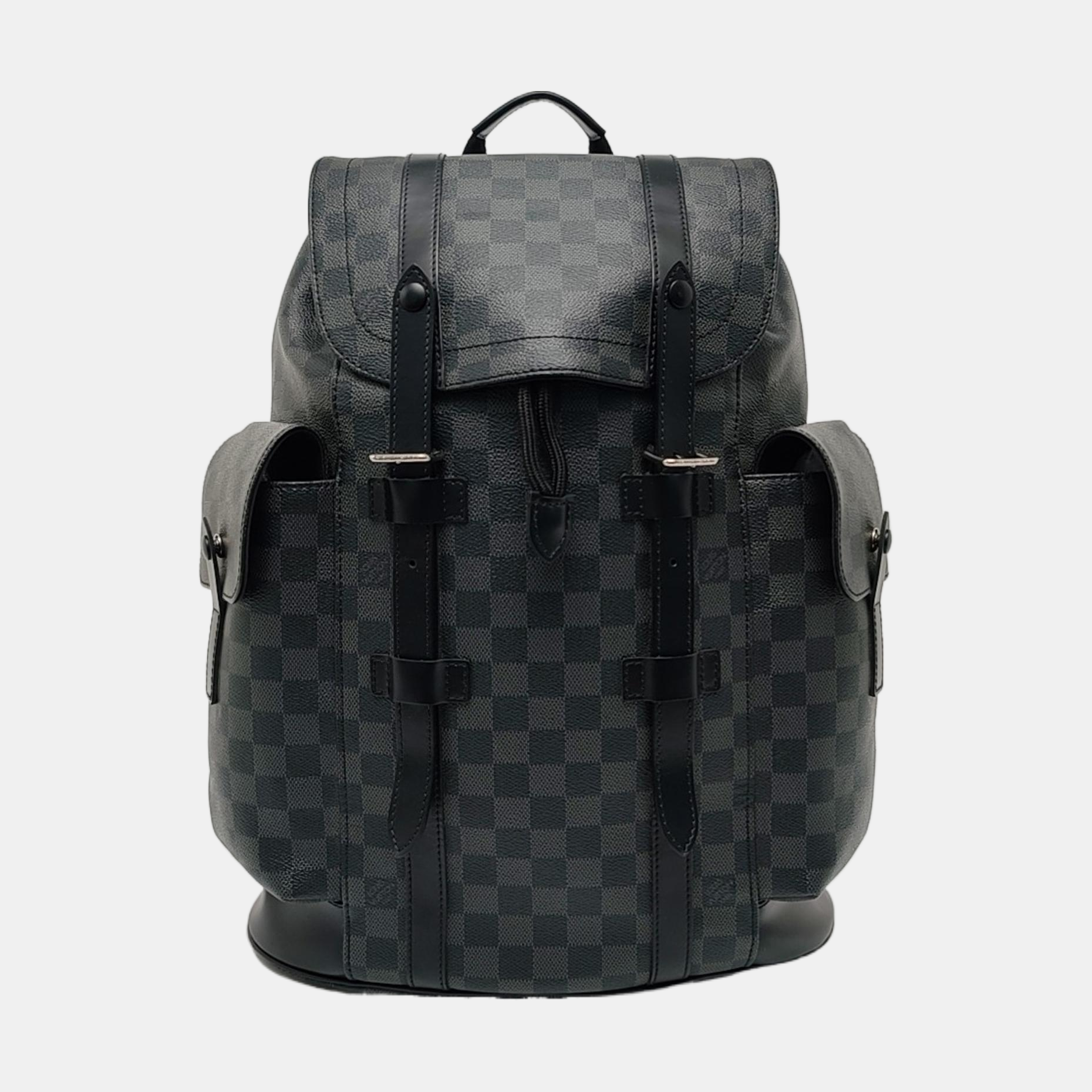 LOUIS VUITTON CHRISTOPHER Medium Grey Coated Canvas Checkerboard Backpack Tote Bag with Silver Hardware-(SKU)-969278949