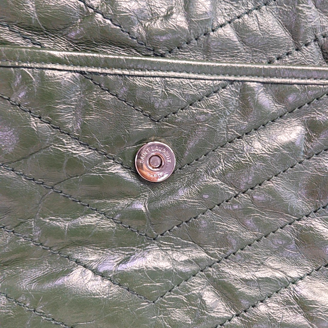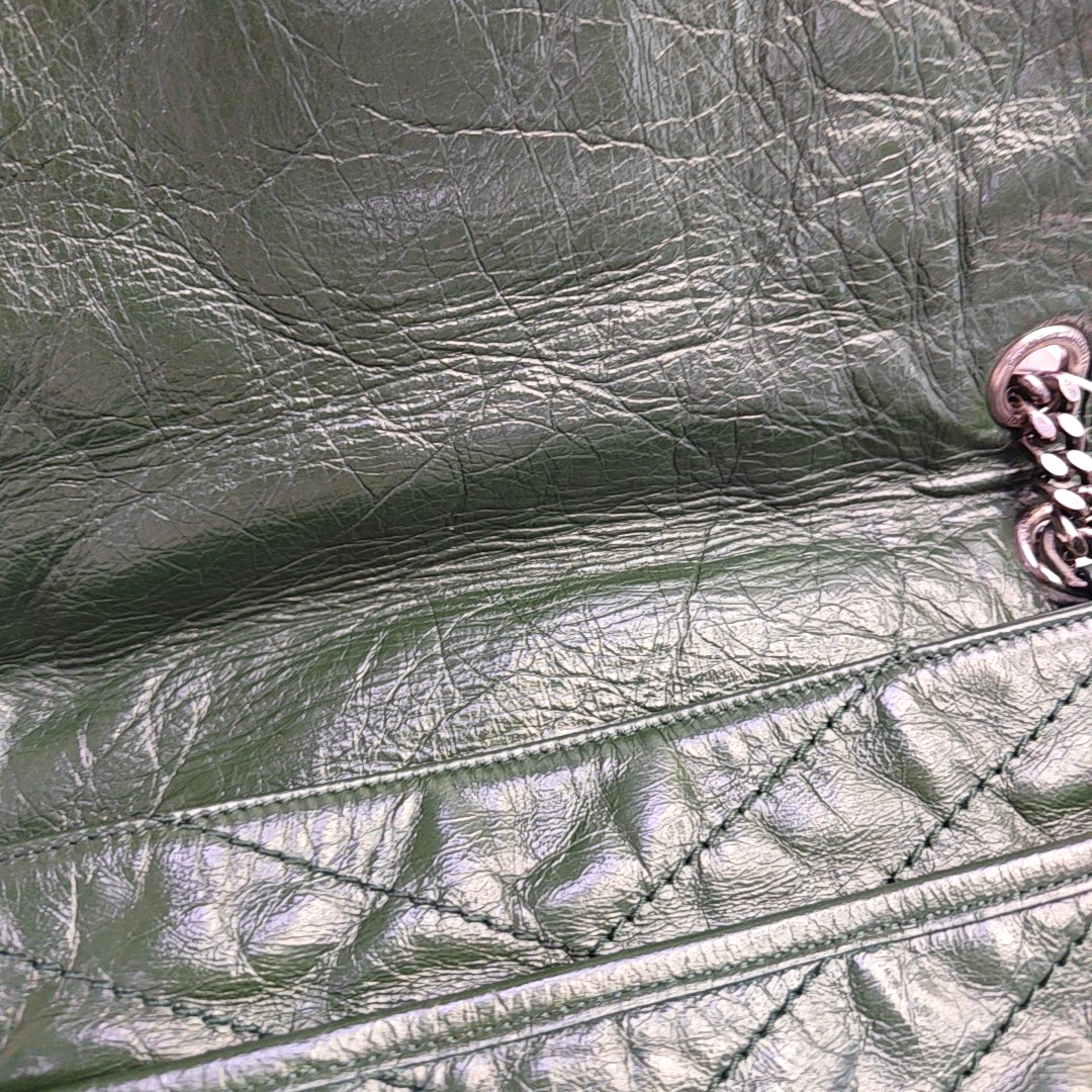 YSL NIKI Medium Size Dark Green Calf Leather V-Stitch Crinkle Single Shoulder Bag Crossbody Bag Black Hardware-(SKU)-961734723