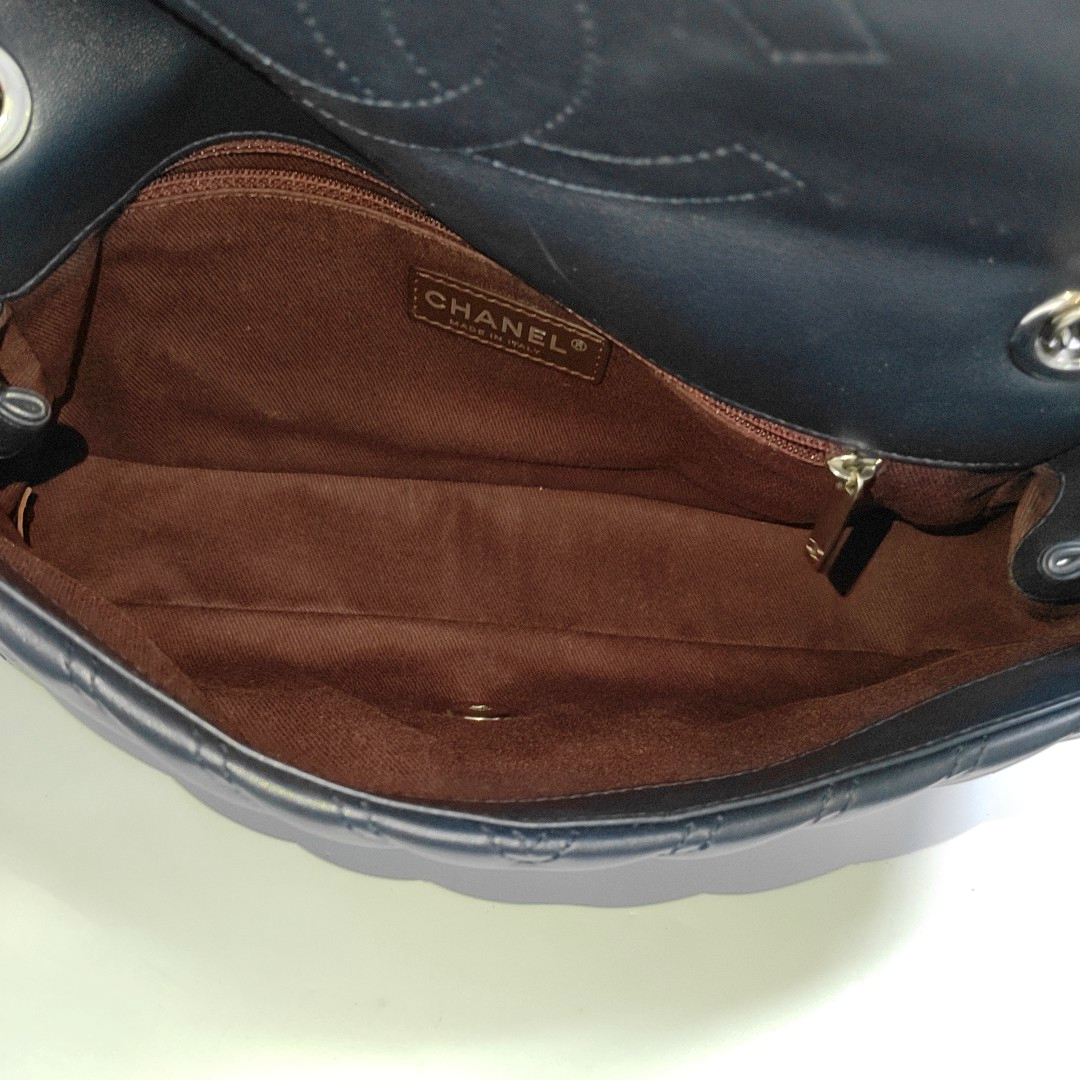 CHANEL CLASSIC FLAP Medium-sized Deep Blue Lamb Skin Quilted V Pattern Crossbody Bag Shoulder Bag 21 Clasp Silver Hardware-(SKU)-960583335