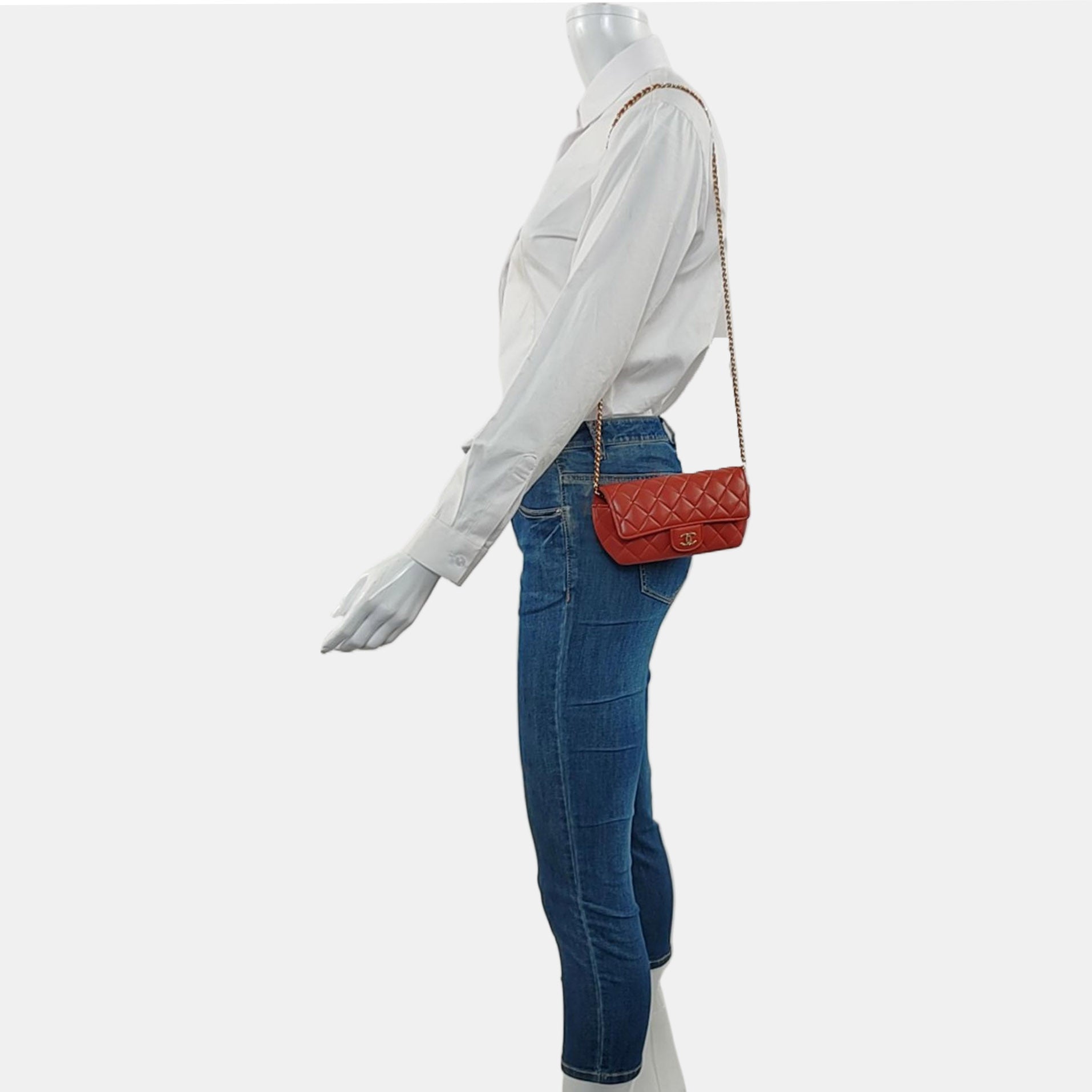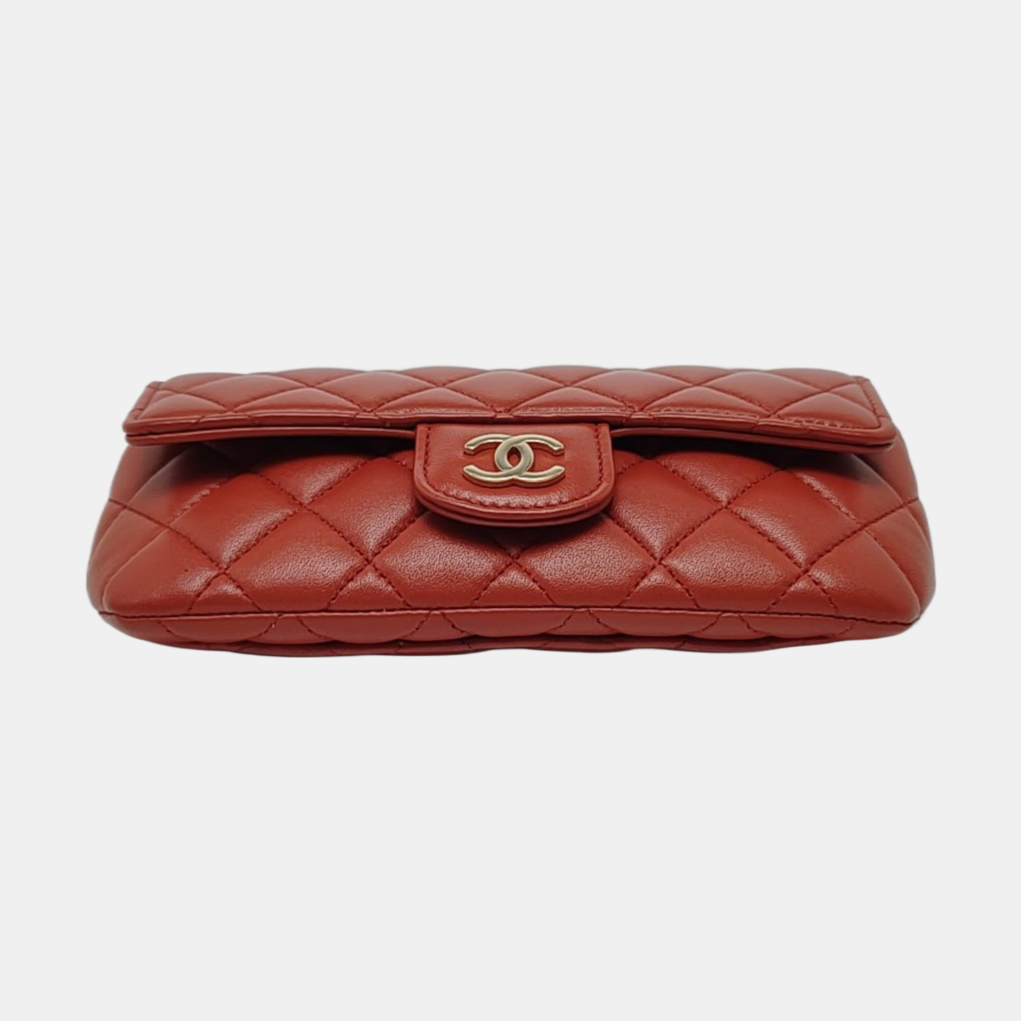 CHANEL CLASSIC FLAP Brick Red Lamb Skin Quilted Shoulder Bag Crossbody with Gold Hardware 31 Clasp-(SKU)-968214539