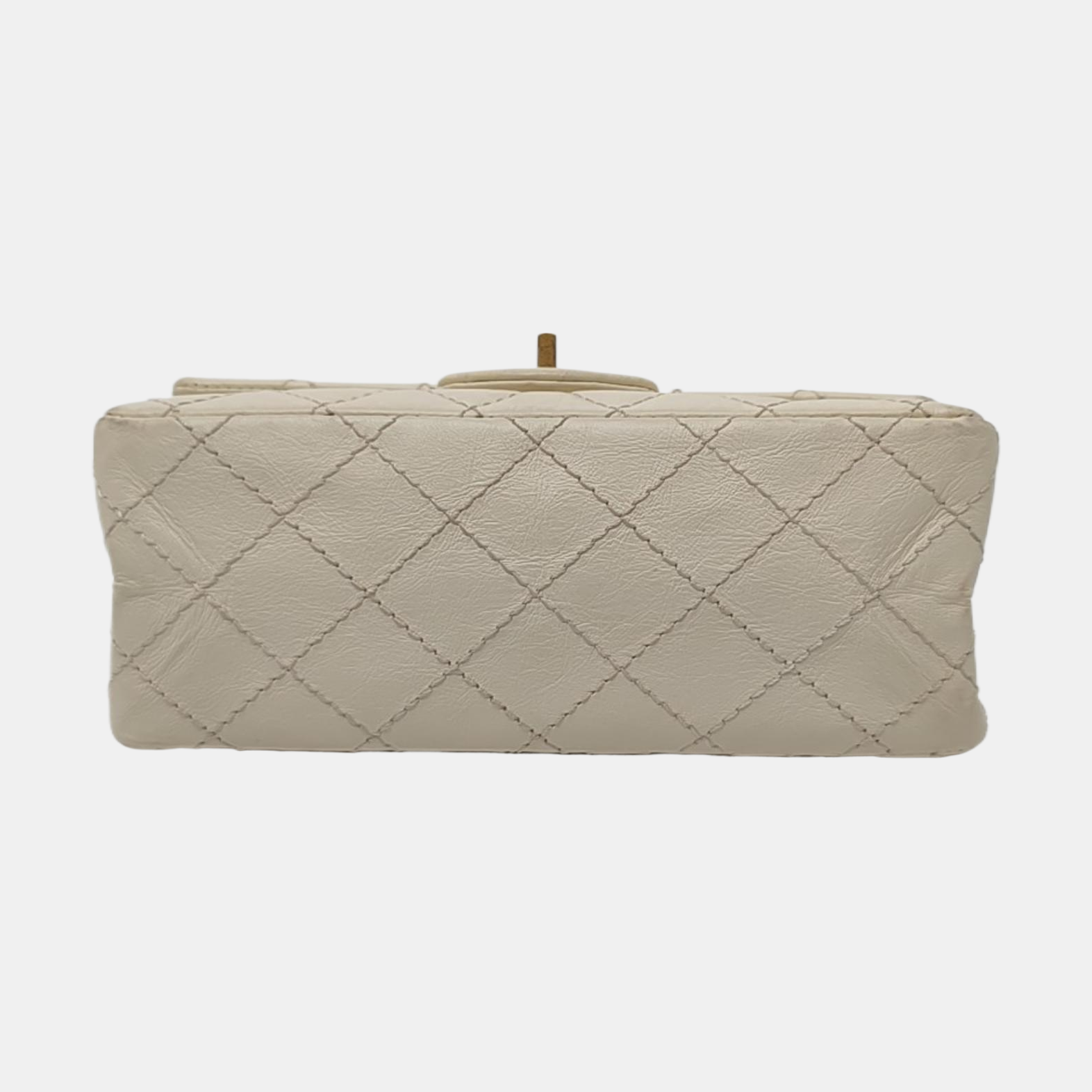 CHANEL 2.55 Mini White Calfskin Quilted Single Shoulder Bag Crossbody with Gold Hardware, 30 Clasp-(SKU)-967684071