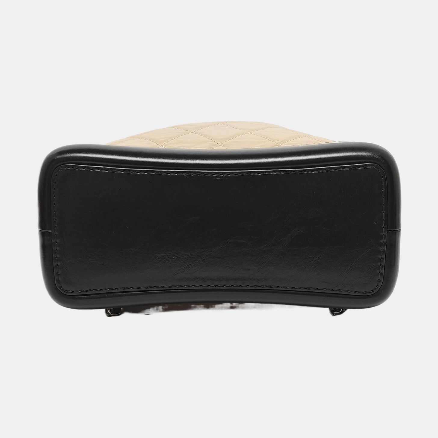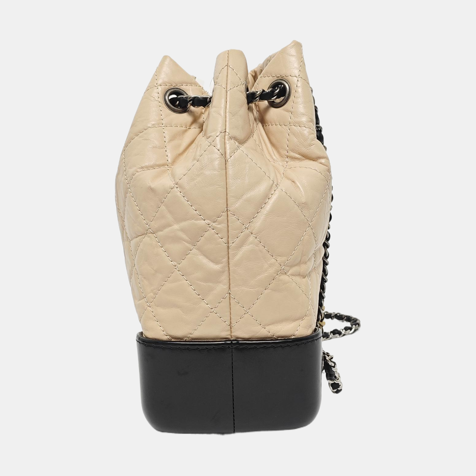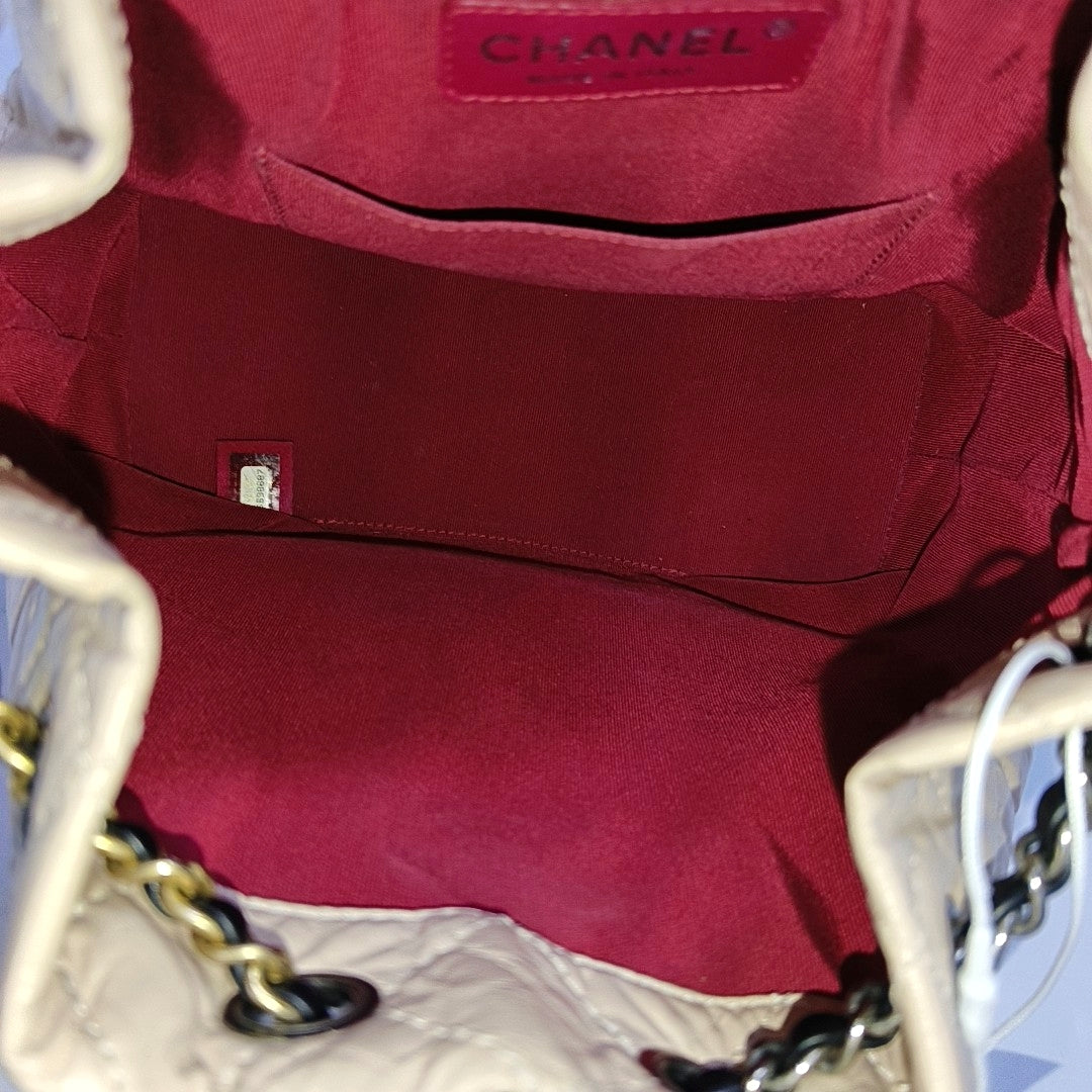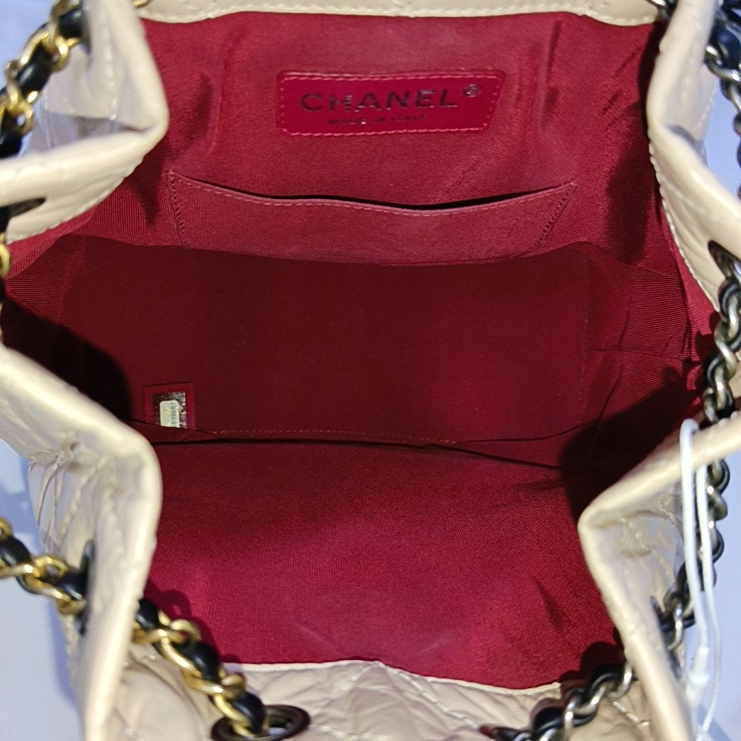 CHANEL GABRIELLE small size beige leather quilted Gabrielle bag, backpack with gold and silver hardware and 26 chain links-(SKU)-967131520