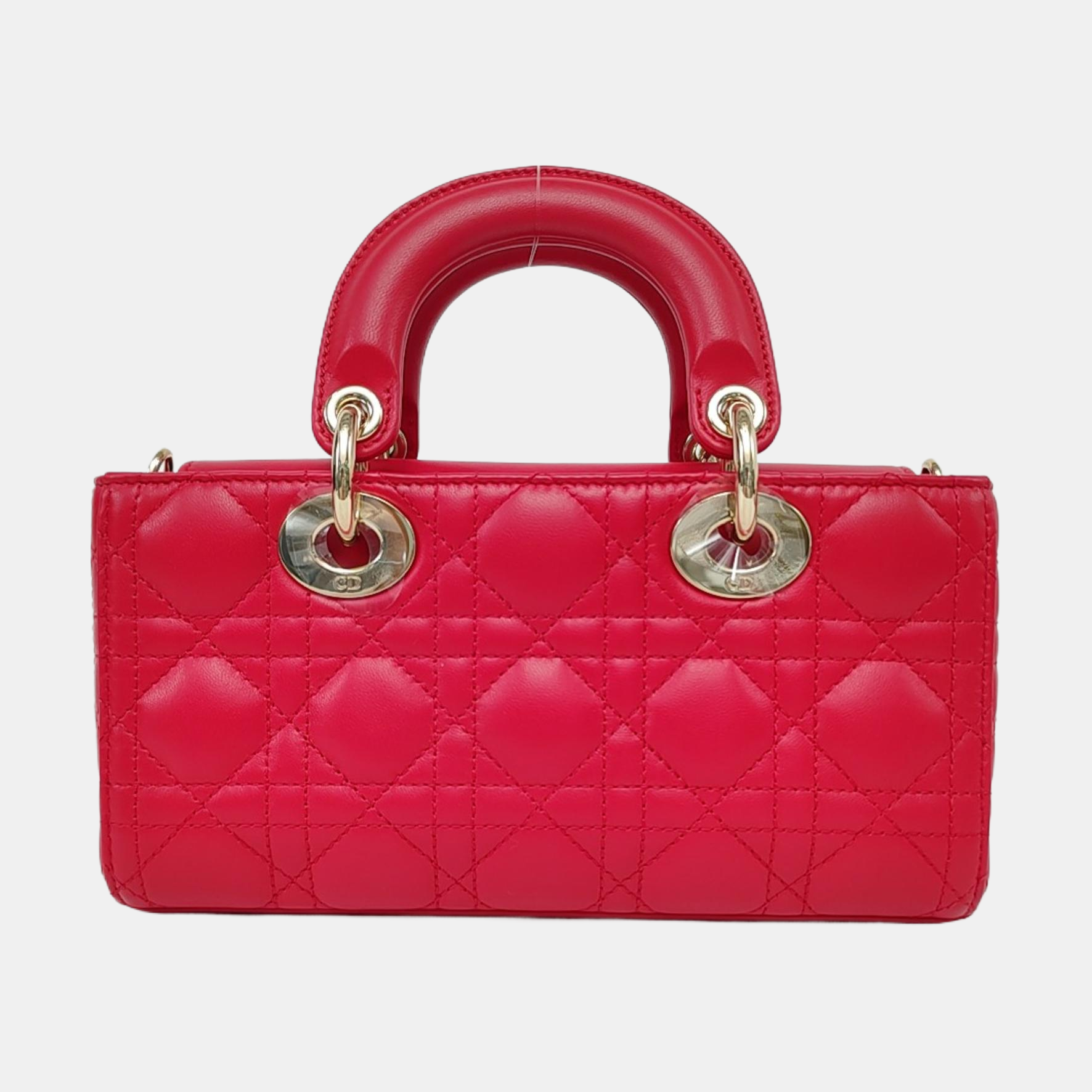 DIOR Lady D-Joy Small Red Lamb Skin Quilted Cannage Five-Panel Shoulder Bag with Detachable Strap, Gold Hardware-(SKU)-958281781