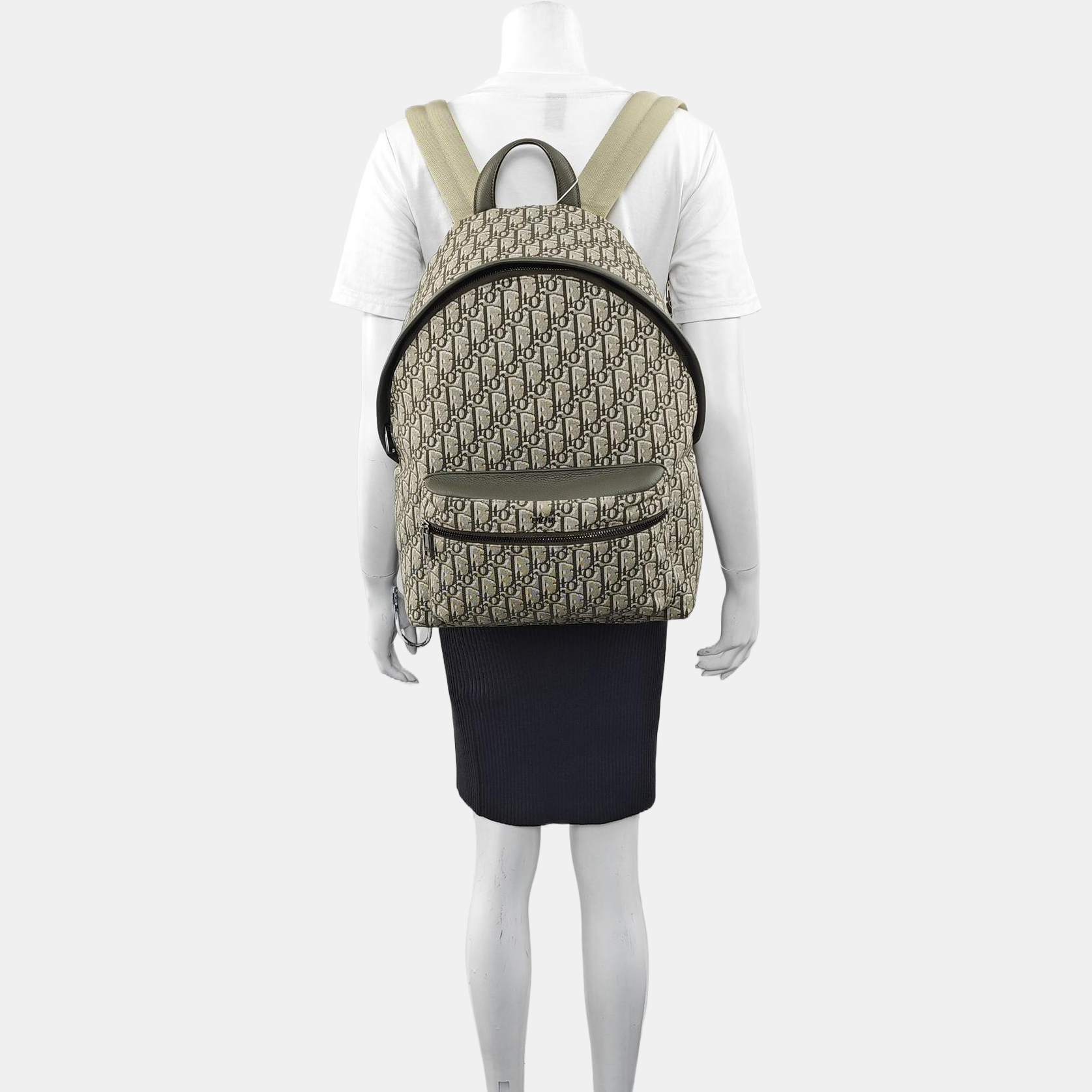 DIOR Rider Beige Canvas Monogram Jacquard Backpack with Silver Hardware-(SKU)-971045126
