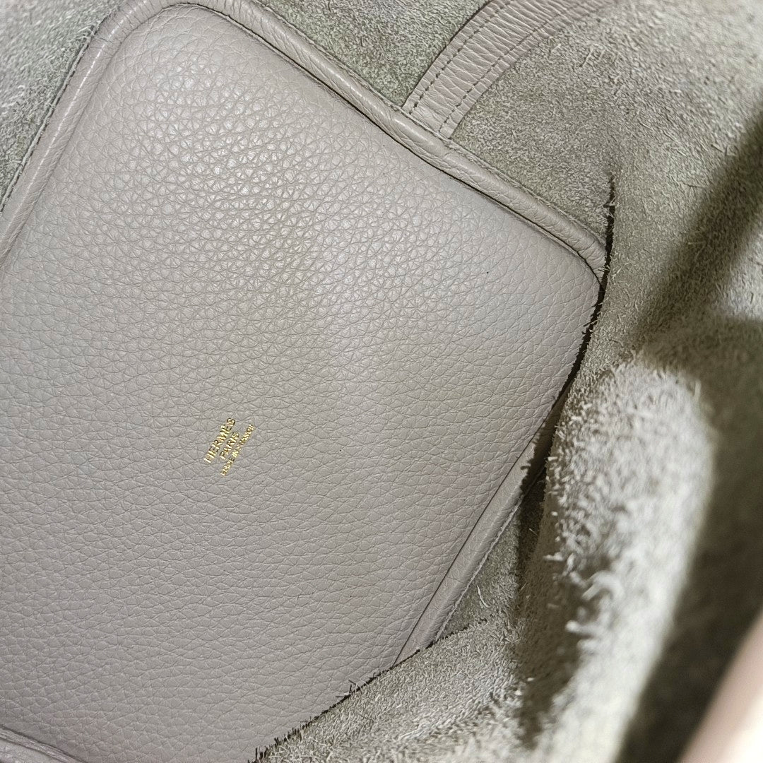 HERMÈS Picotin Lock 22 Cream White Clemence Leather Market Basket Tote Bag with Gold Hardware C-(SKU)-969979907