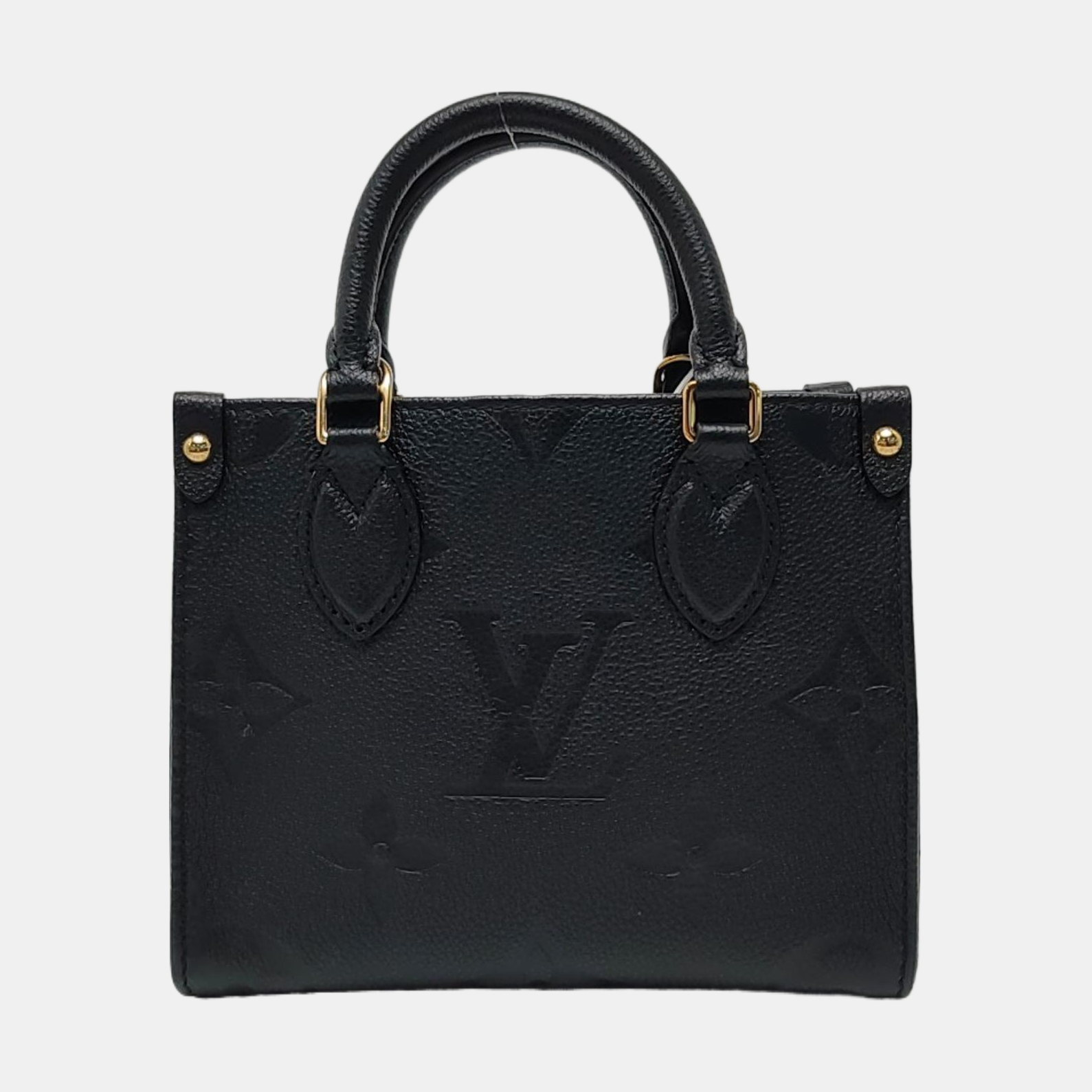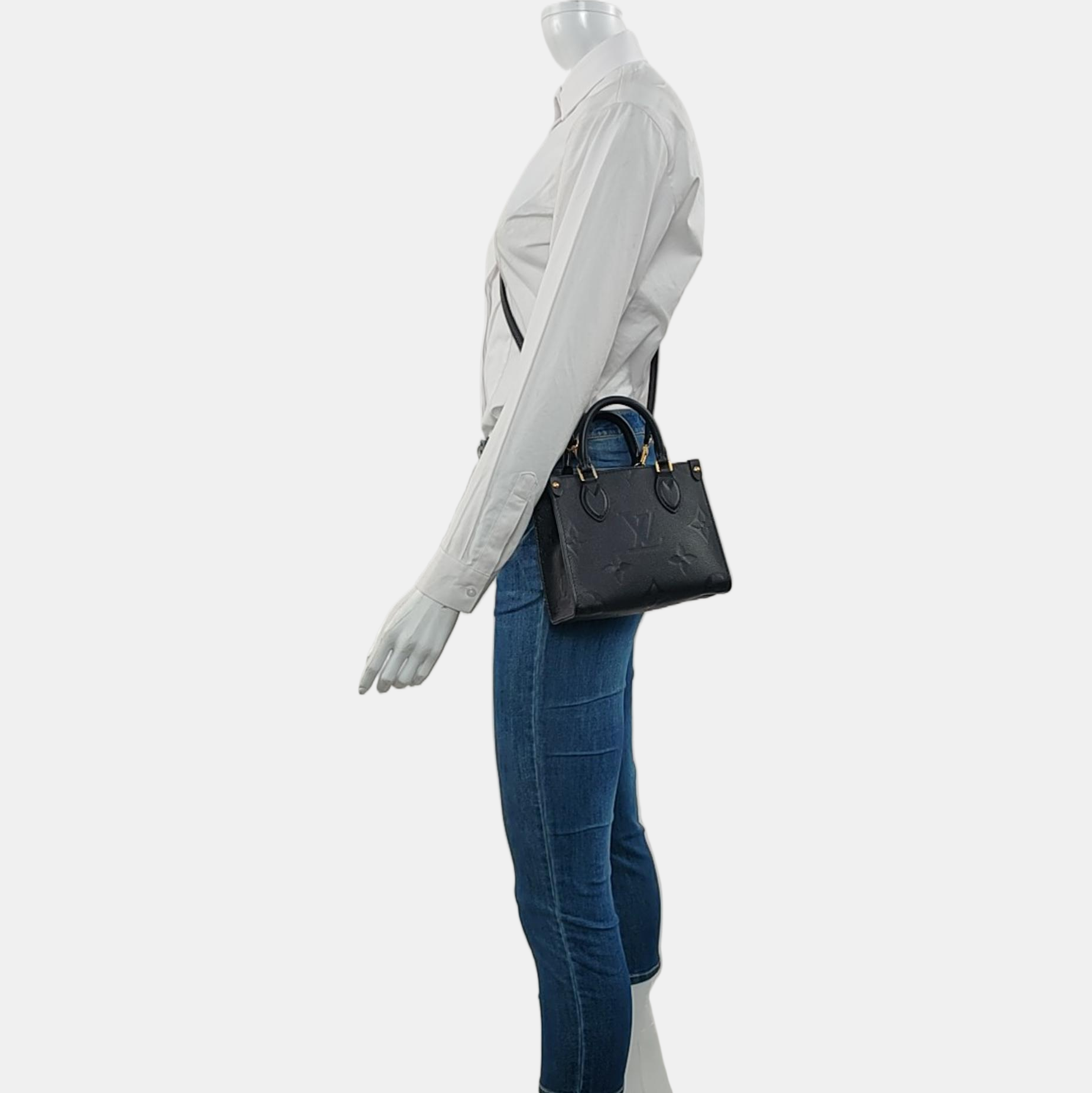 LOUIS VUITTON ONTHEGO BB Black Leather Monogram Crinkle Jungle Bag Shoulder Bag Tote Crossbody Bag with Gold Hardware and Removable Strap-(SKU)-970414576