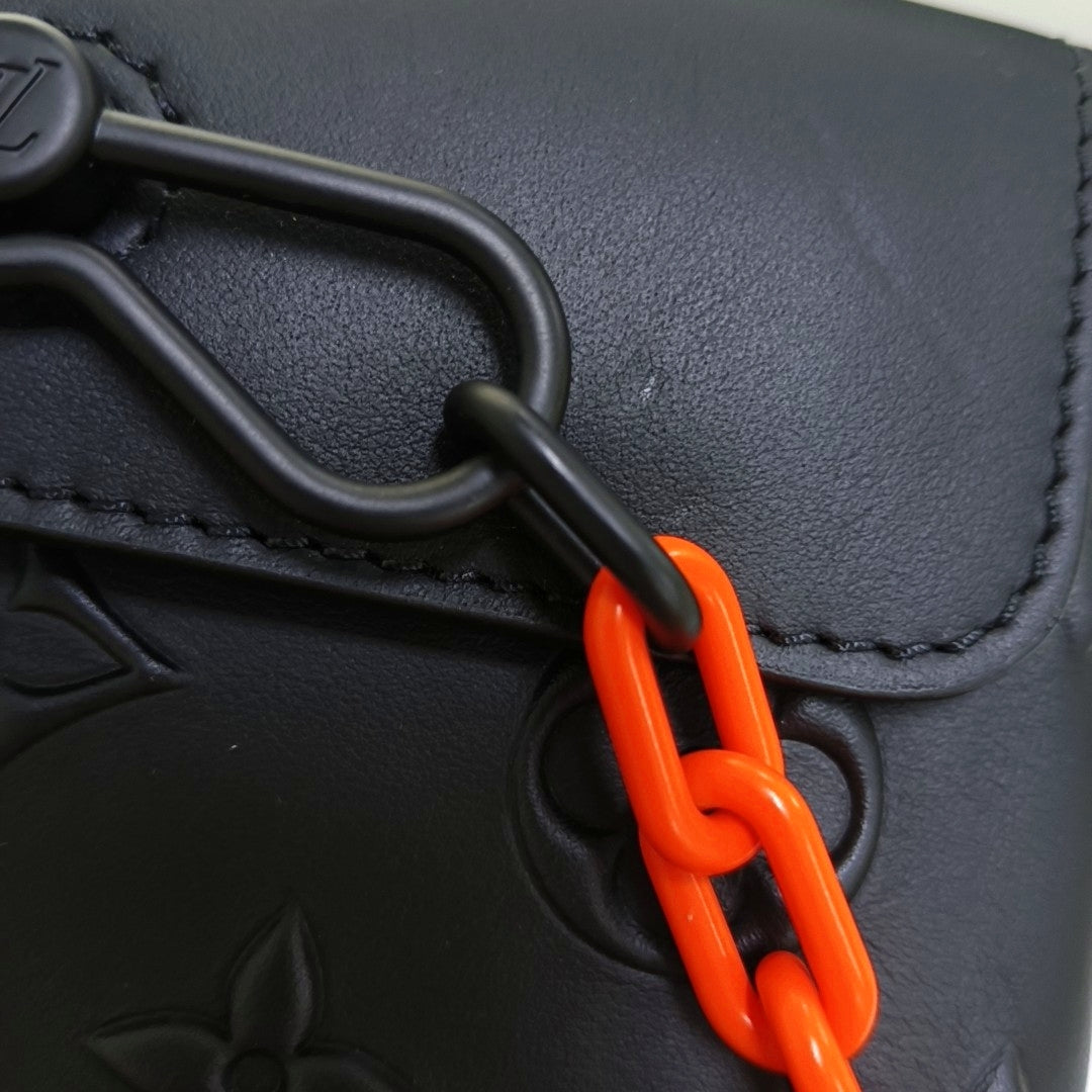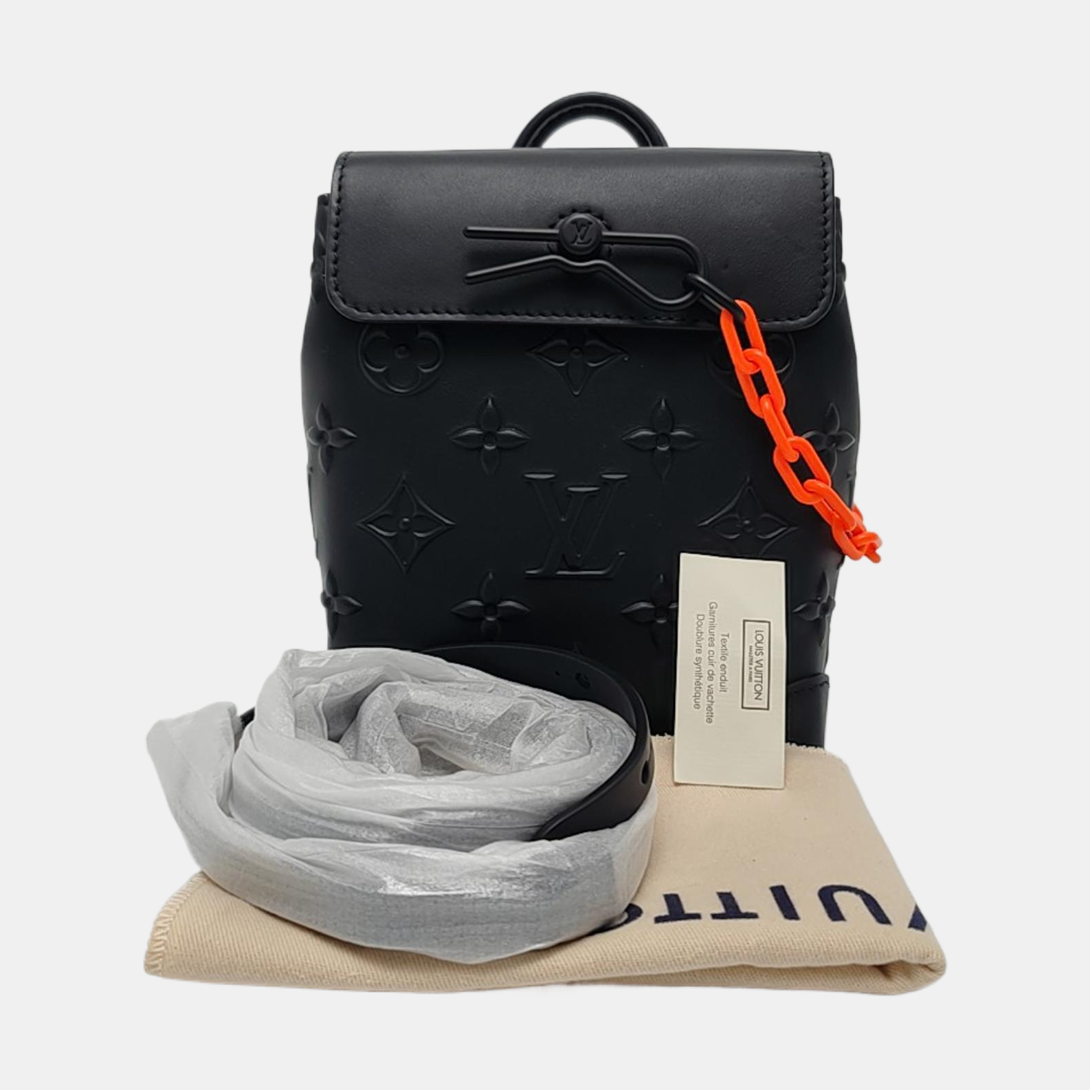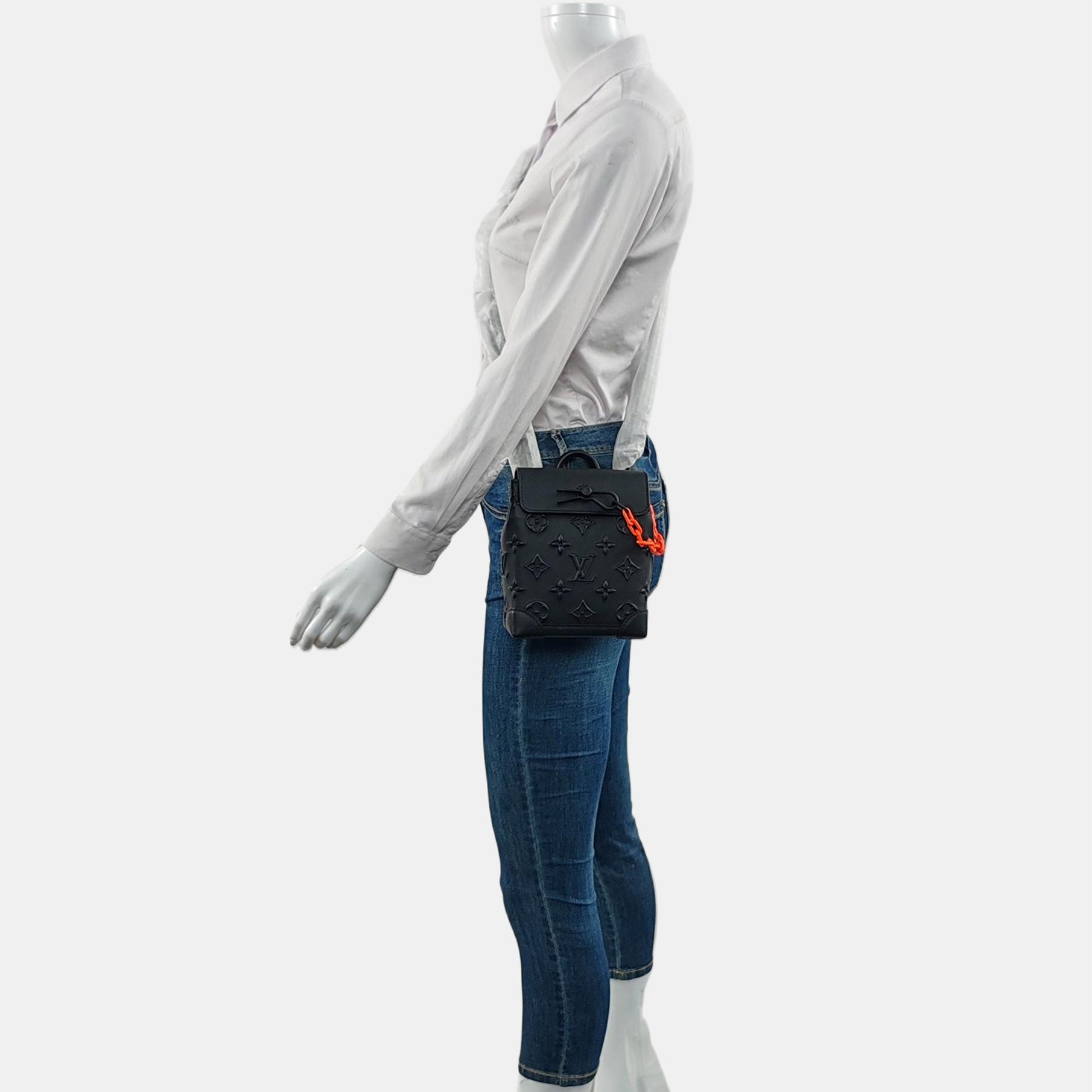 LOUIS VUITTON STEAMER Extra Small Black Leather Embossed Shoulder Bag with Shoulder Strap, Gold Hardware, Removable Shoulder Strap-(SKU)-965312772