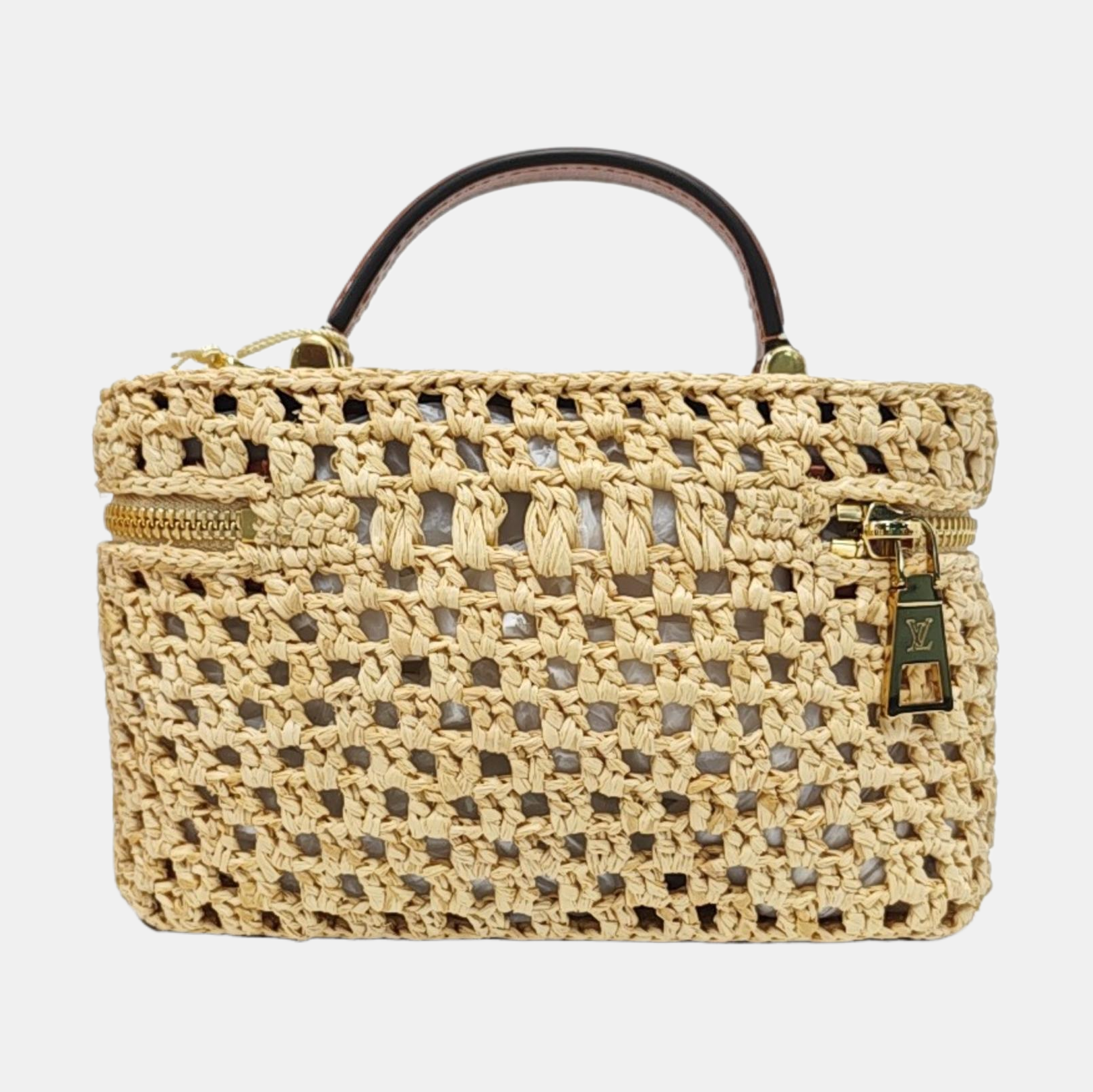 LOUIS VUITTON VANITY CHAIN POUCH Beige straw woven single shoulder bag, gold hardware, removable shoulder strap, complete accessories-(SKU)-971025646