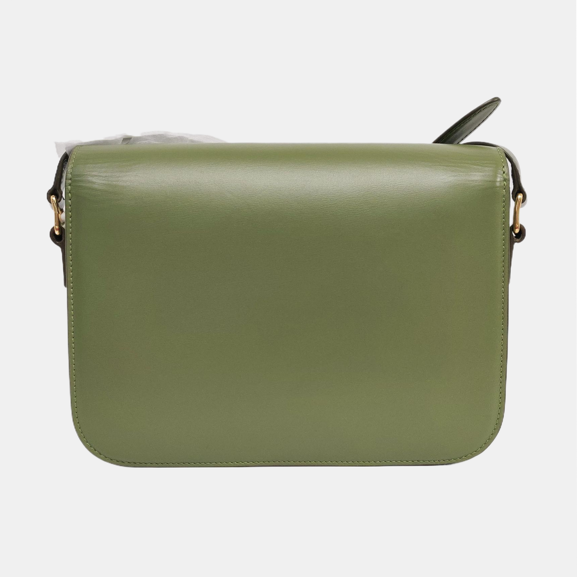 CELINE TRIOMPHE Medium Green Calfskin Shoulder Bag with Gold Hardware-(SKU)-959931687