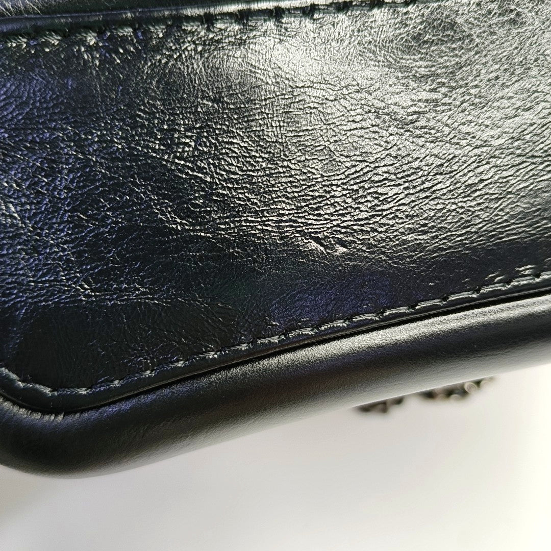 Detailed description: Slight stains on the interior,Zipper、Slight stains on the hardware,Front、Slight indentation on the bottom,Moderate scratches on the side panel,Moderate indentation on the back