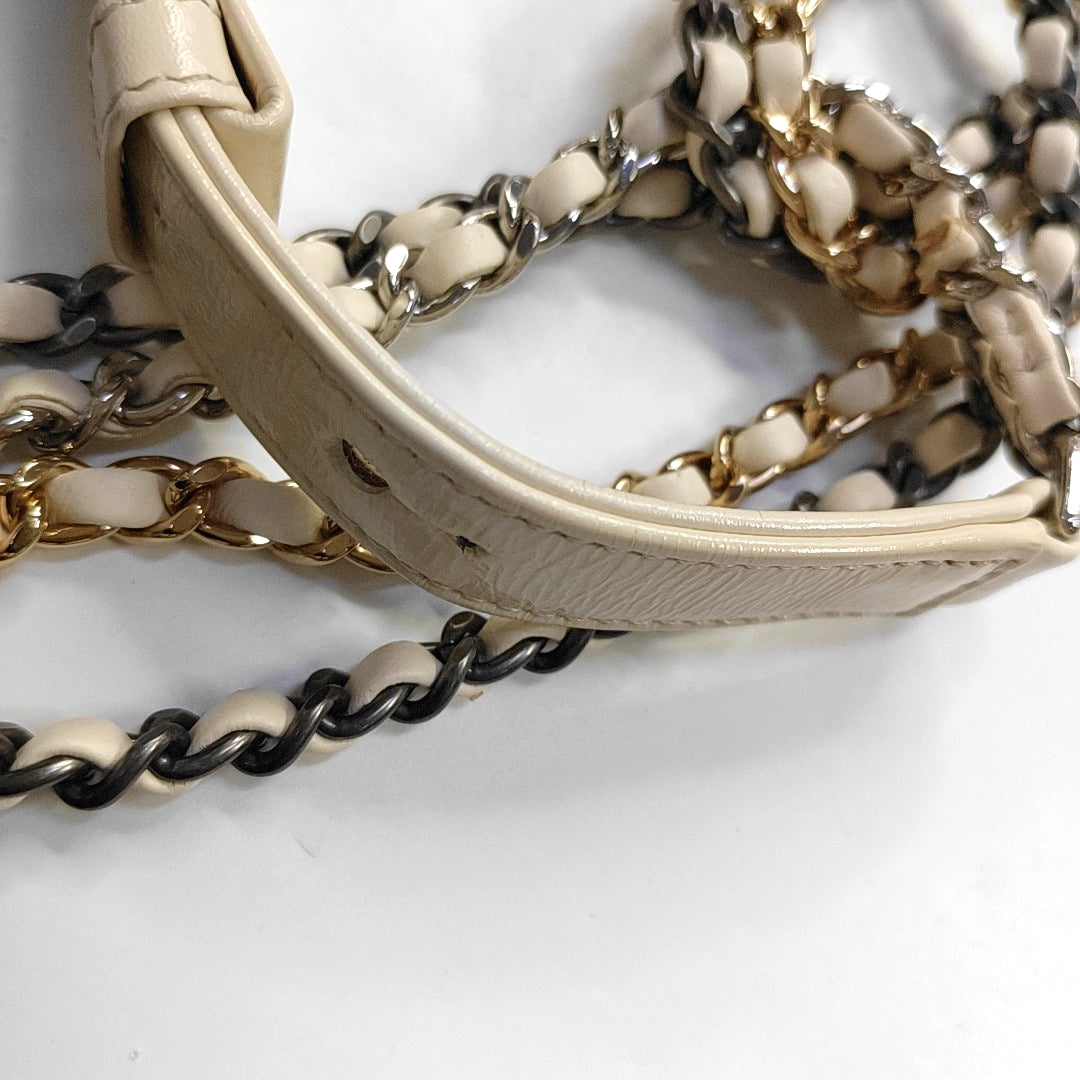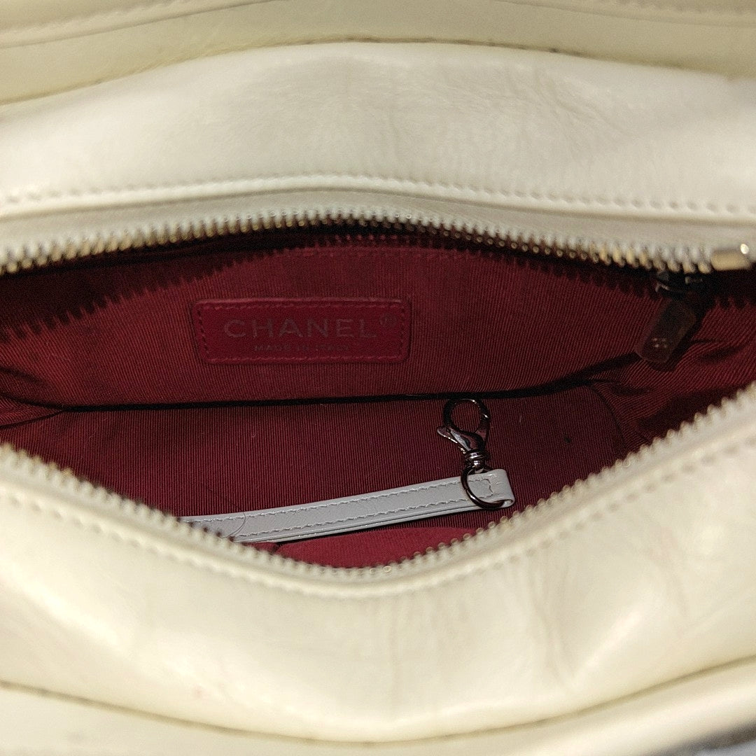 CHANEL GABRIELLE Small White Vintage Calfskin Quilted Chain Bag Crossbody Bag, Single Shoulder Bag, Gold and Silver Rhodium-Plated Hardware, 26 Clasp, Detachable Shoulder Strap-(SKU)-968499103