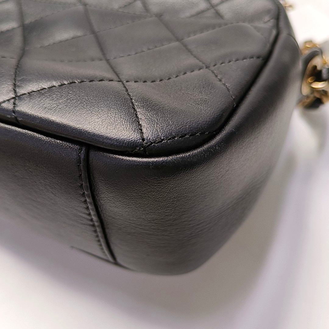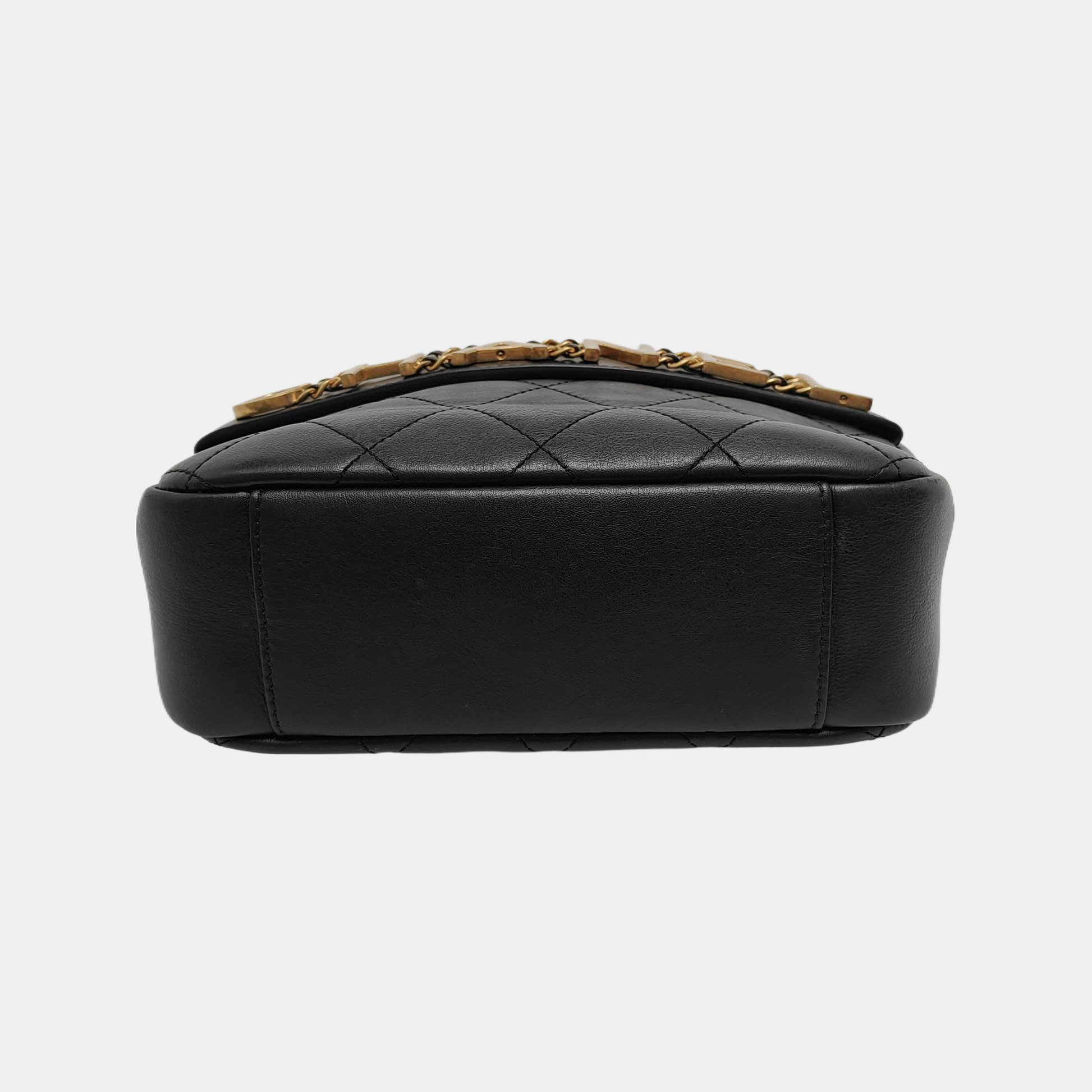 CHANEL LOGO ENCHAINED FLAP Black Leather Quilted Shoulder Bag Tote Bag Crossbody Golden Hardware 29cm Complete Accessories-(SKU)-947761460