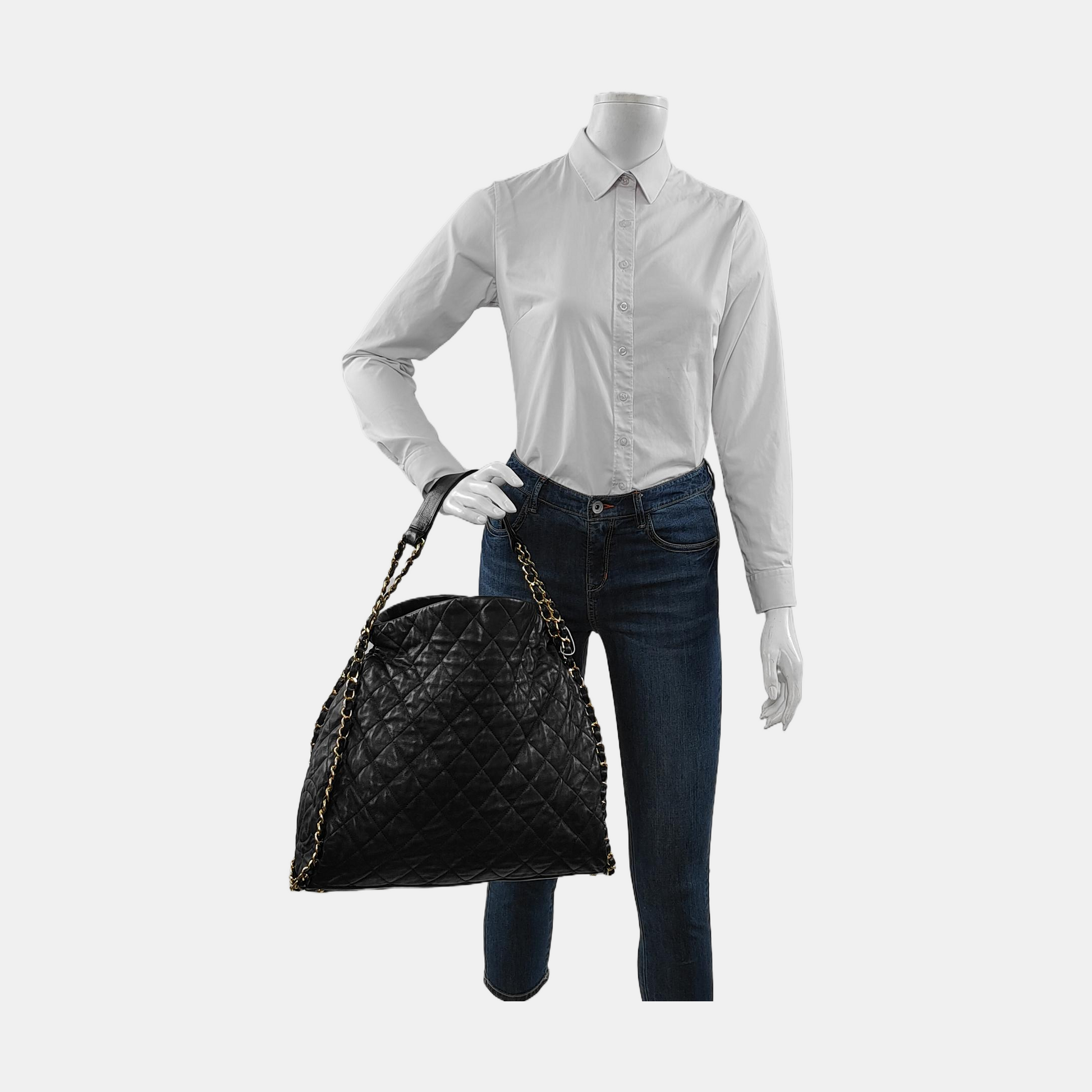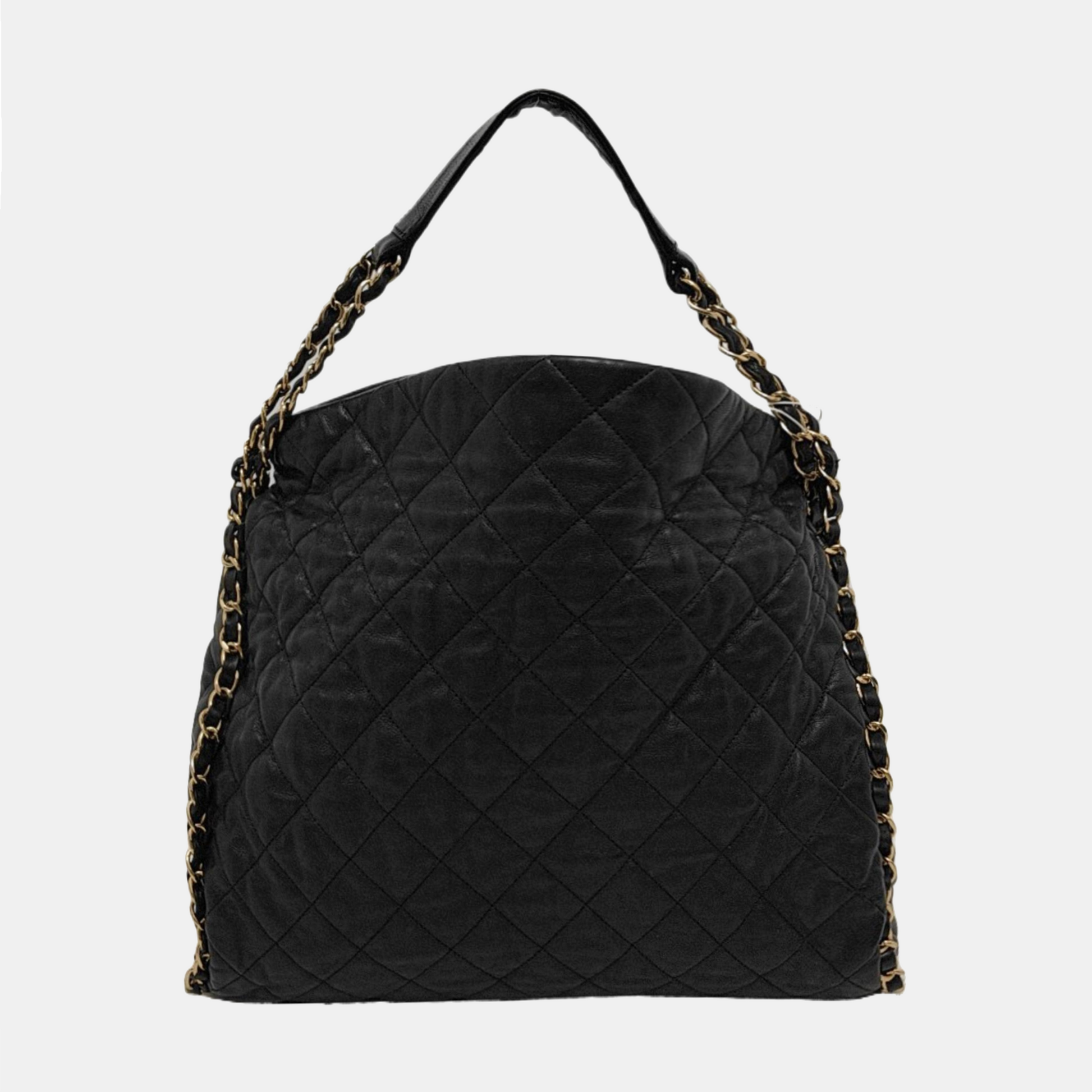 CHANEL CHAIN ME Black Pebbled Leather Quilted Crossbody Shoulder Bag with Gold Hardware, 14 openings-(SKU)-953577261