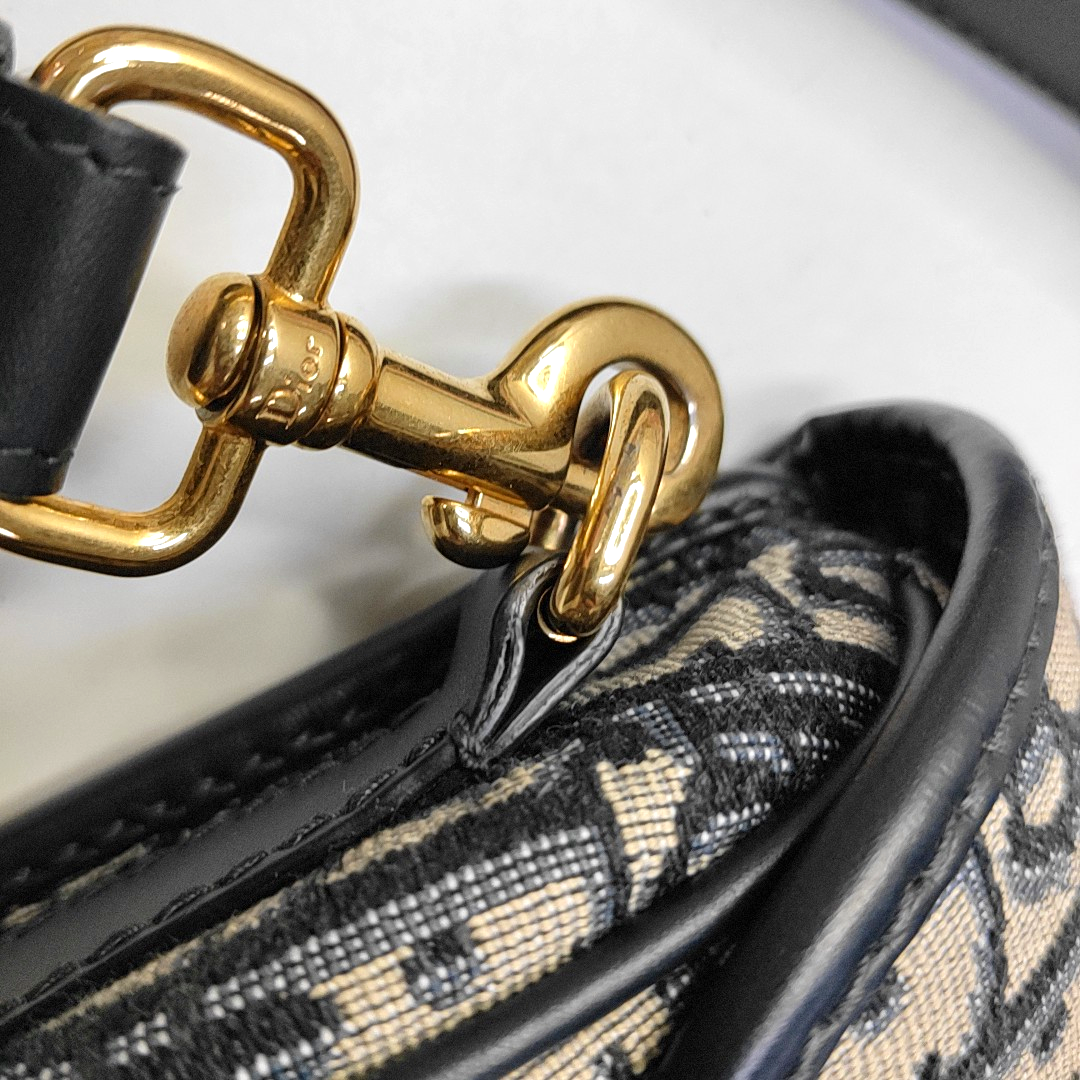 DIOR Bobby Small Blue Canvas Monogram Single Shoulder Bag Tote Bag Crossbody Bag with Gold Hardware Removable Strap-(SKU)-945284031