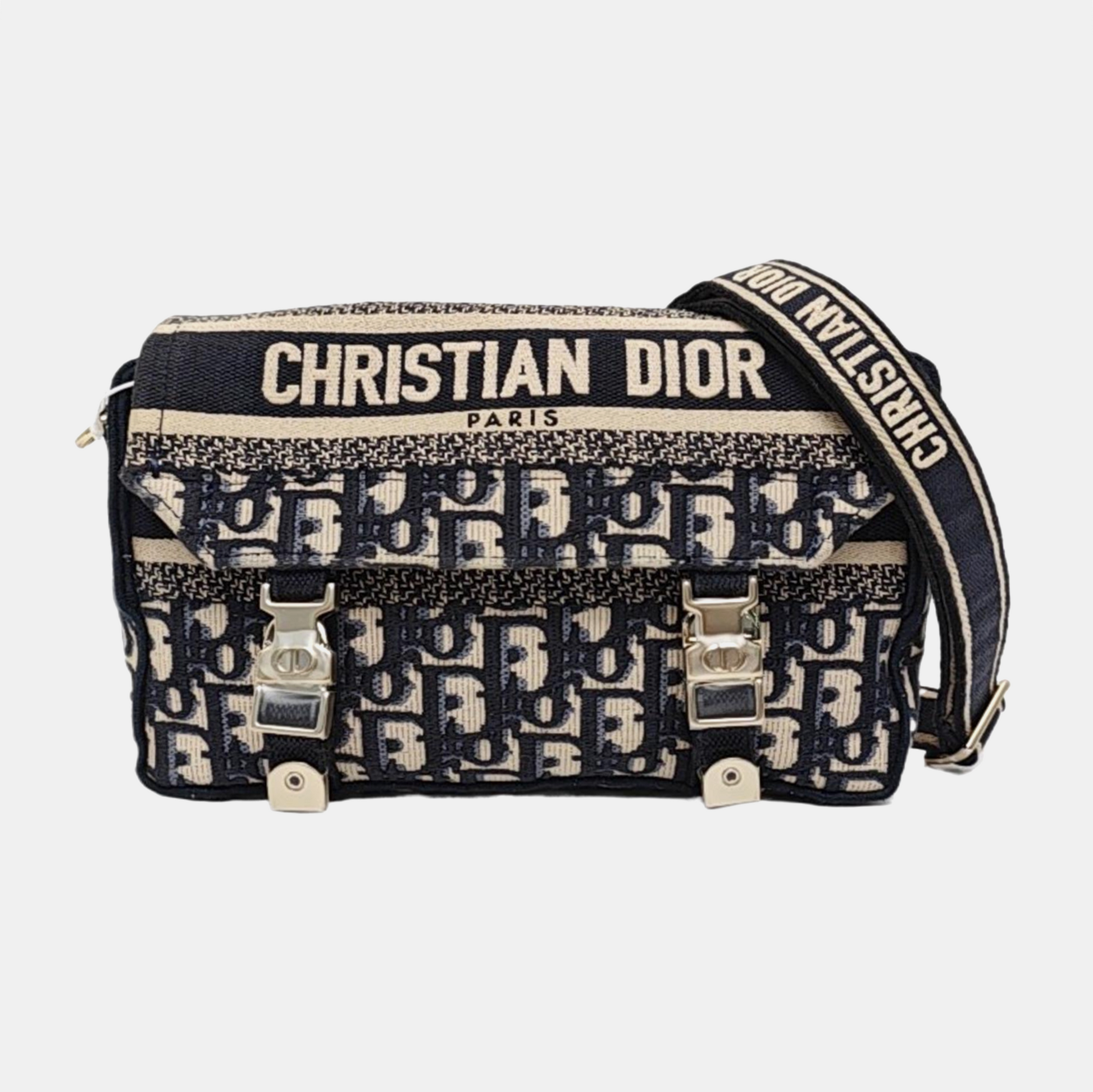 DIOR Diorcamp small size deep blue canvas with Monogram embossed pattern shoulder bag, crossbody bag, handbag with gold hardware and detachable strap-(SKU)-968753549