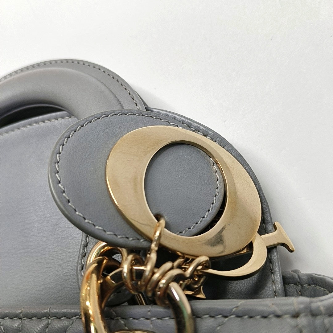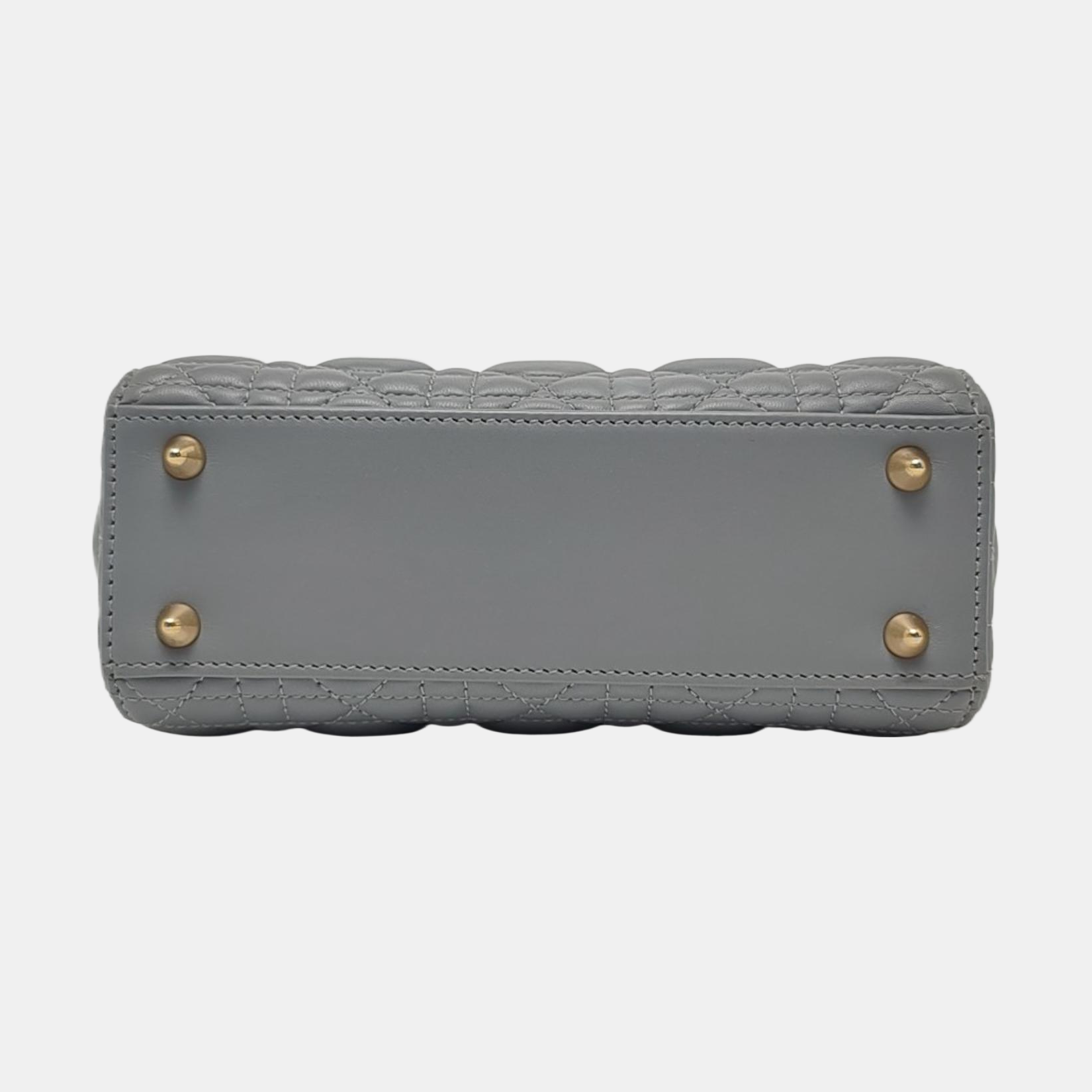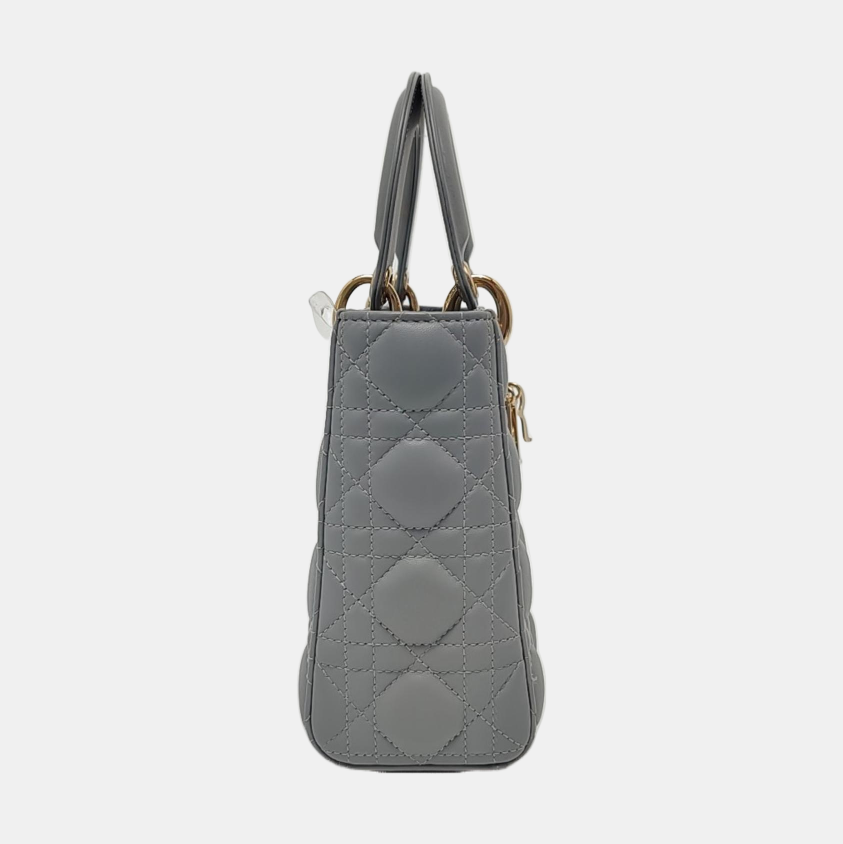 DIOR Lady Dior Small Grey Lamb Skin Quilted Cannage Diorever Shoulder Bag Tote Bag Crossbody Bag with Gold Hardware and Detachable Shoulder Strap, Complete Accessories-(SKU)-968155280