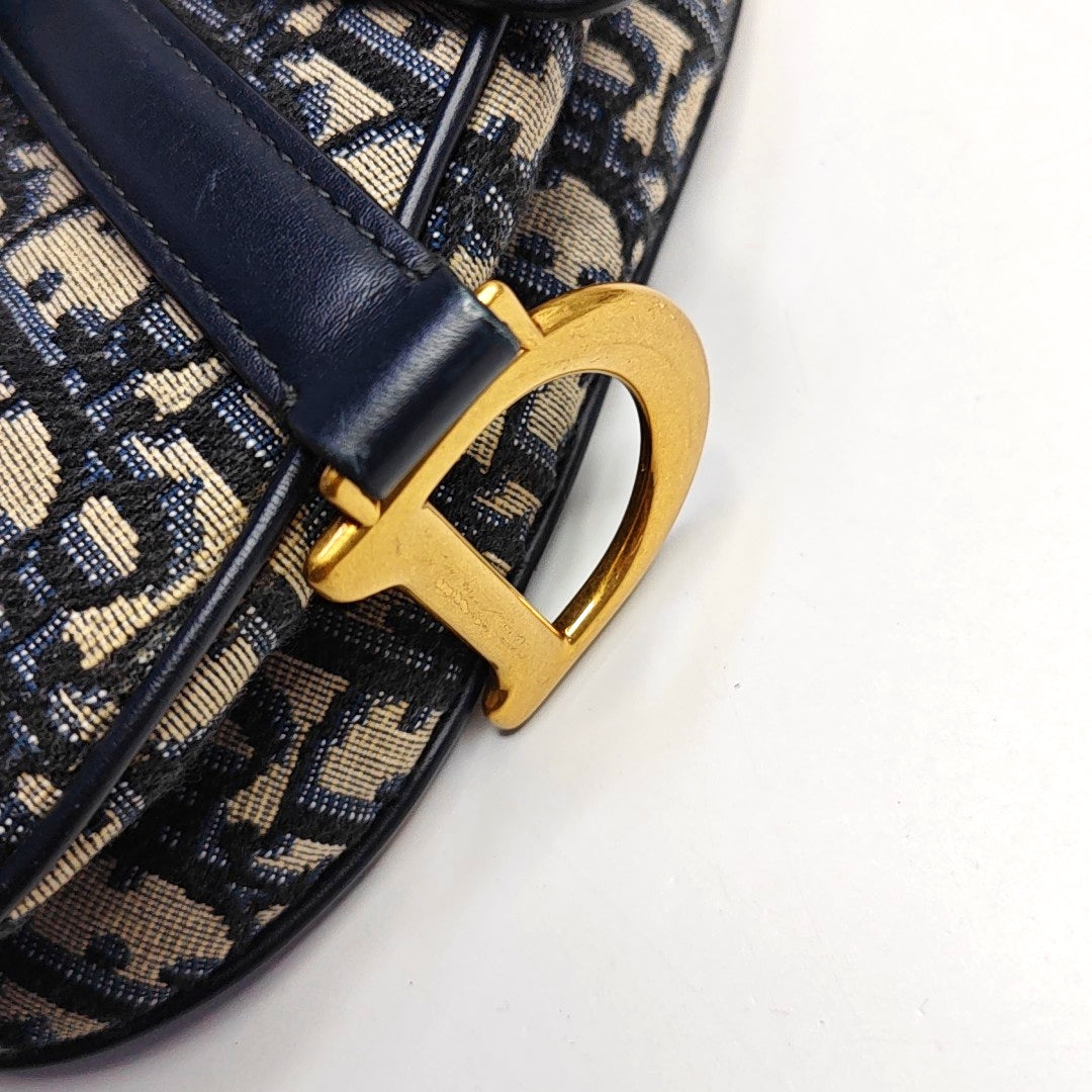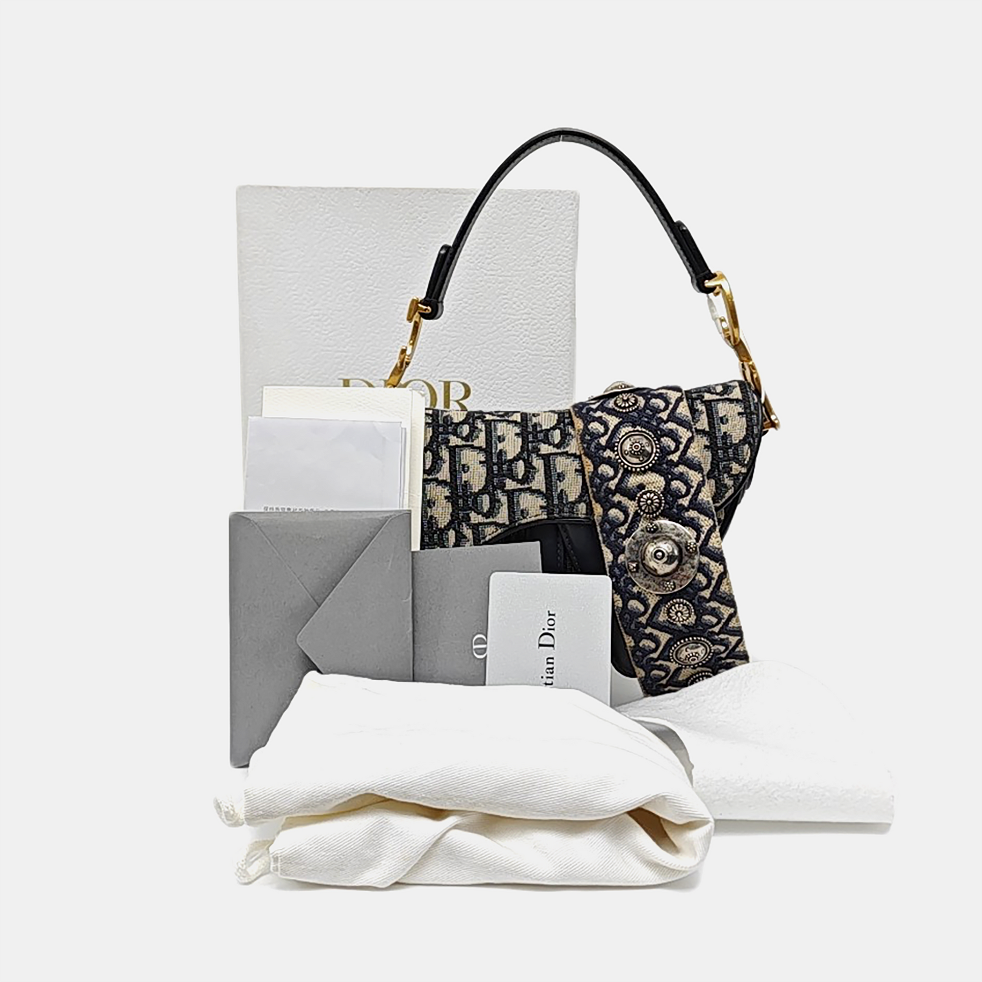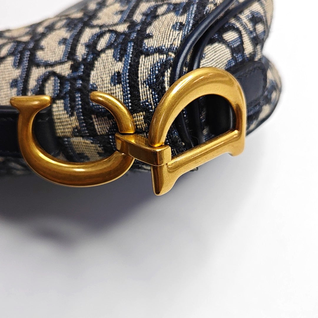 DIOR Saddle Mini Blue Canvas Monogram Saddle Bag Crossbody Shoulder Bag with Gold Hardware, Detachable Strap, Complete Accessories-(SKU)-967687563