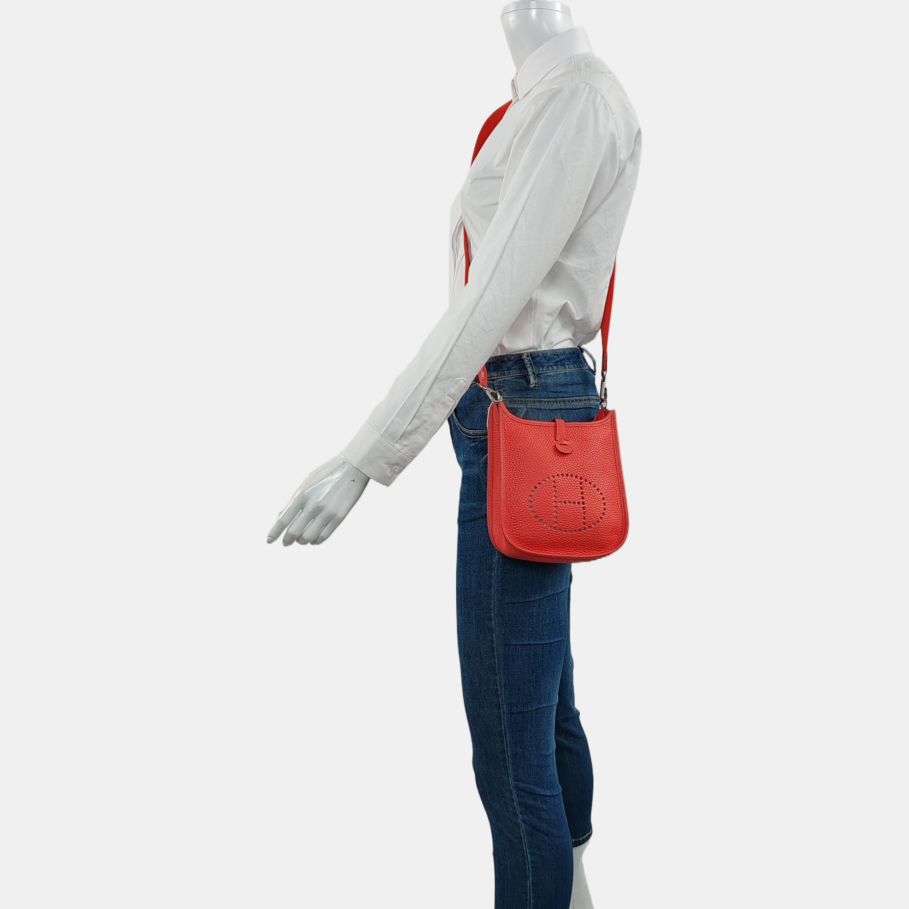 HERMÈS Evelyne TPM Vermilion Clemence Leather Cutout Evelyne Crossbody Shoulder Bag with Removable Strap Gold Hardware C-(SKU)-968761133