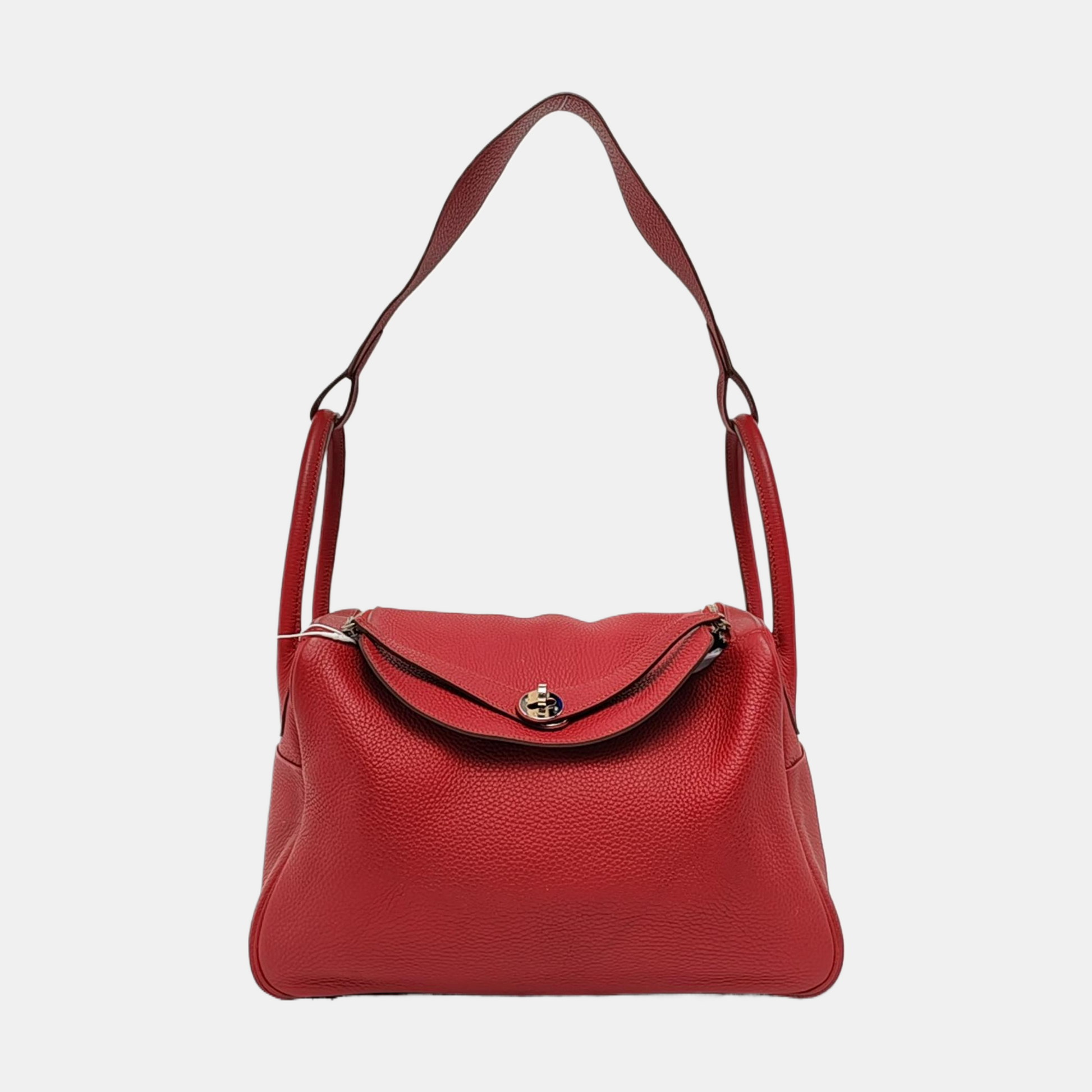 HERMÈS Lindy 34 Flag Red Clemence Leather Shoulder Bag Tote Bag Silver Hardware 🅀 Clasp-(SKU)-956096162