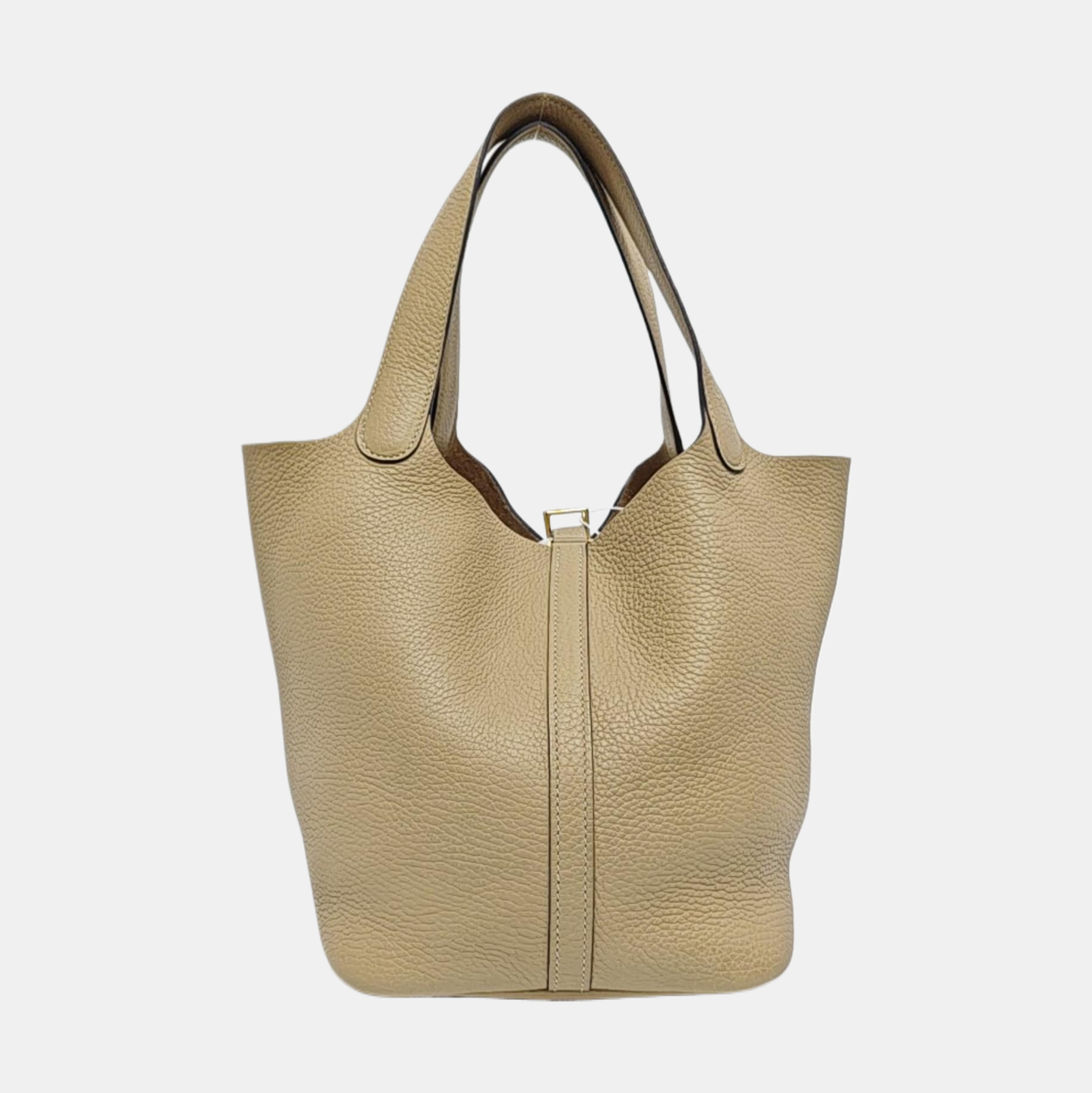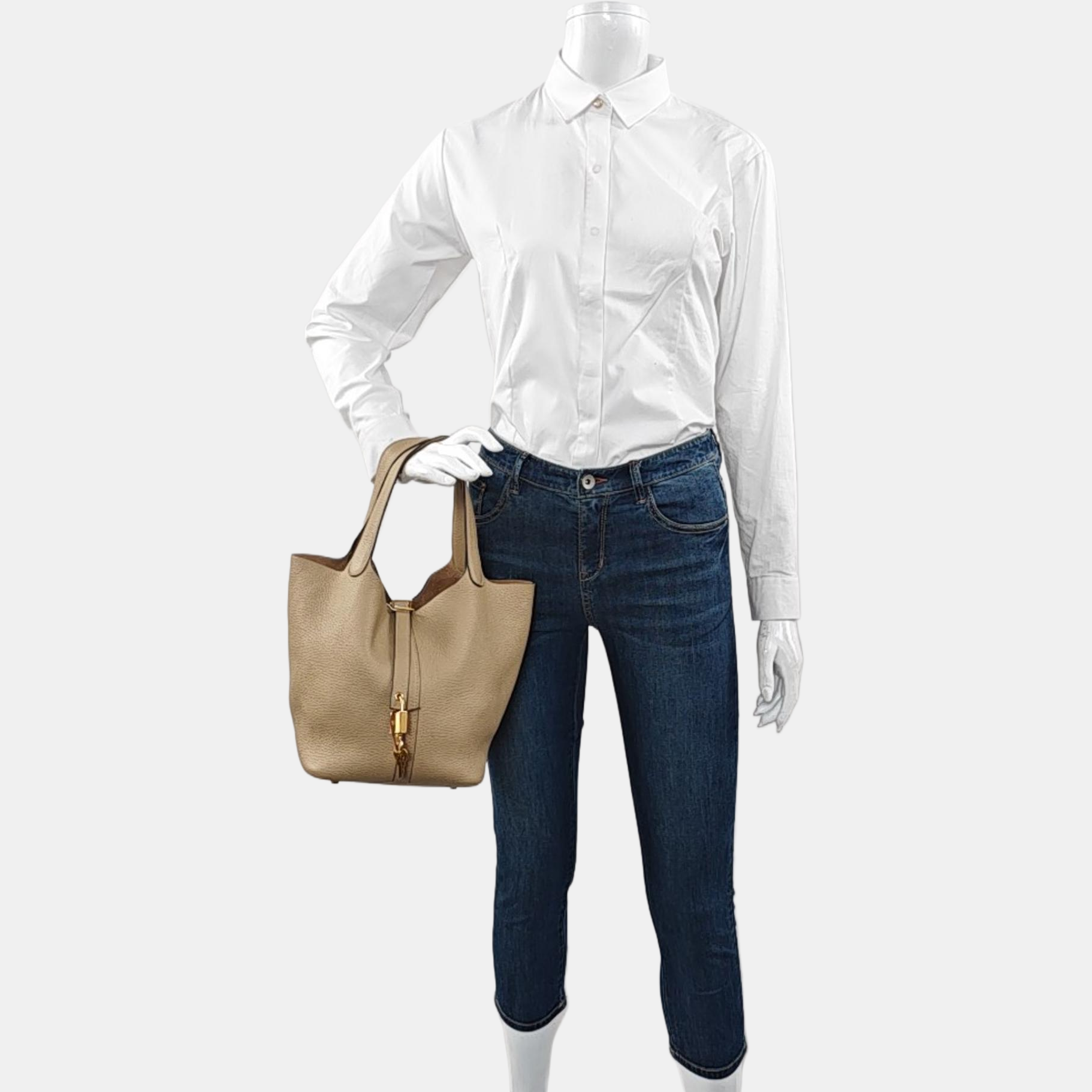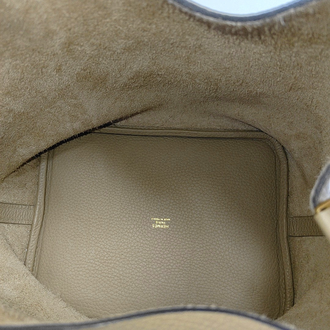 HERMÈS Picotin Lock 22 Trench Grey Clemence Leather Picotin Bag Handbag Shoulder Bag Golden Hardware Accessories Included-(SKU)-970762608