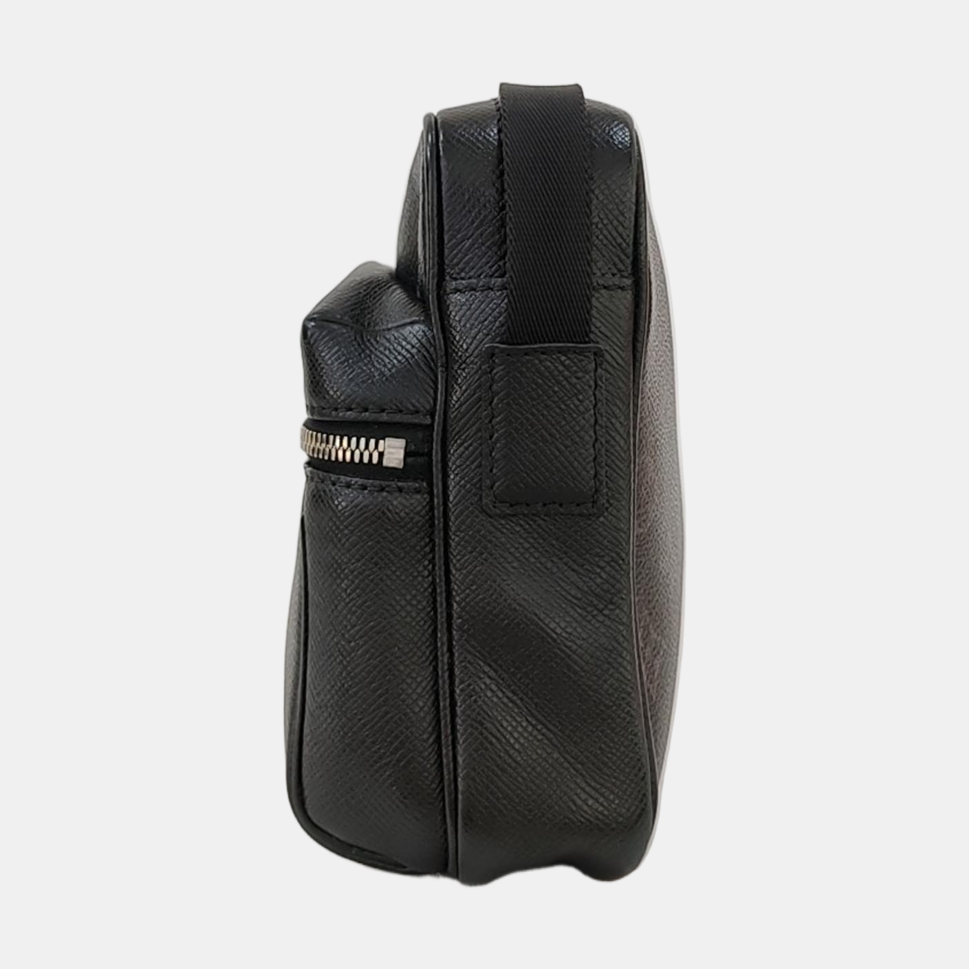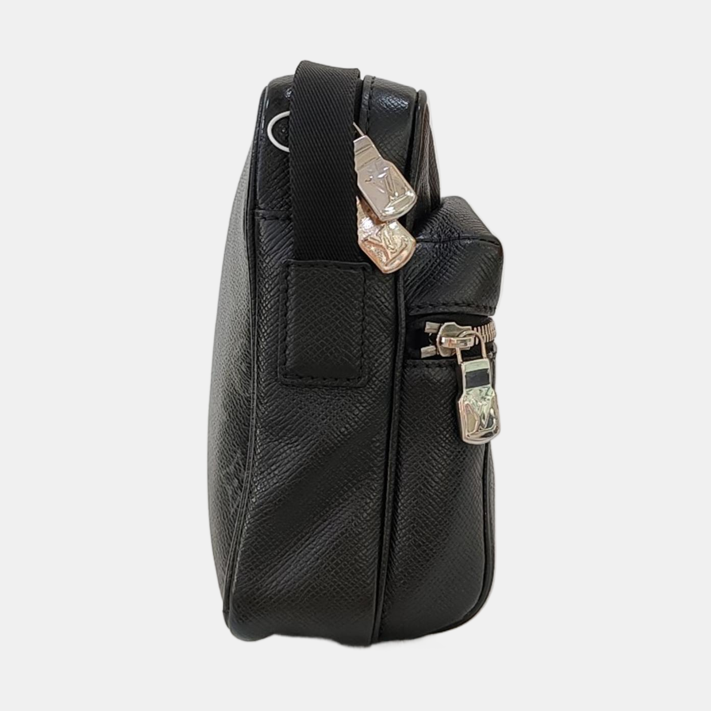 LOUIS VUITTON OUTDOOR Small Black Leather Monogram Messenger Bag Shoulder Bag Crossbody Bag Silver Hardware-(SKU)-970352142