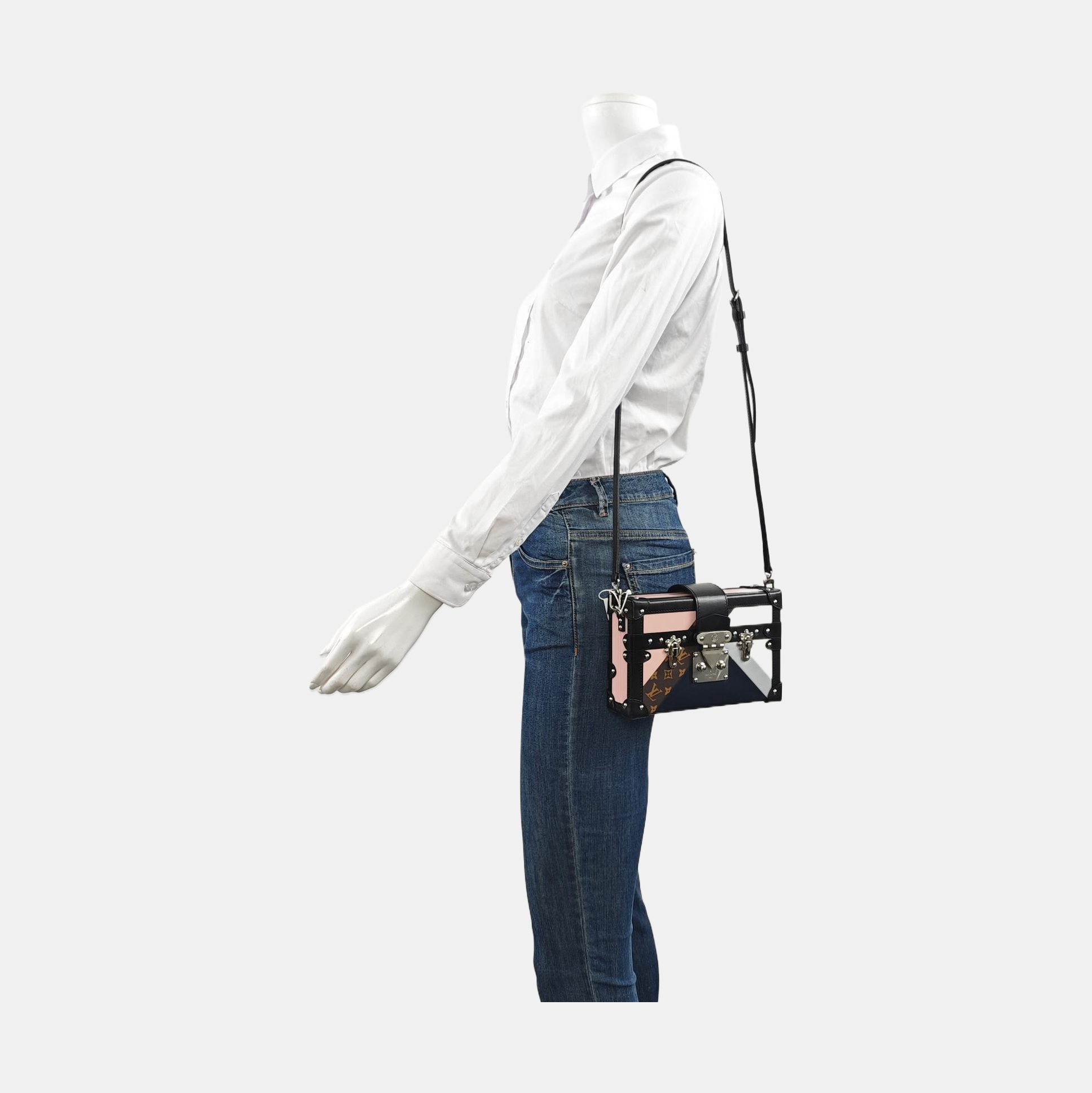 LOUIS VUITTON PETITE MALLE Multicolor Leather Monogram Crossbody Bag Single Shoulder Bag with Silver Hardware Removable Strap-(SKU)-952551209