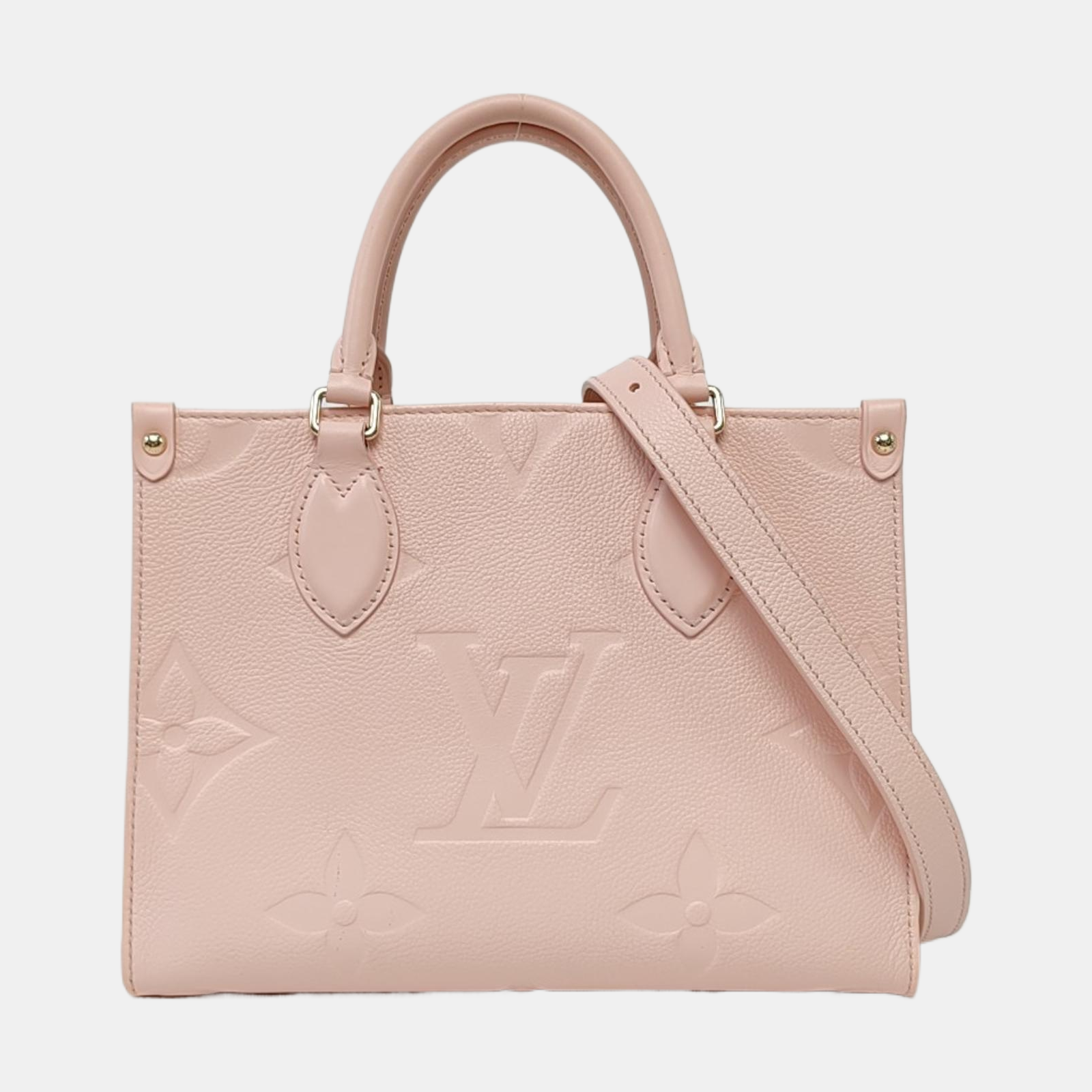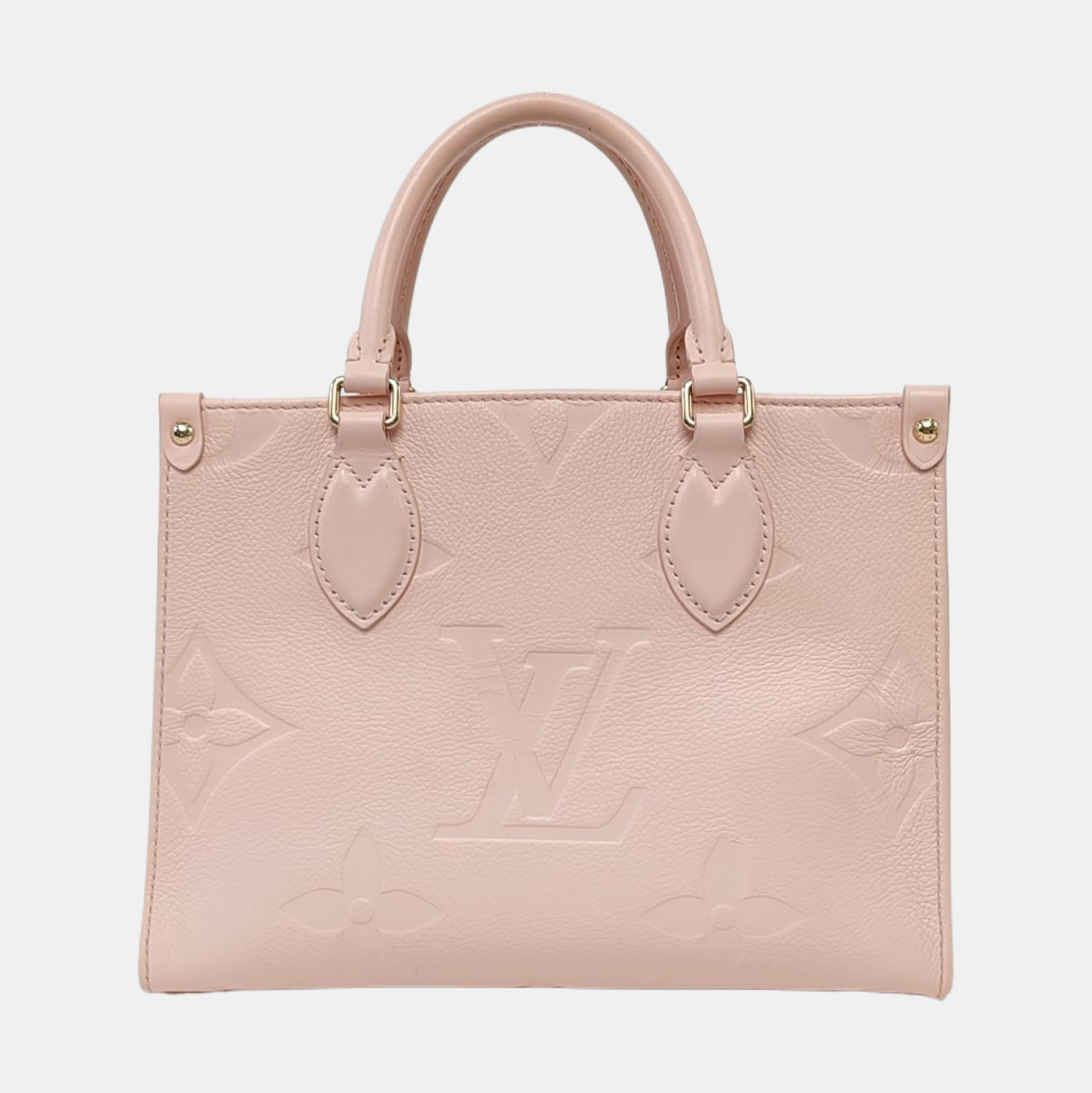 LOUIS VUITTON ONTHEGO Small Light Pink Calfskin Monogram Embossed Jungle Bag Single Shoulder Bag Handbag Detachable Strap-(SKU)-966381048