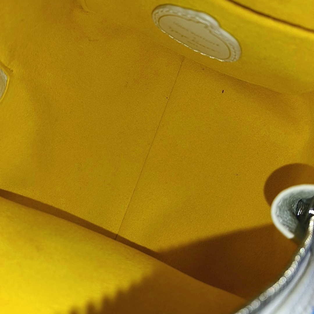 Detailed description: Interior、Edge wrapping around the opening、Four corners、Slight stains on the handheld,Zipper、Hardware buckle with moderate scratches、Slight stains on the hardware,Moderate cracking on the handheld
