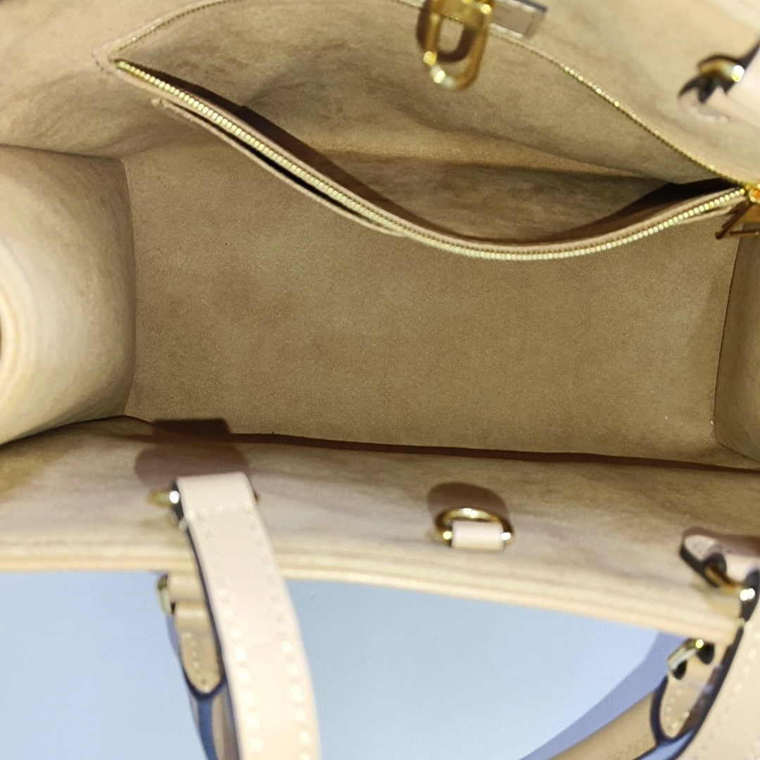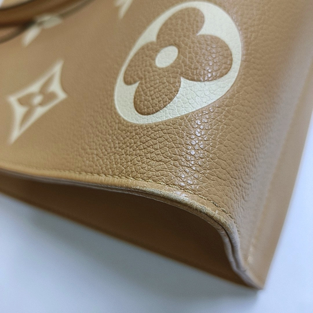 LOUIS VUITTON ONTHEGO Medium Yellow Leather Monogram Embossed Jungle Bag Single Shoulder Bag Golden Hardware-(SKU)-967363562