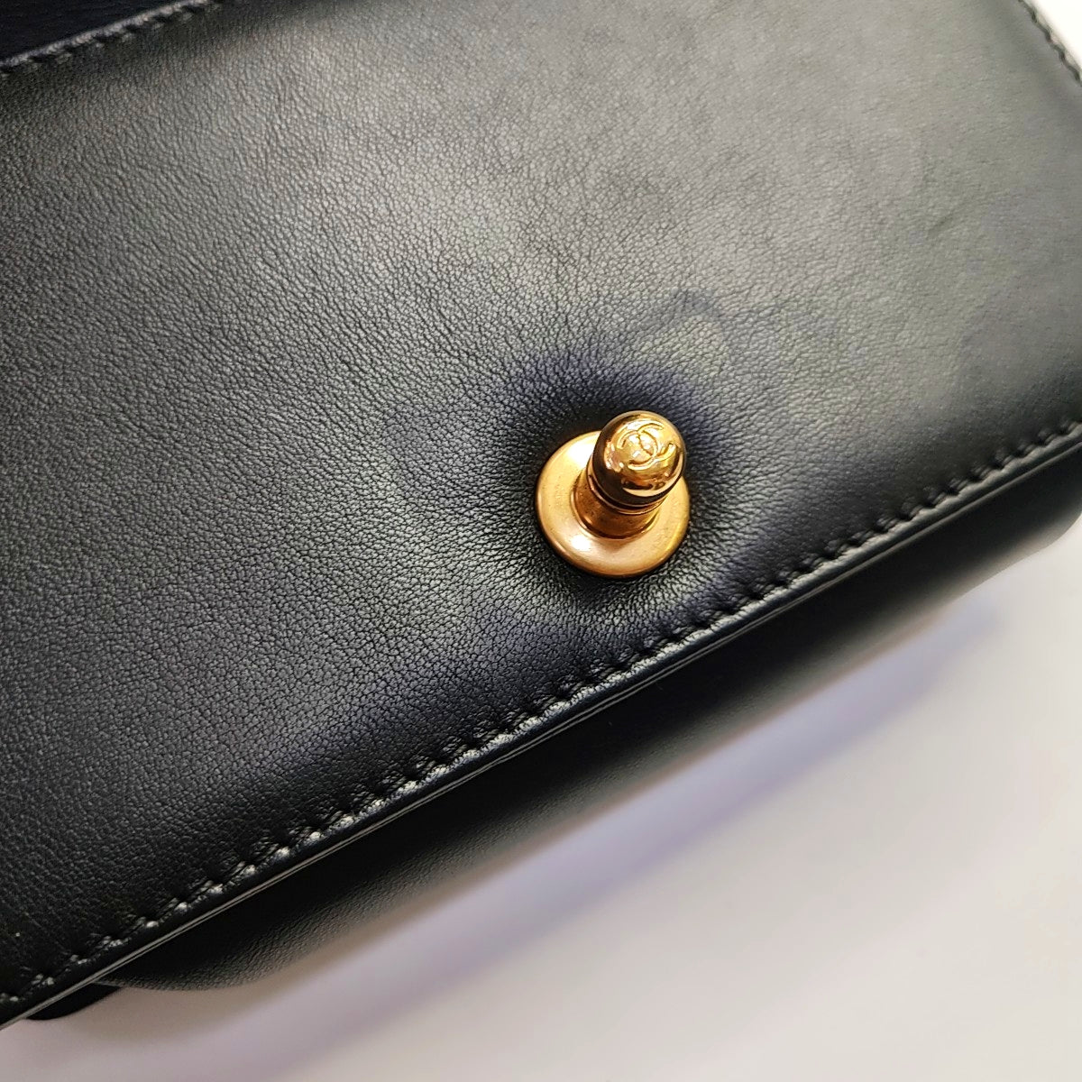CHANEL BOY CHANEL Small Size Black Calfskin Quilted Diagonal Bag, Shoulder Bag with Detachable Strap, Golden Hardware, 23 Clasps-(SKU)-968888803