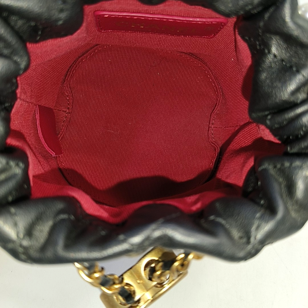 CHANEL DRAWSTRING Mini Black Calfskin Quilted Crossbody Shoulder Bag with Gold Hardware, 31 openings-(SKU)-953109942
