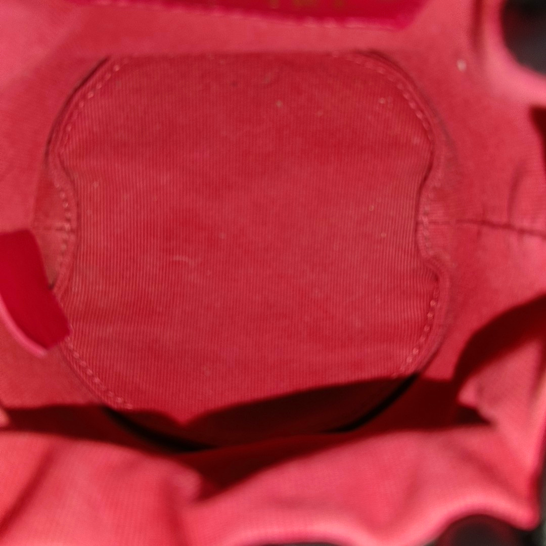 Detailed description: Slight stains on the interior,Strap、Edge wrapping around the opening、Hardware buckle with moderate scratches、Slight wear on the bottom side,Front、Slight creases on the back side