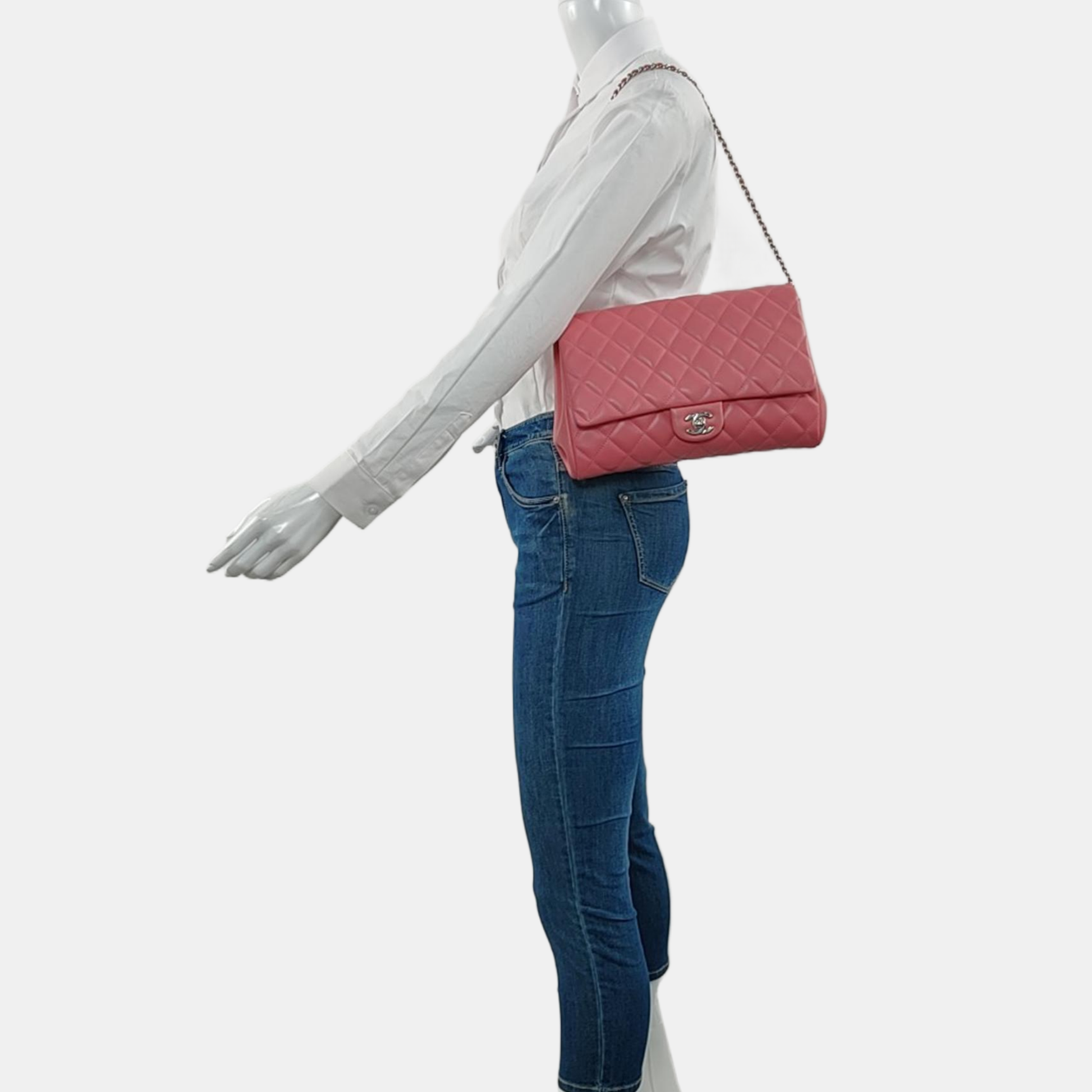 CHANEL CLASSIC FLAP Pink Lamb Leather Quilted Chevron Shoulder Bag Silver Hardware 18 Openings Complete Accessories-(SKU)-969451991