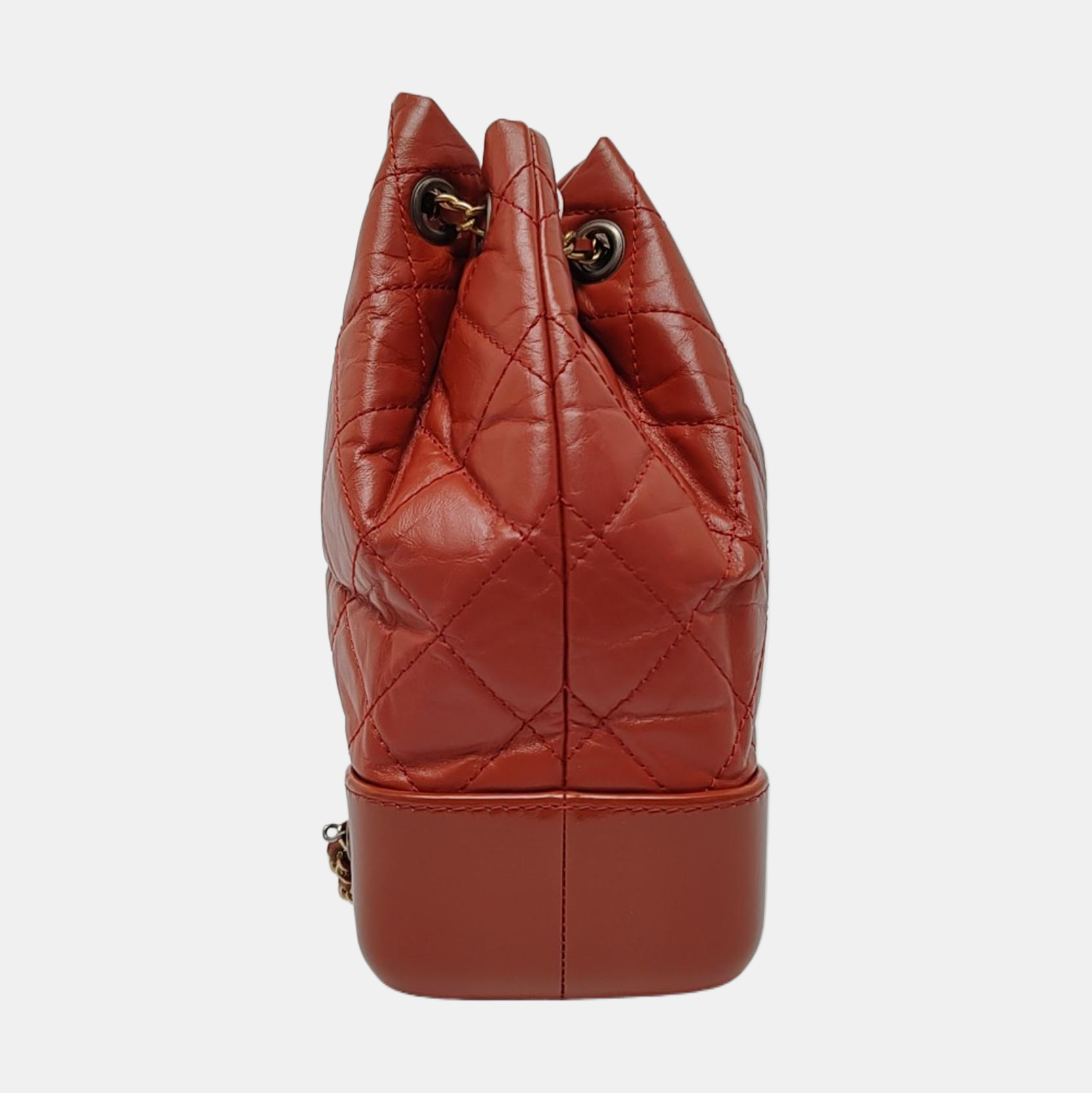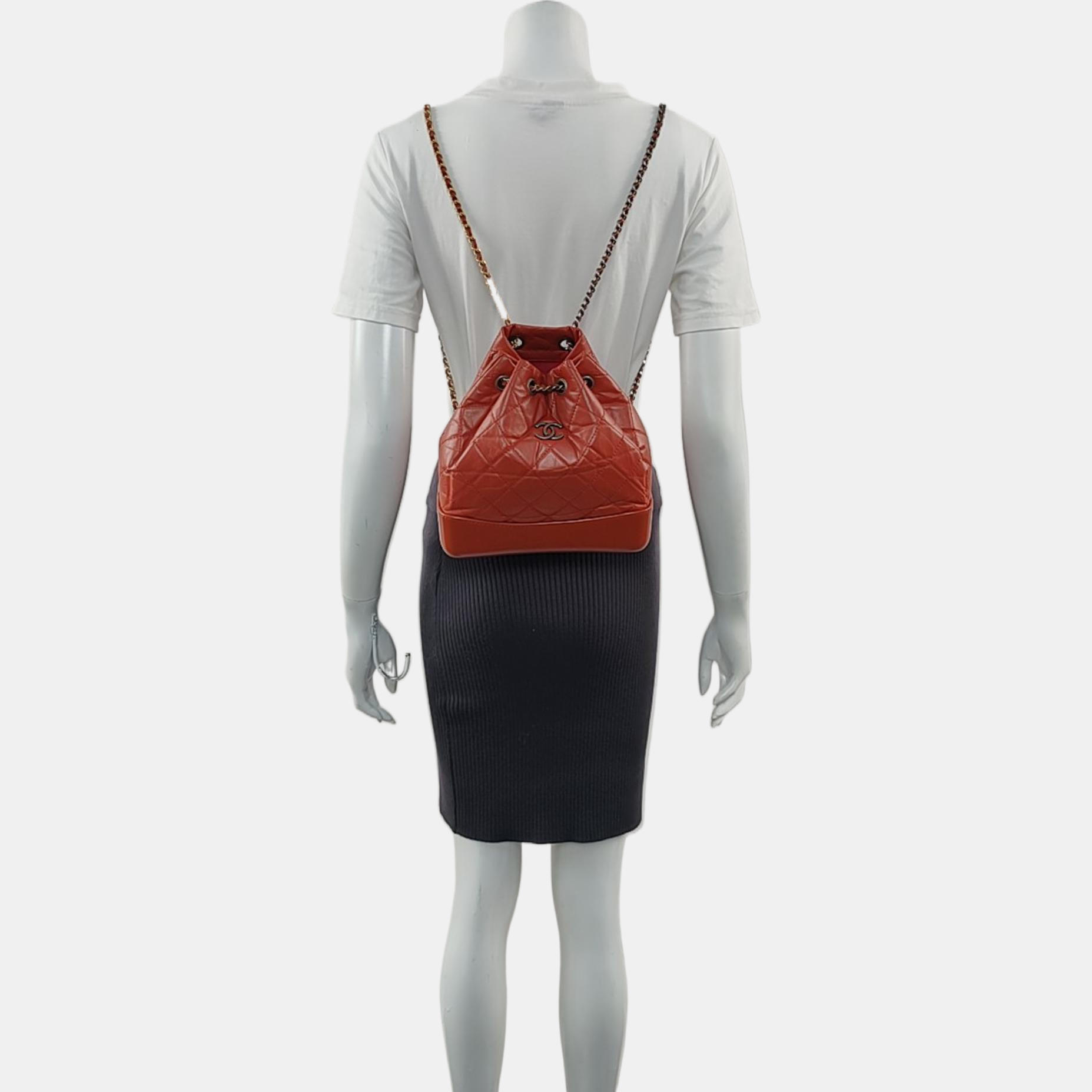 CHANEL GABRIELLE Small Brick Red Leather Quilted Chain Backpack with Detachable Strap, Gold Silver Rhodium Hardware, 26 Flaps-(SKU)-967622926