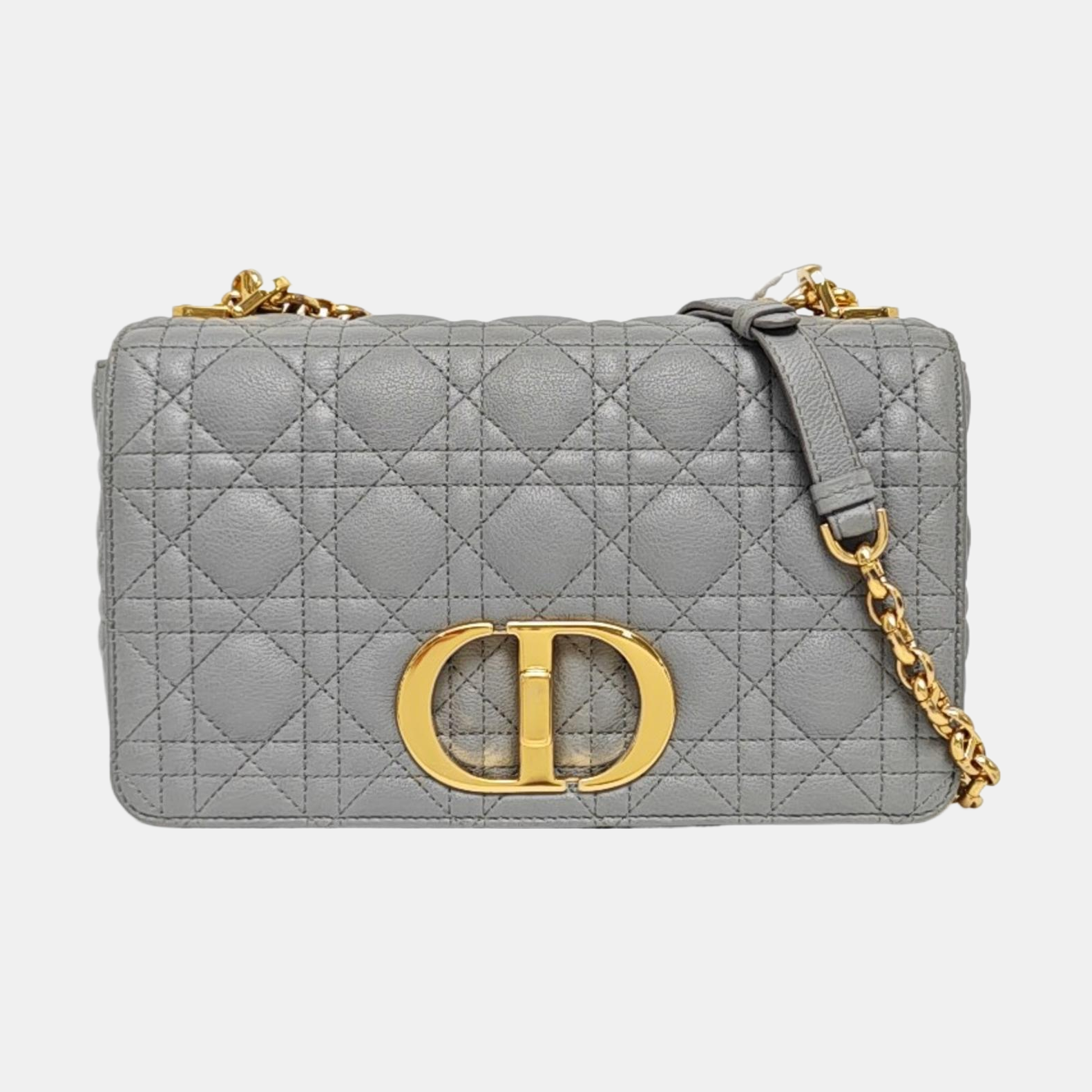 DIOR Dior Caro Medium Gray Calfskin Quilted Crossbody Bag Single Shoulder Bag Gold Hardware Removable Strap-(SKU)-969611212