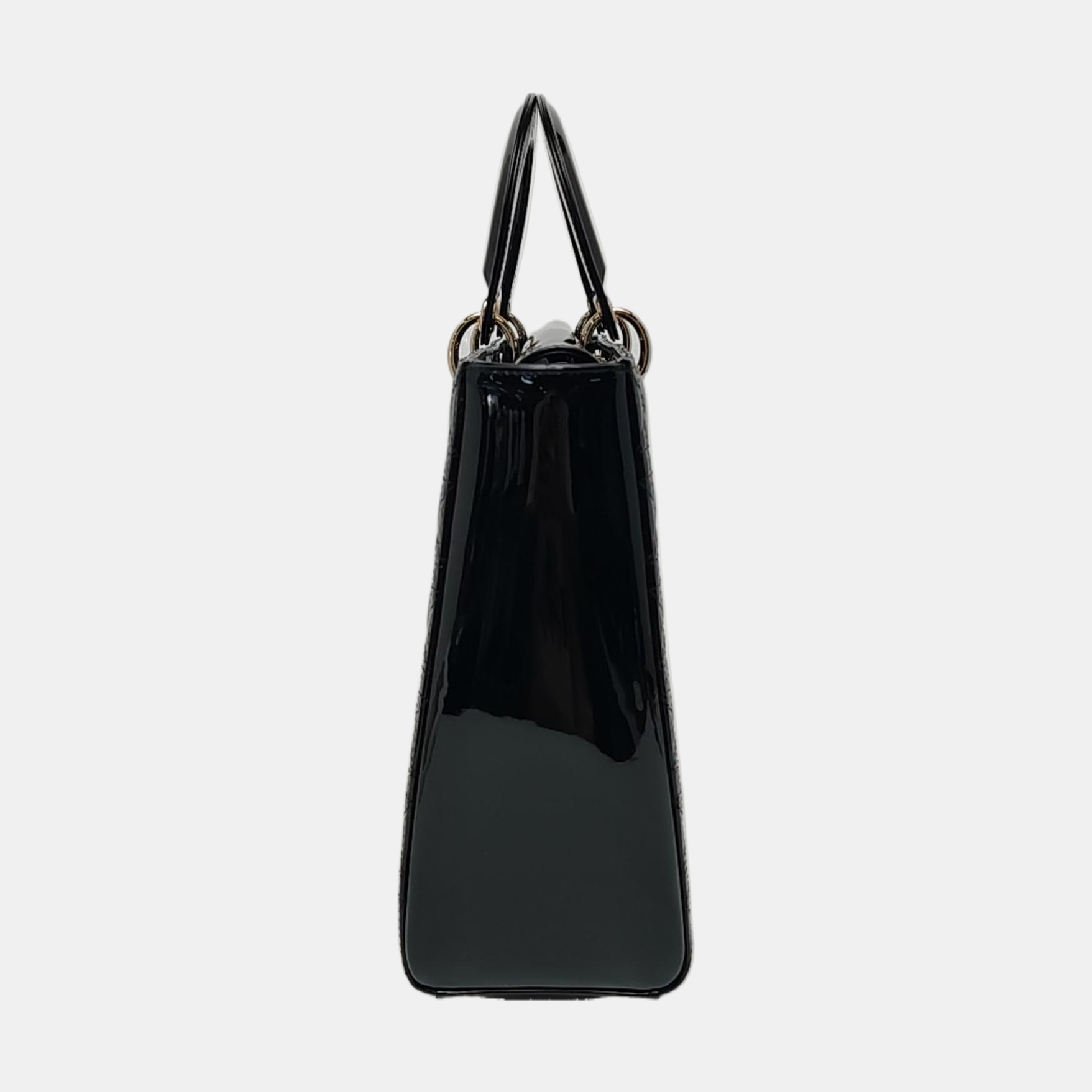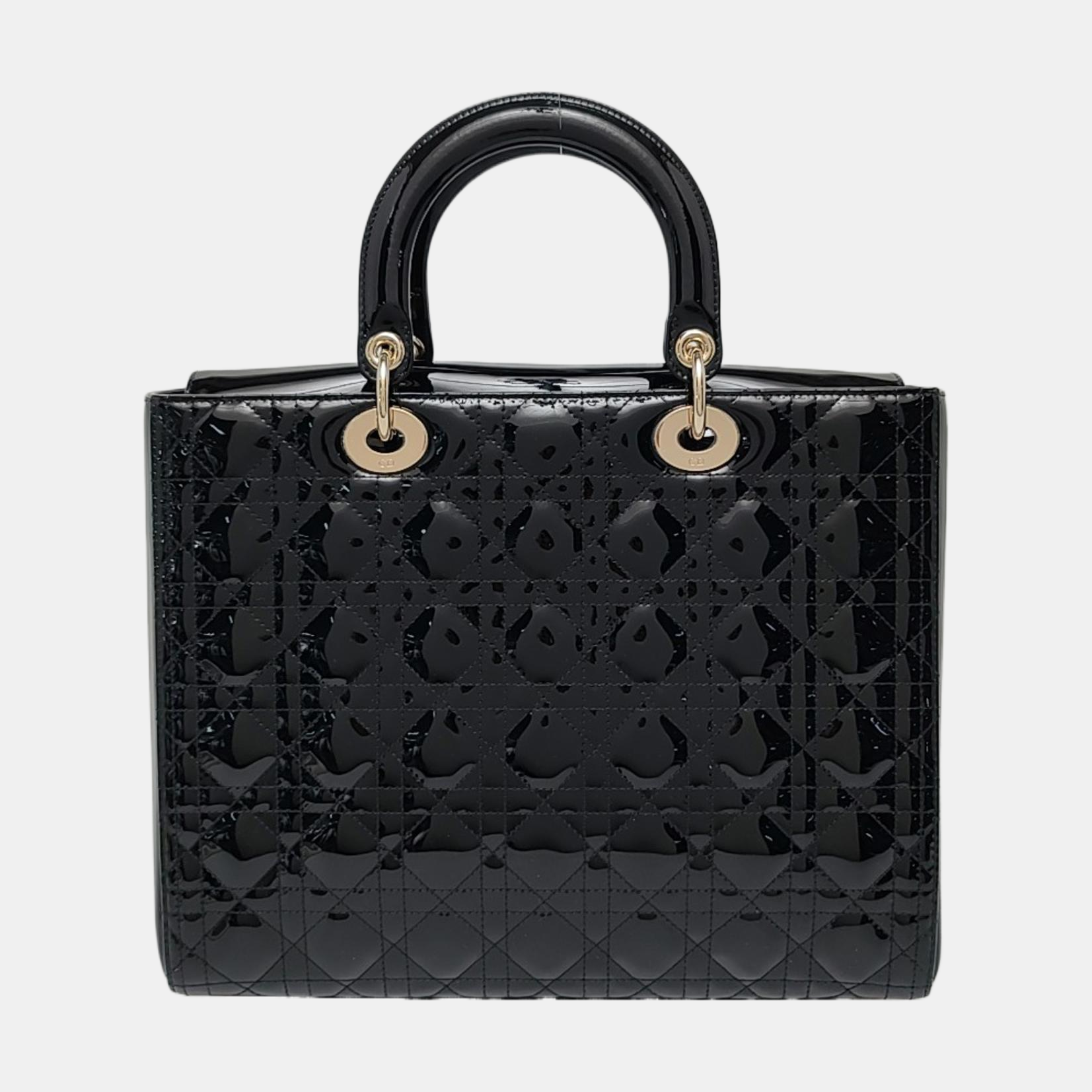 DIOR Lady Dior Large Black Patent Leather Quilted Cannage Diagonal Shoulder Bag with Detachable Strap-(SKU)-968905139