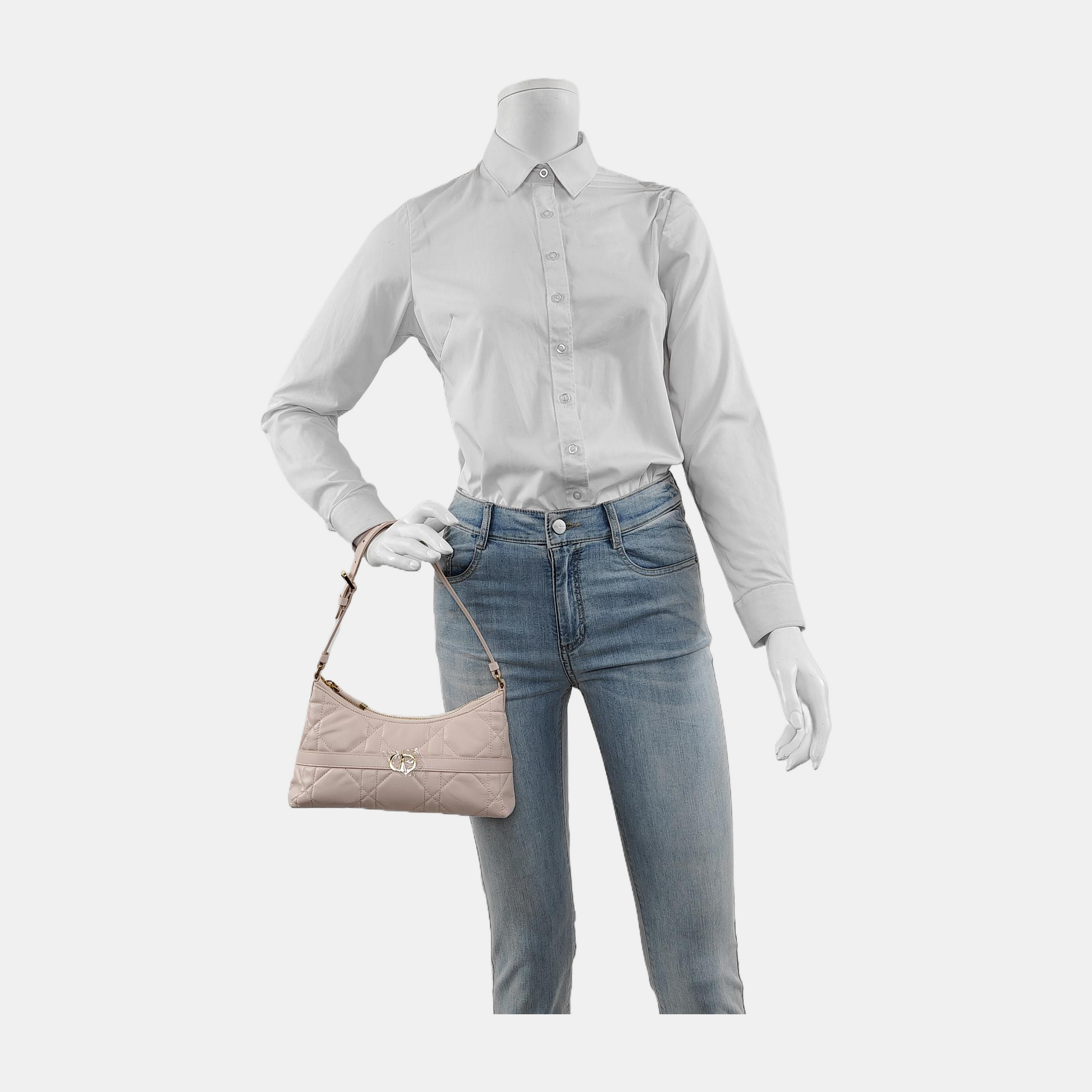 DIOR Miss Dior mini pink leather quilted diamond pattern crossbody bag gold hardware complete accessories-(SKU)-940345090