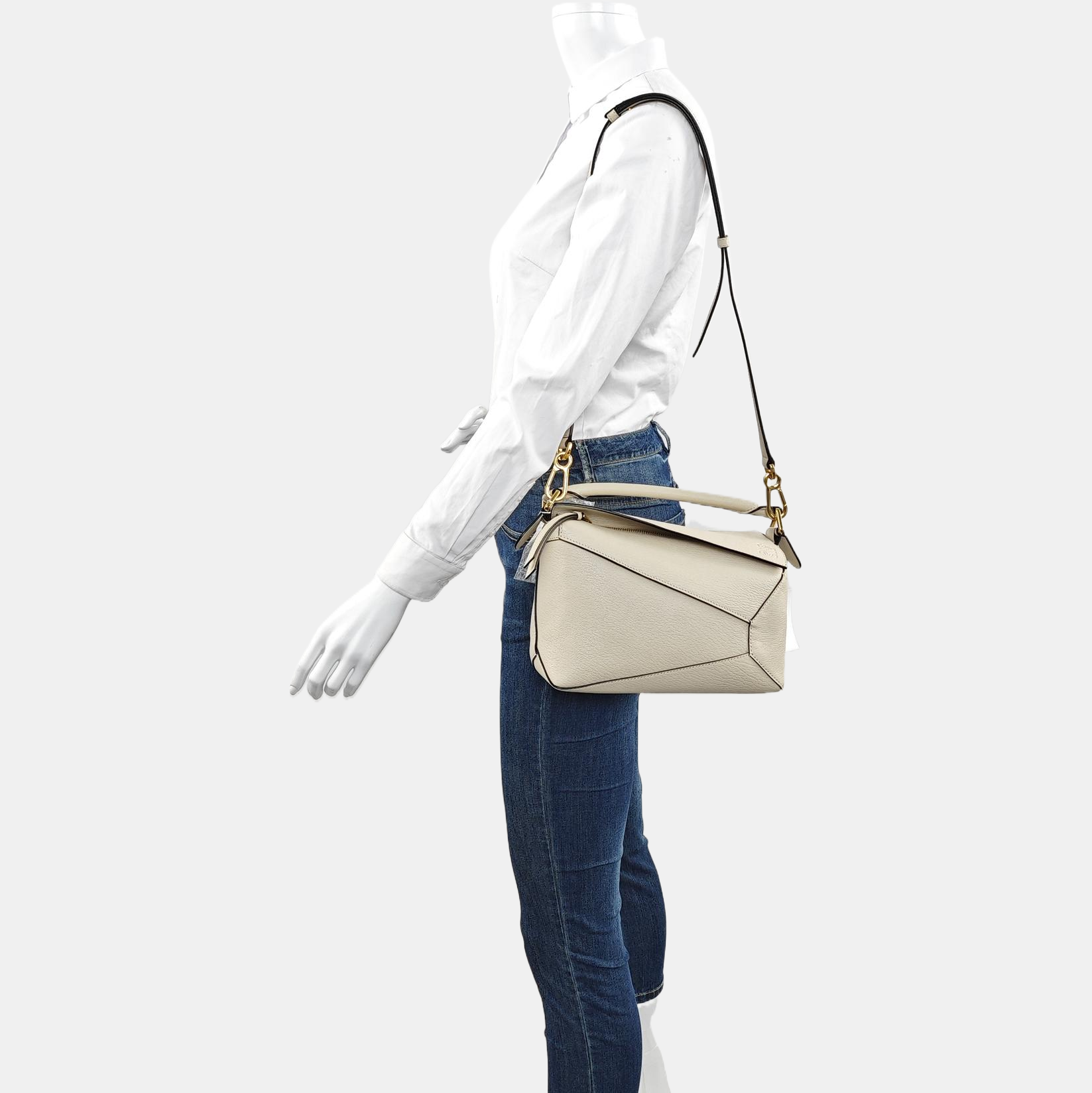 LOEWE Puzzle Small White Lamb Skin Geometric Shoulder Bag Crossbody Tote with Removable Strap-(SKU)-966123695